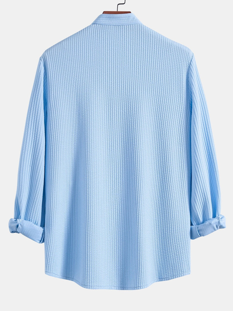 Long Sleeve Muscle Fit Ribbed Stand Collar Shirt & Straight Leg Ribbed Pants
