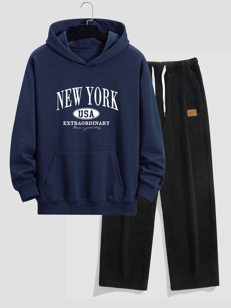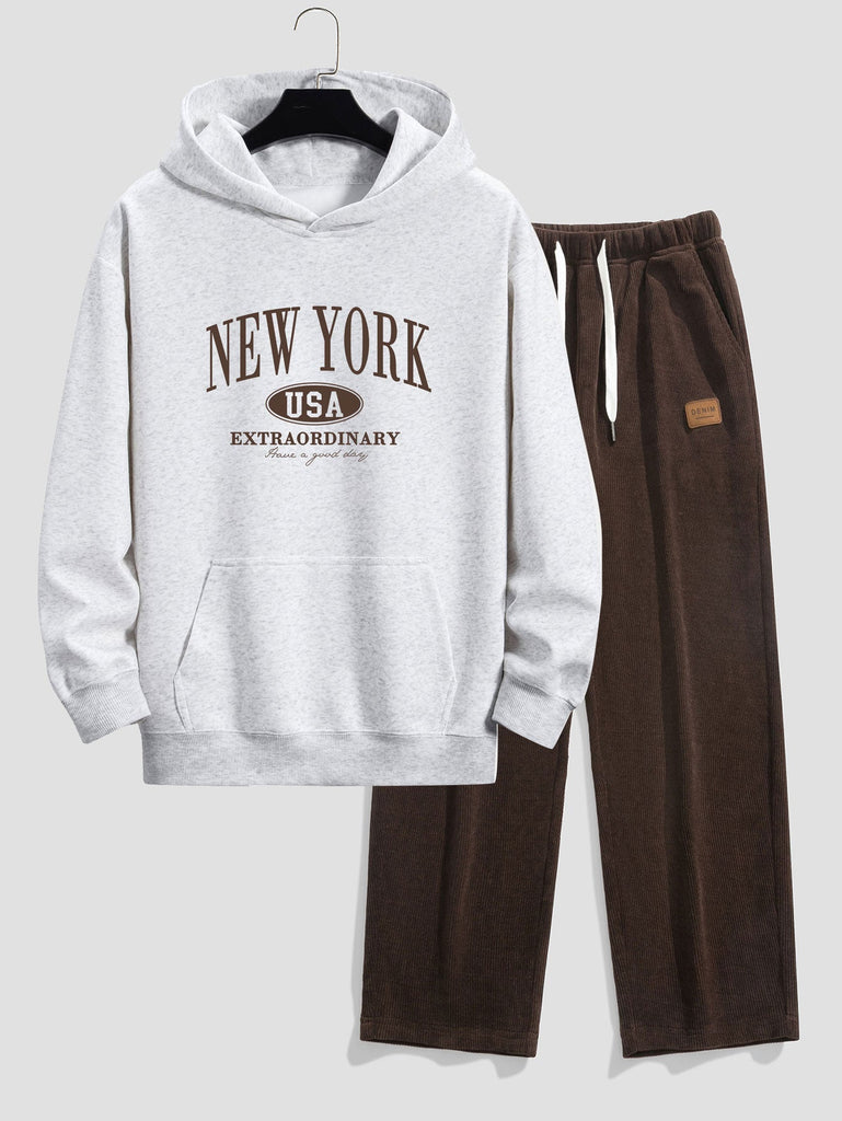 New York Print Relax Fit Hoodie & Straight Leg Corduroy Pants