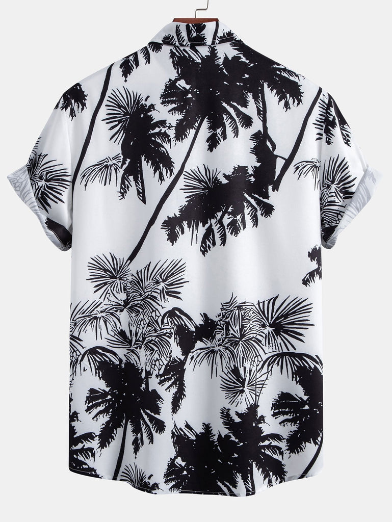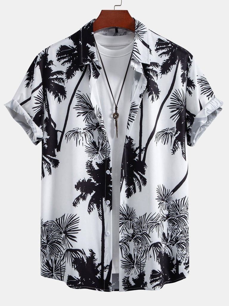 Palm Trees Print Button Up Shirt & Striped Print Swim Shorts