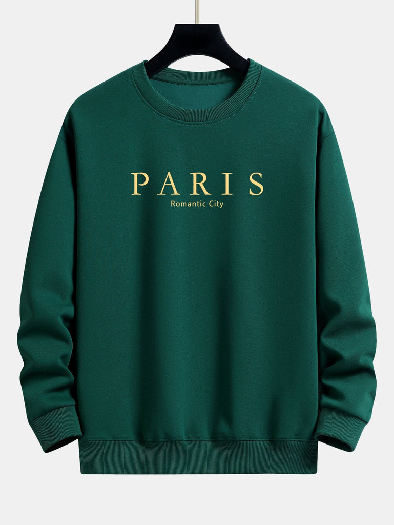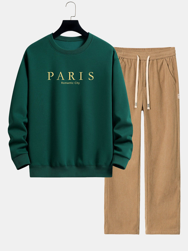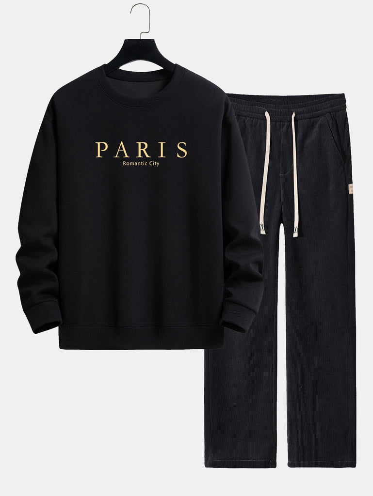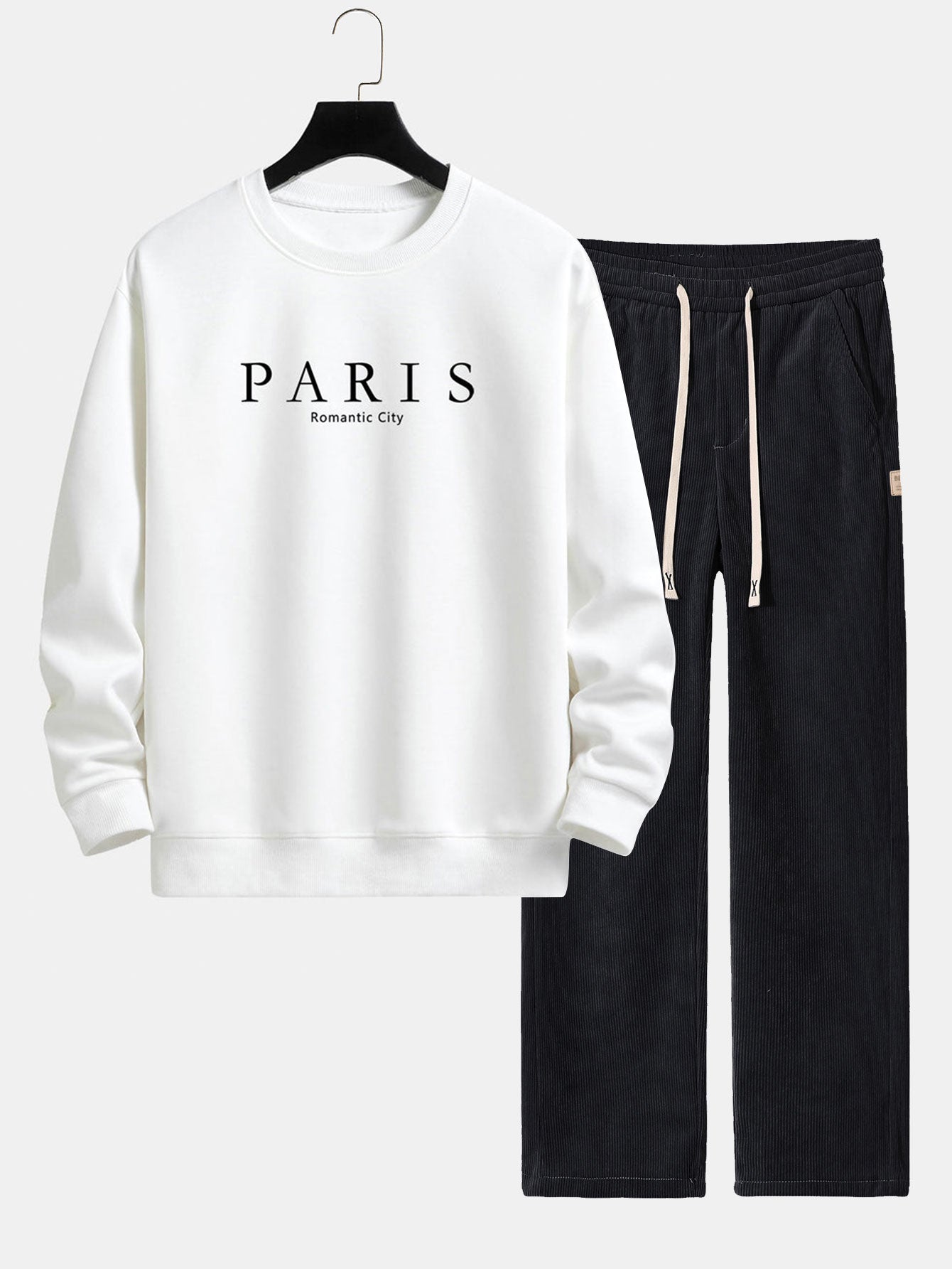 Paris Slogan Print Relax Fit Sweatshirt & Straight Leg Corduroy Pants