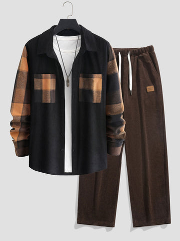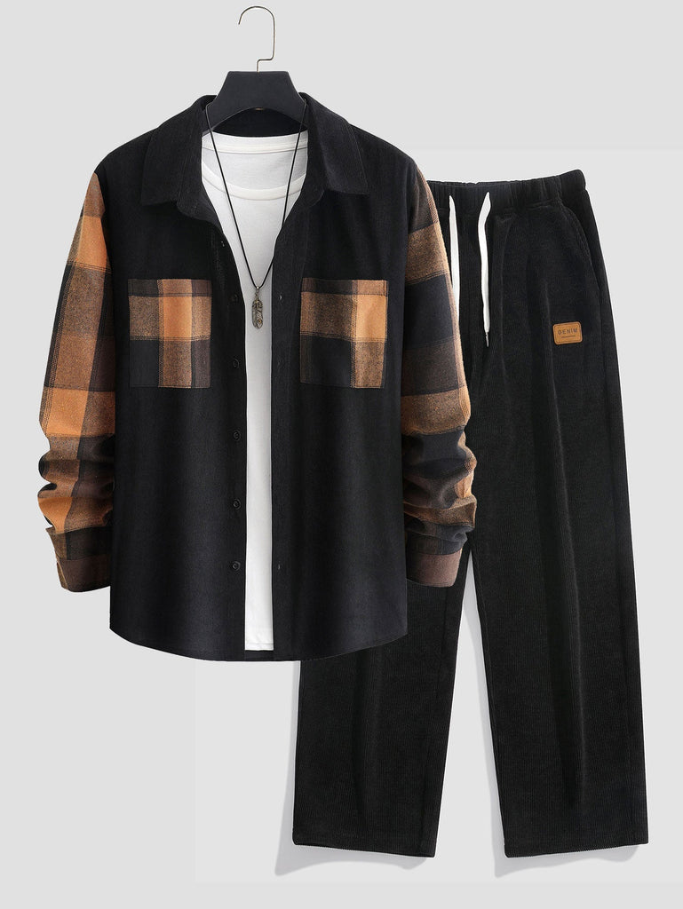 Plaid Corduroy Panel Shirt & Straight Leg Corduroy Pants