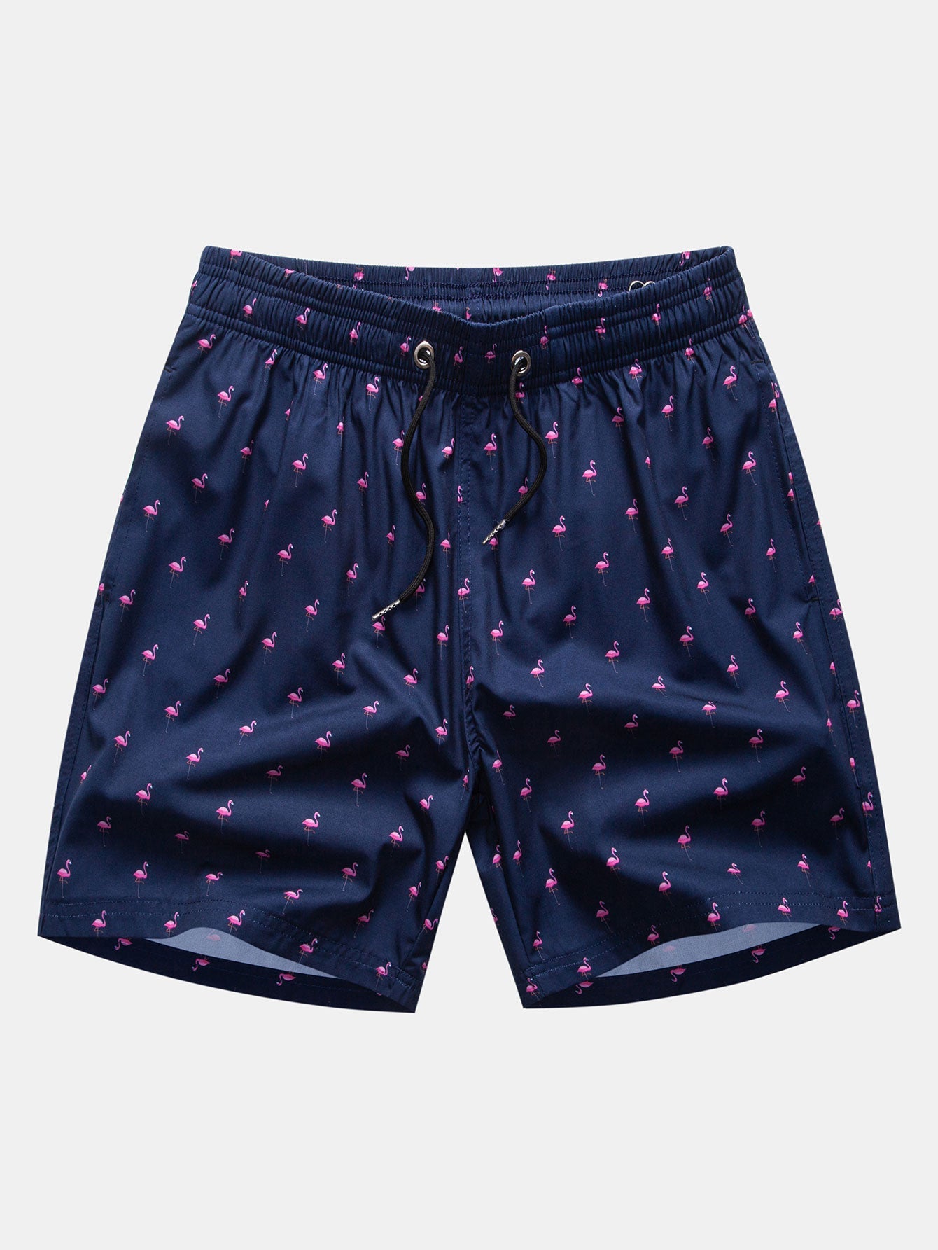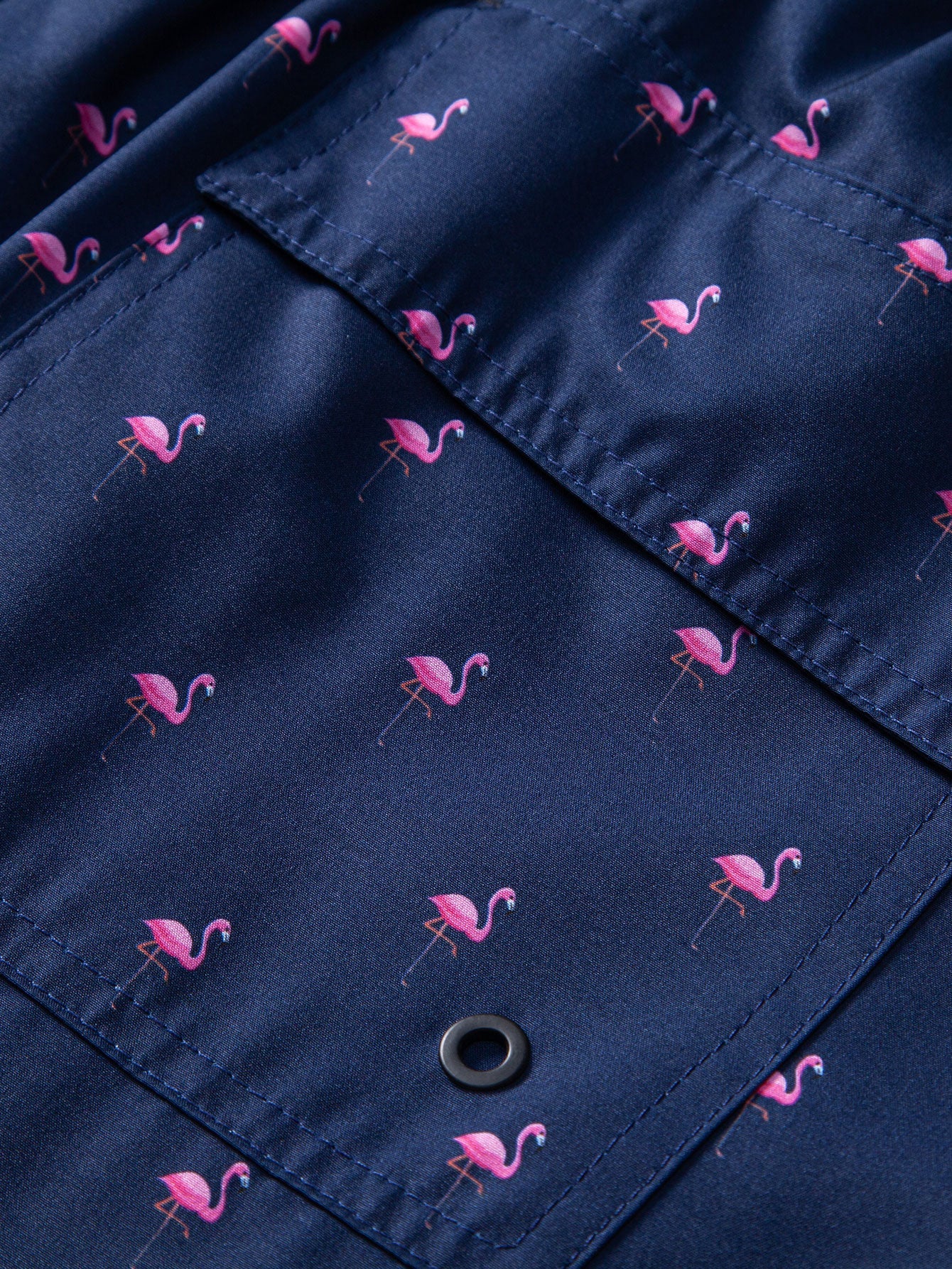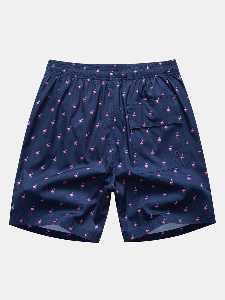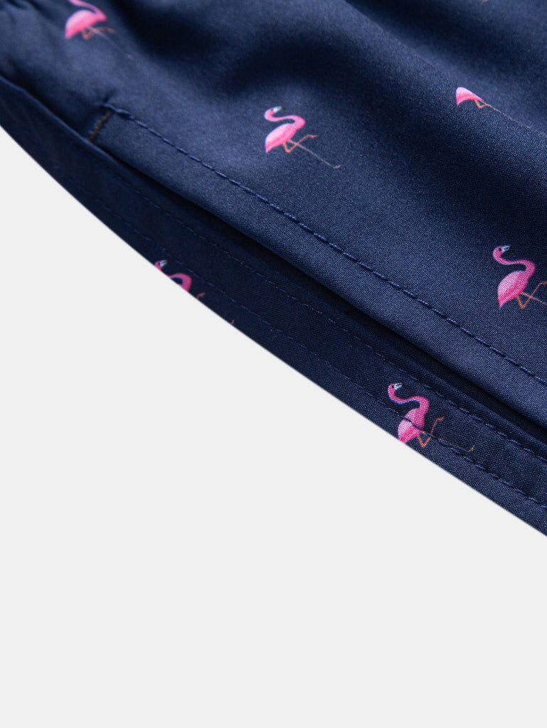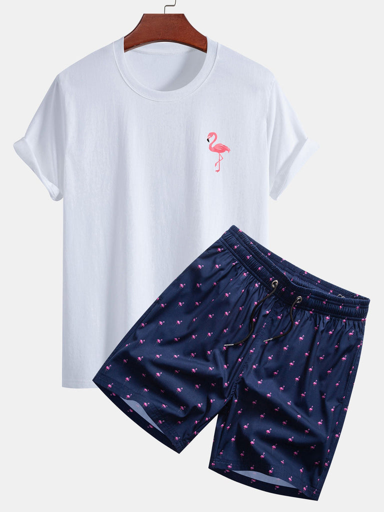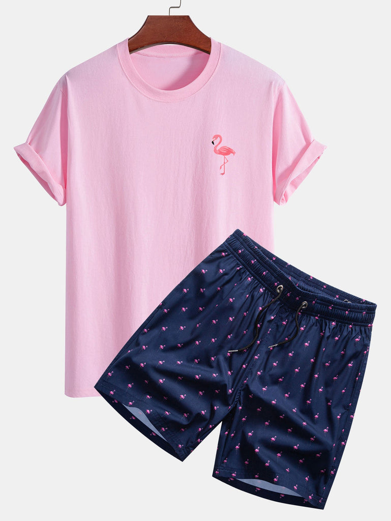 Regular Fit Flamingo Print Cotton T-Shirt & Flamingo Print Drawstring Swim Shorts