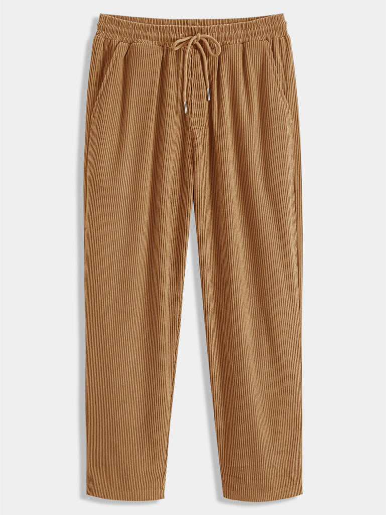 Relax Fit Flannel Plaid Corduroy Patchwork Hooded Shirt & Straight Leg Corduroy Pants