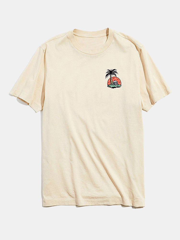 Skeleton On Vacation Graphic T-Shirts & Palm Tree Print Swim Shorts