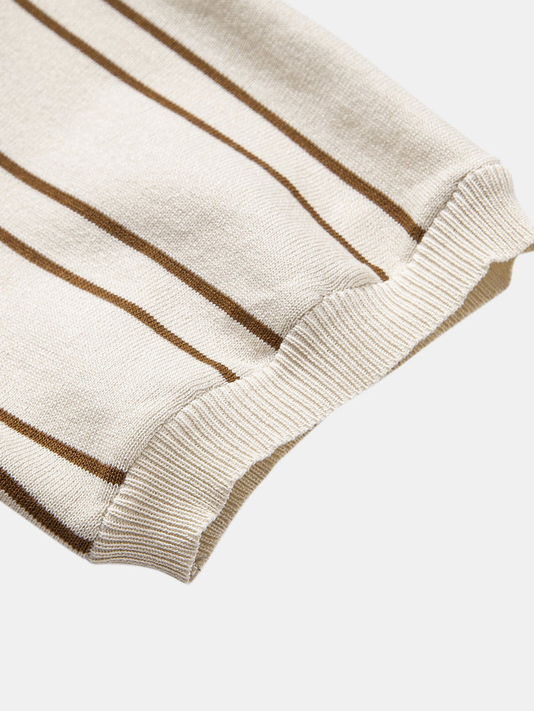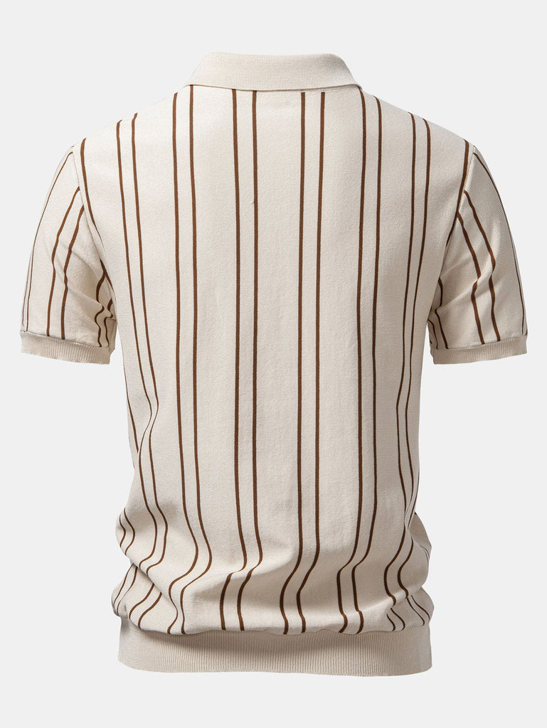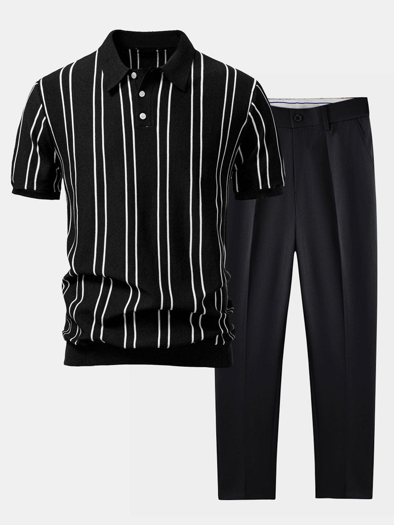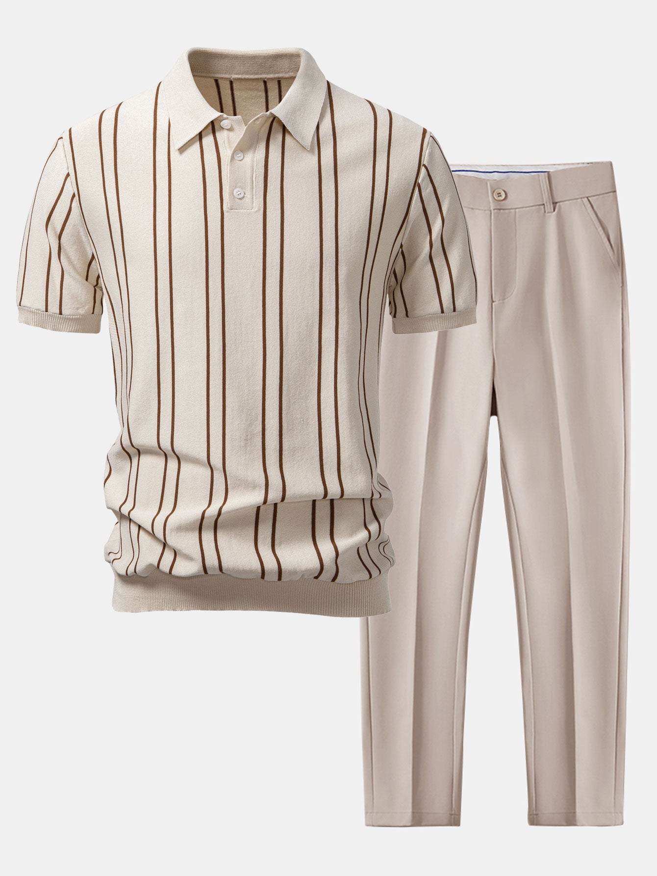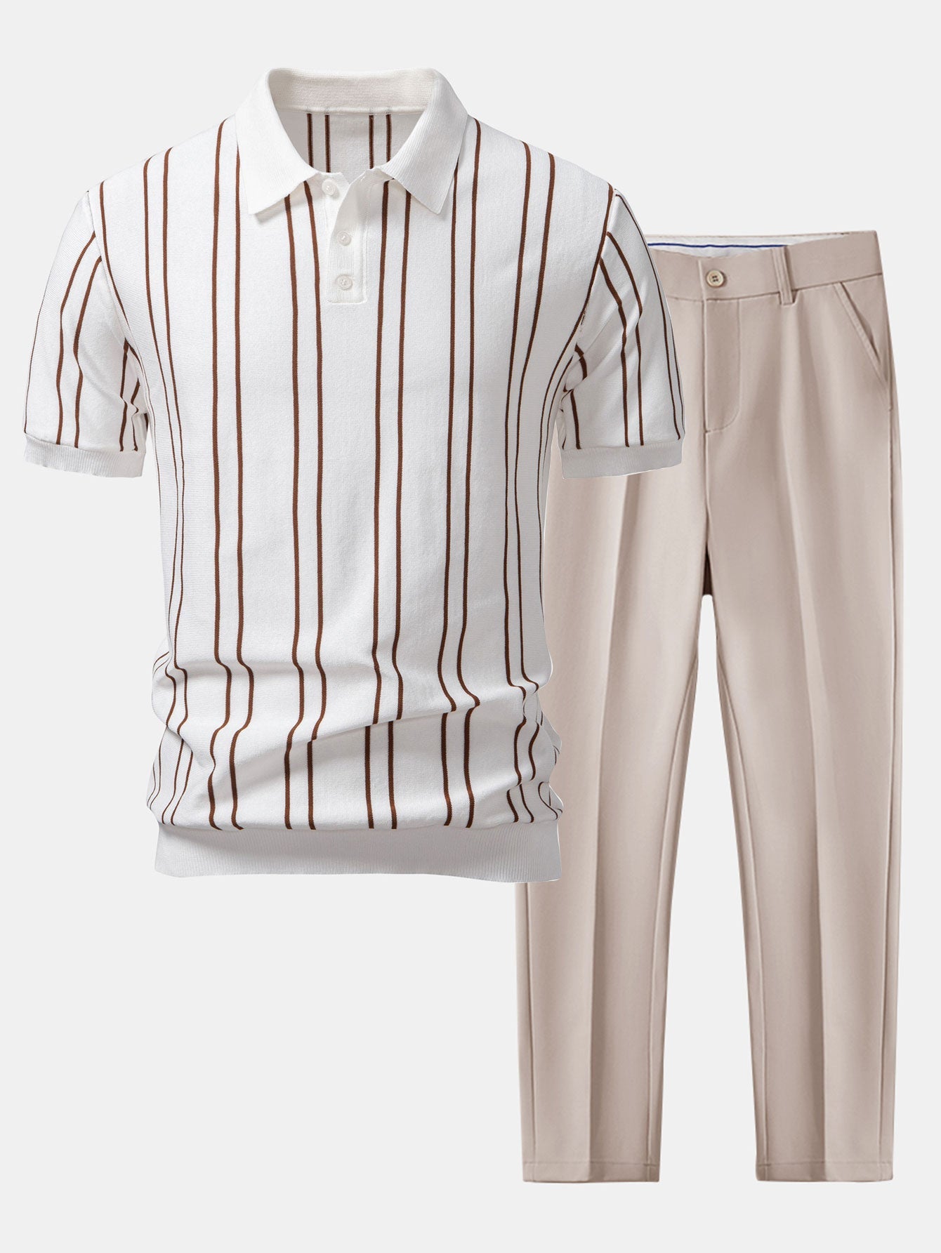 Elevate your everyday look with this effortlessly stylish two-piece set. Featuring a striped knitted polo shirt paired with slim fit tapered trousers, this combo strikes the perfect balance between relaxed comfort and refined sophistication.
