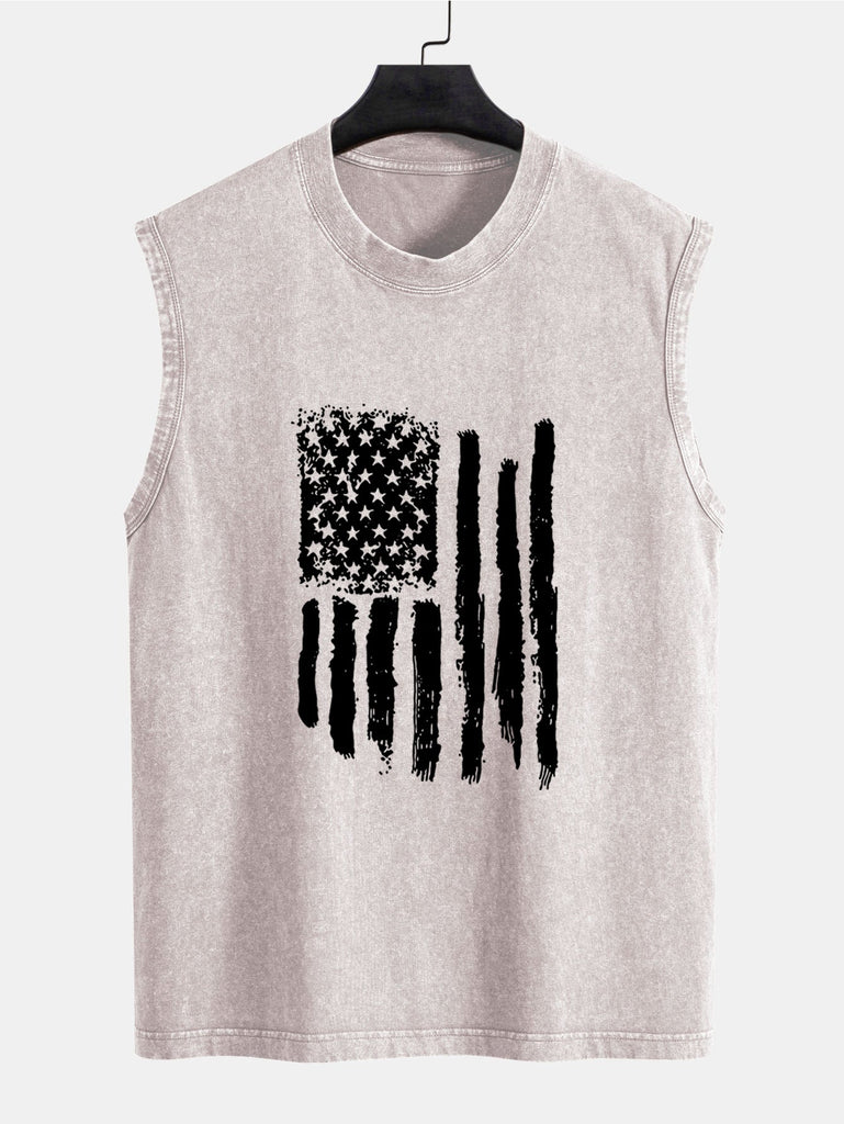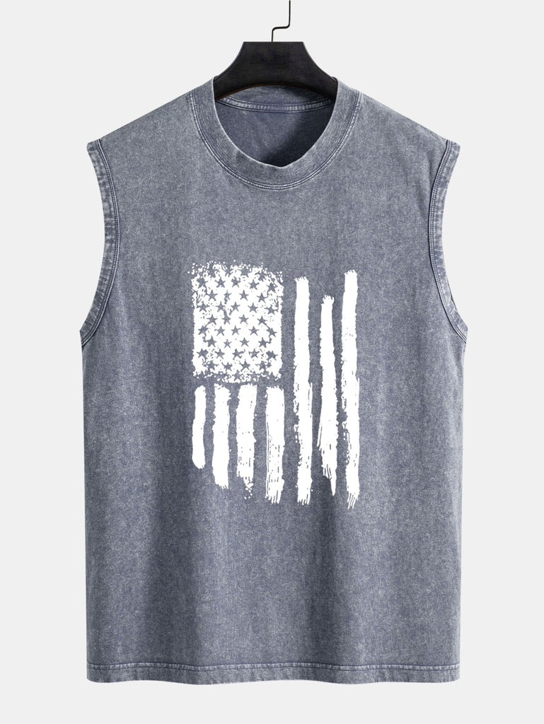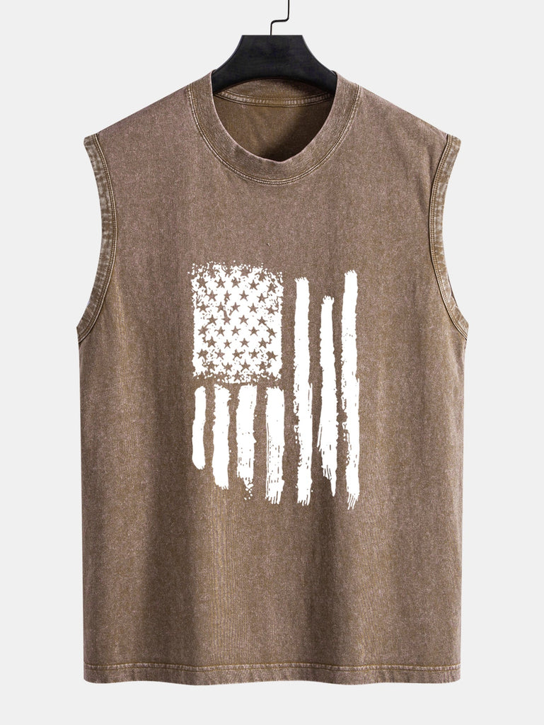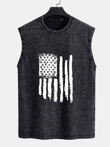 American Flag Print Washed Distressed Tank Top