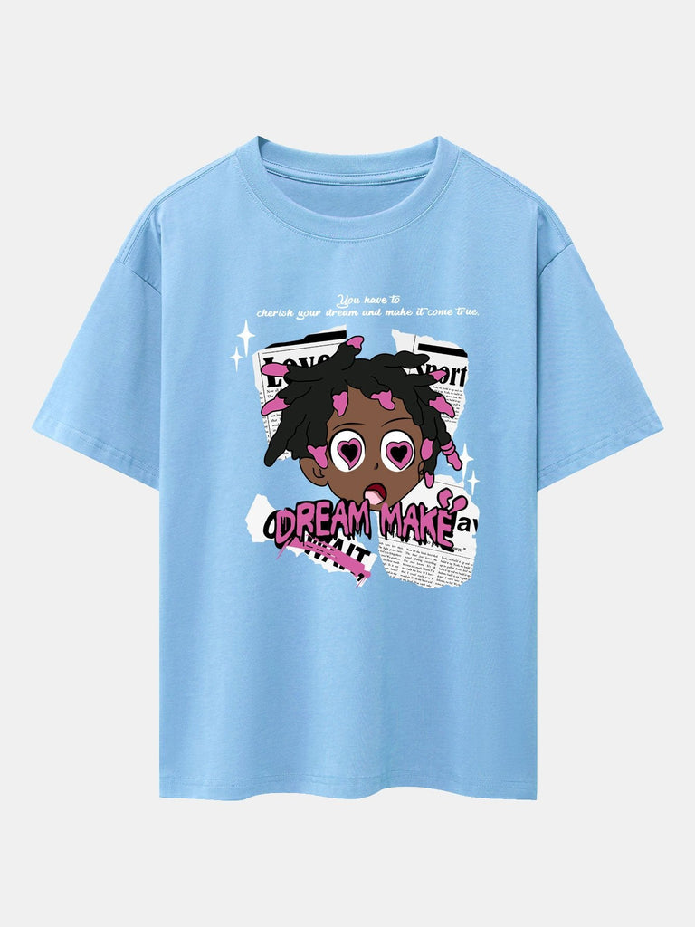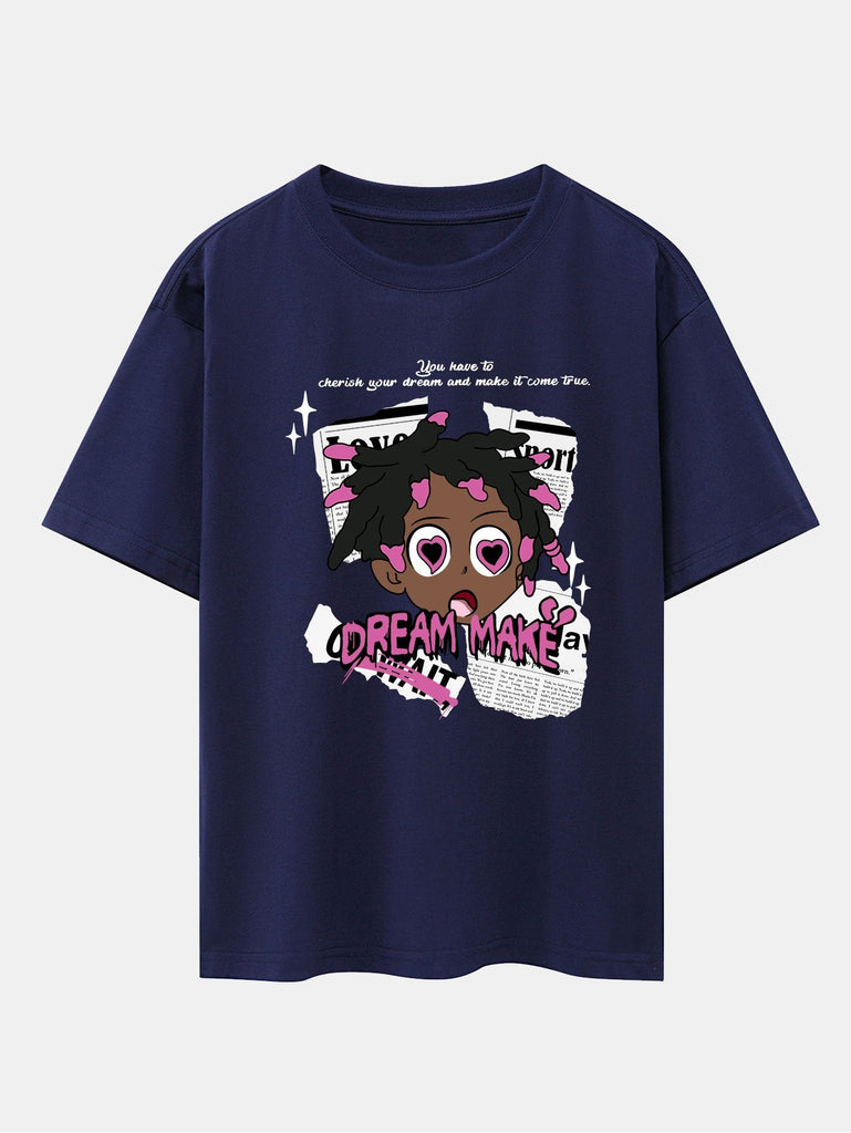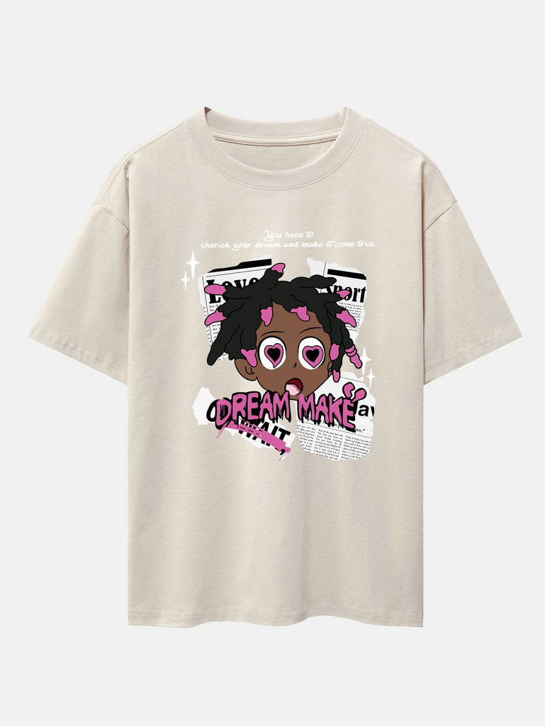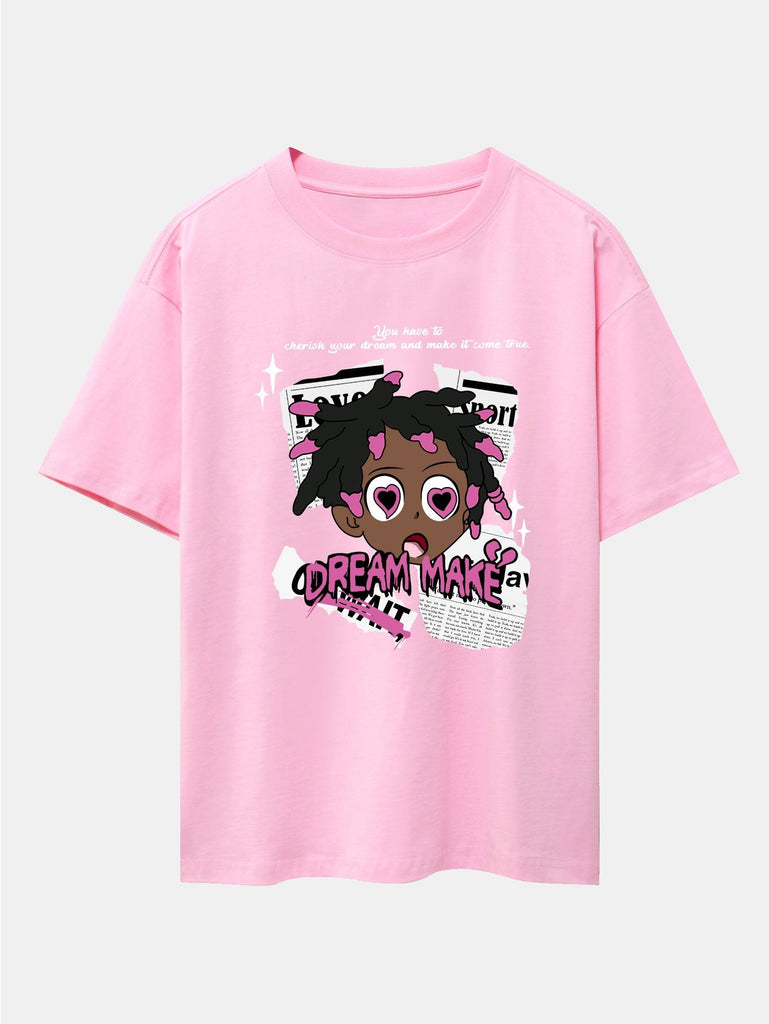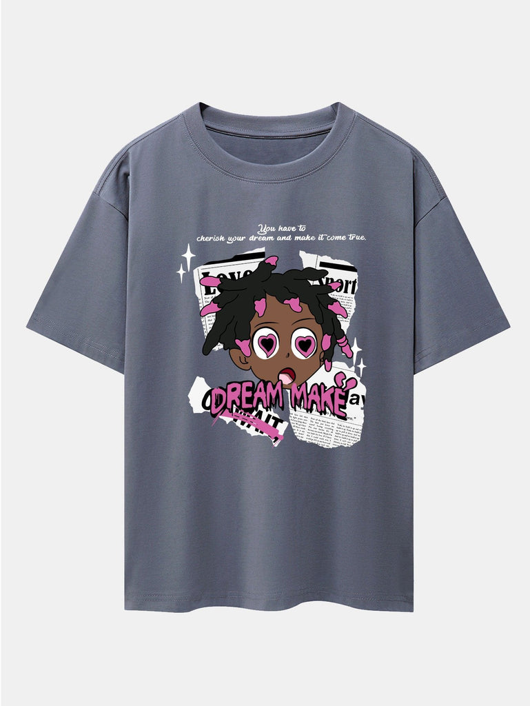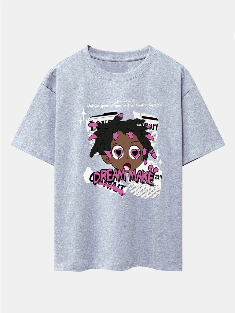 Cartoon Character Newspaper Print Drop Shoulder Oversize T-Shirt