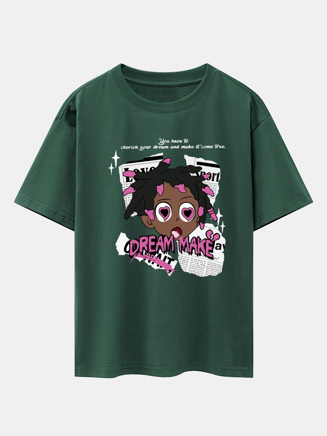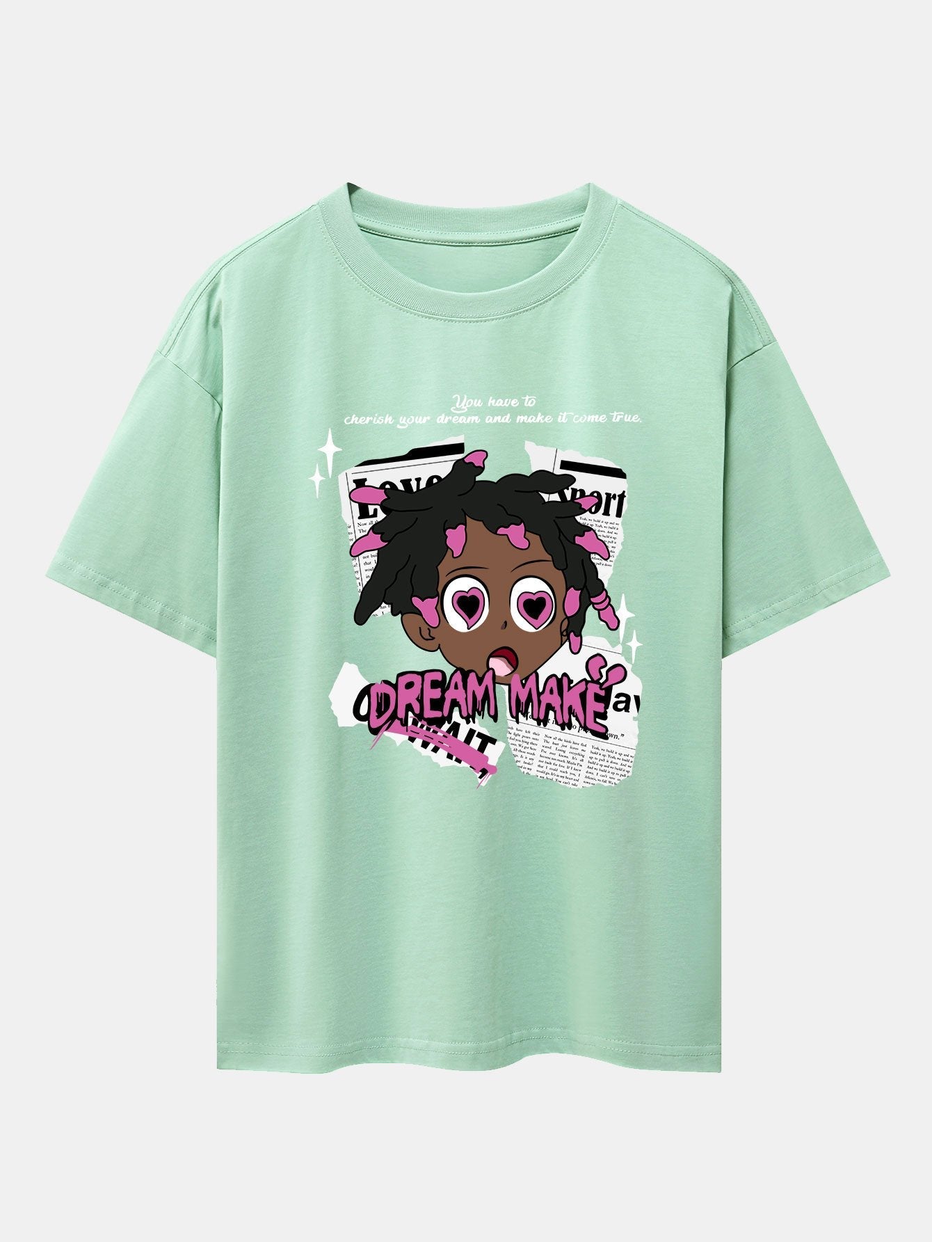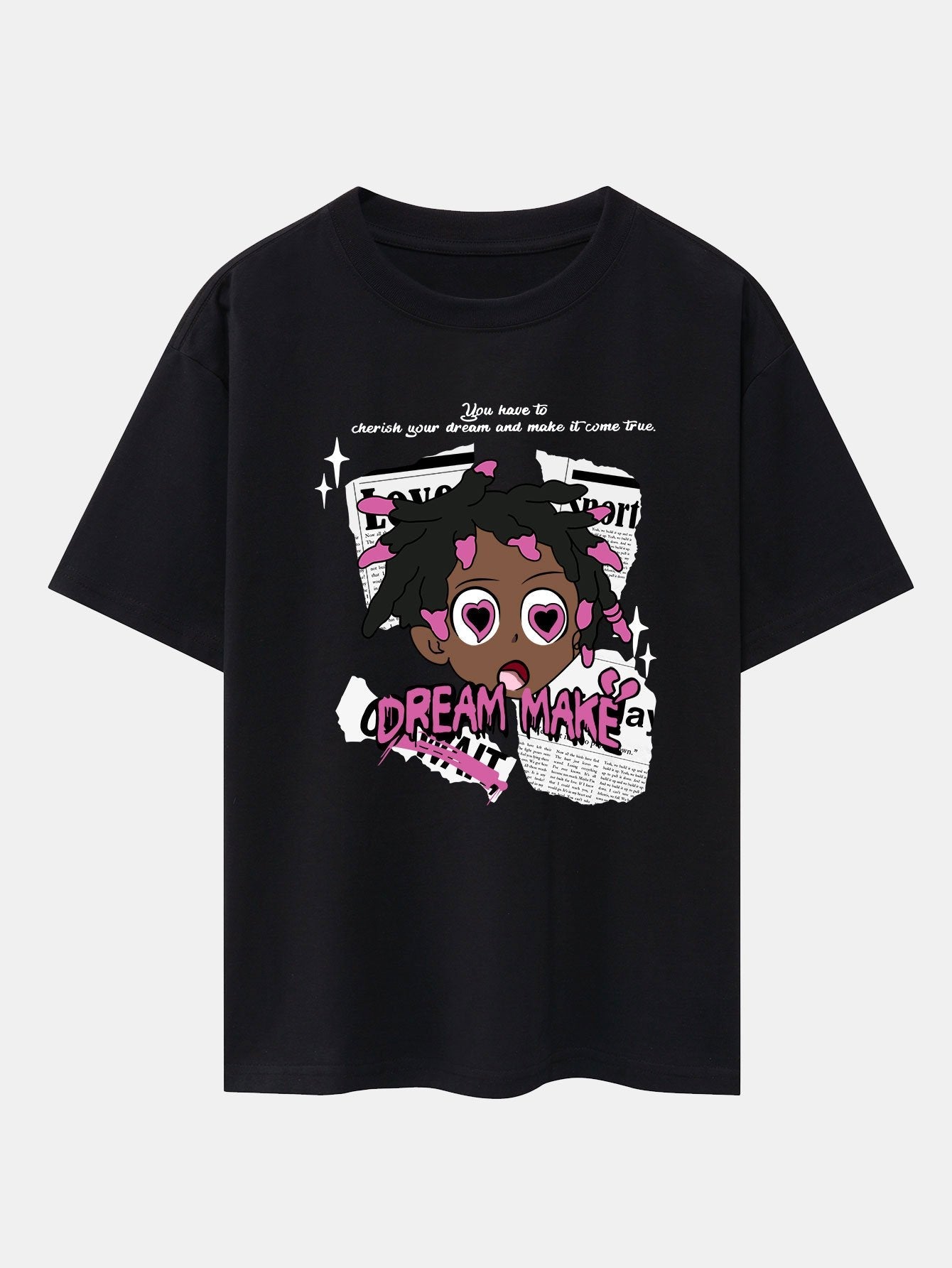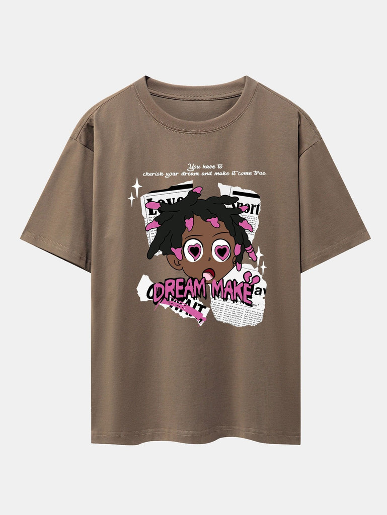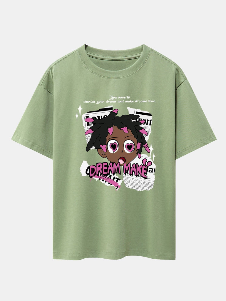 Cartoon Character Newspaper Print Drop Shoulder Oversize T-Shirt