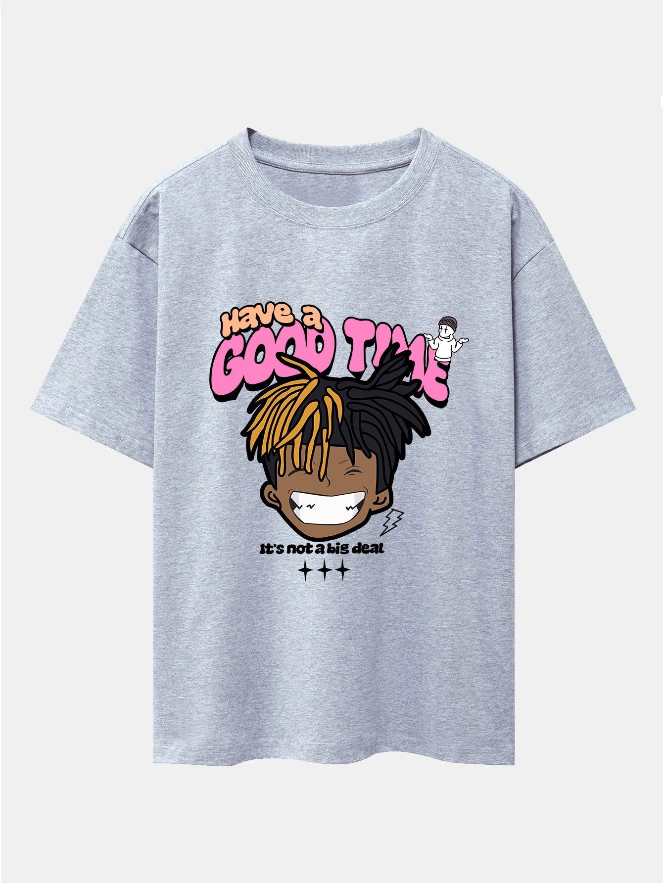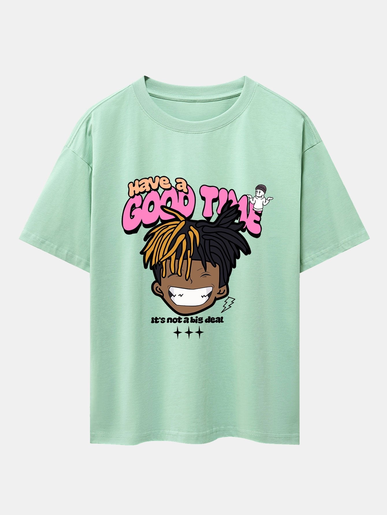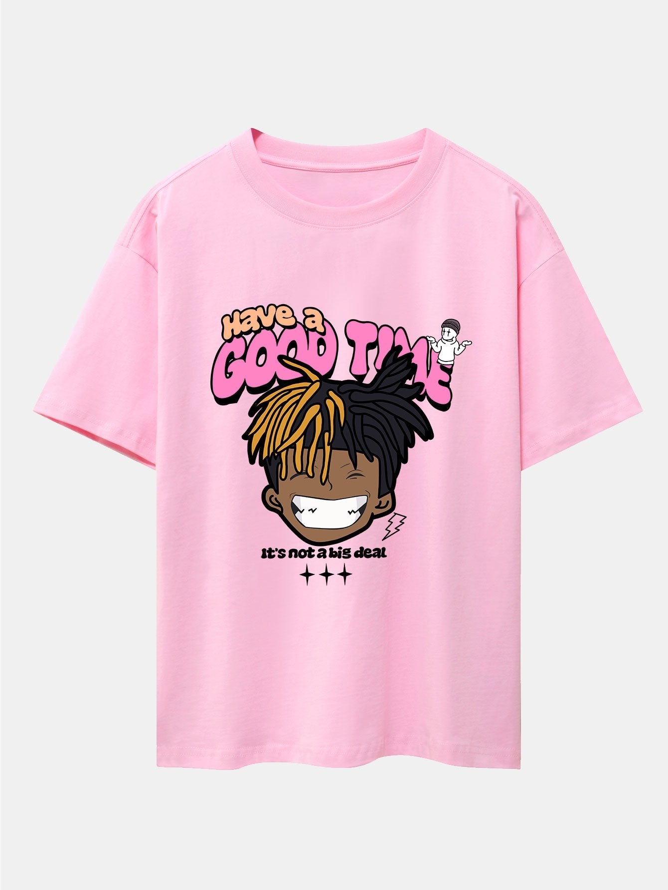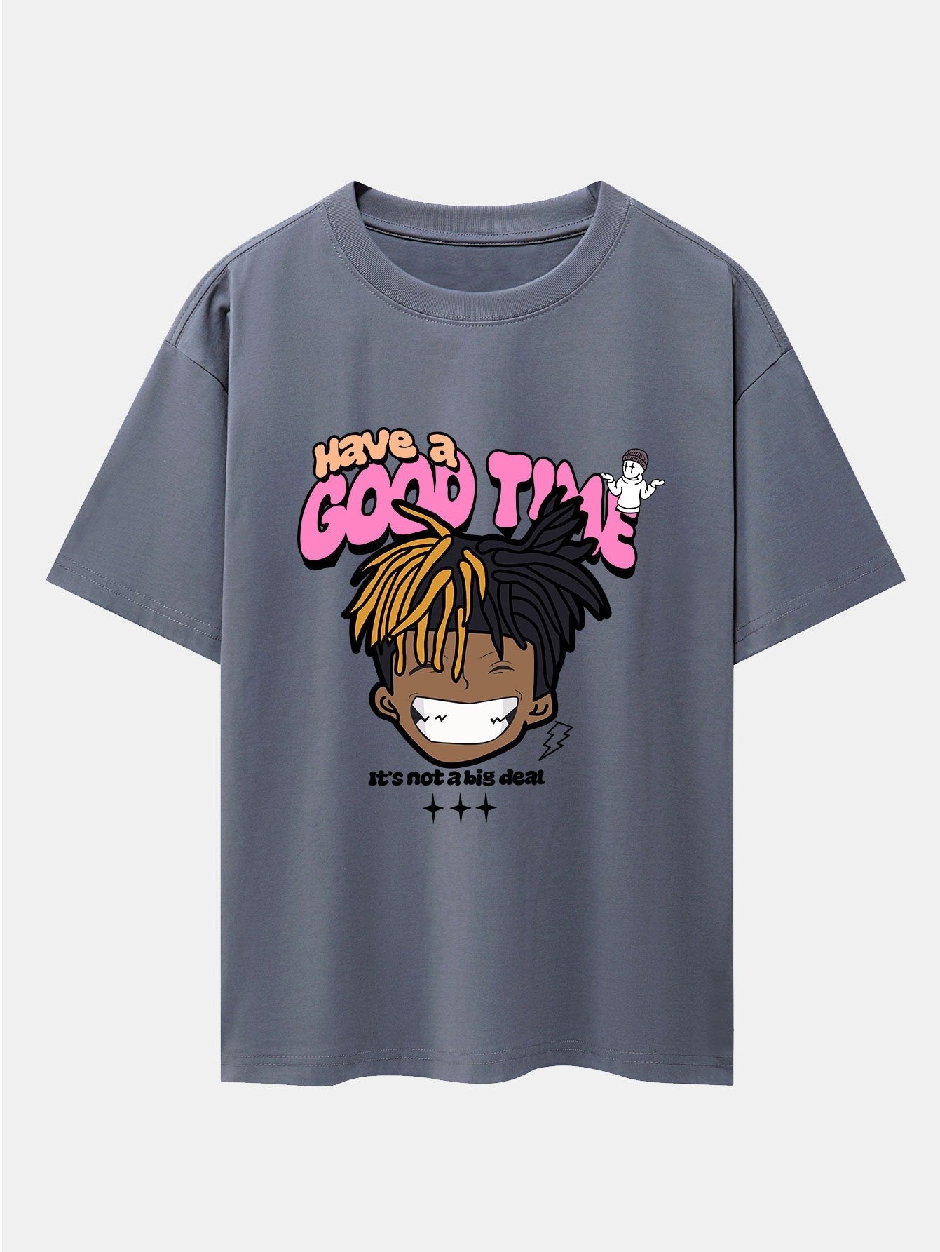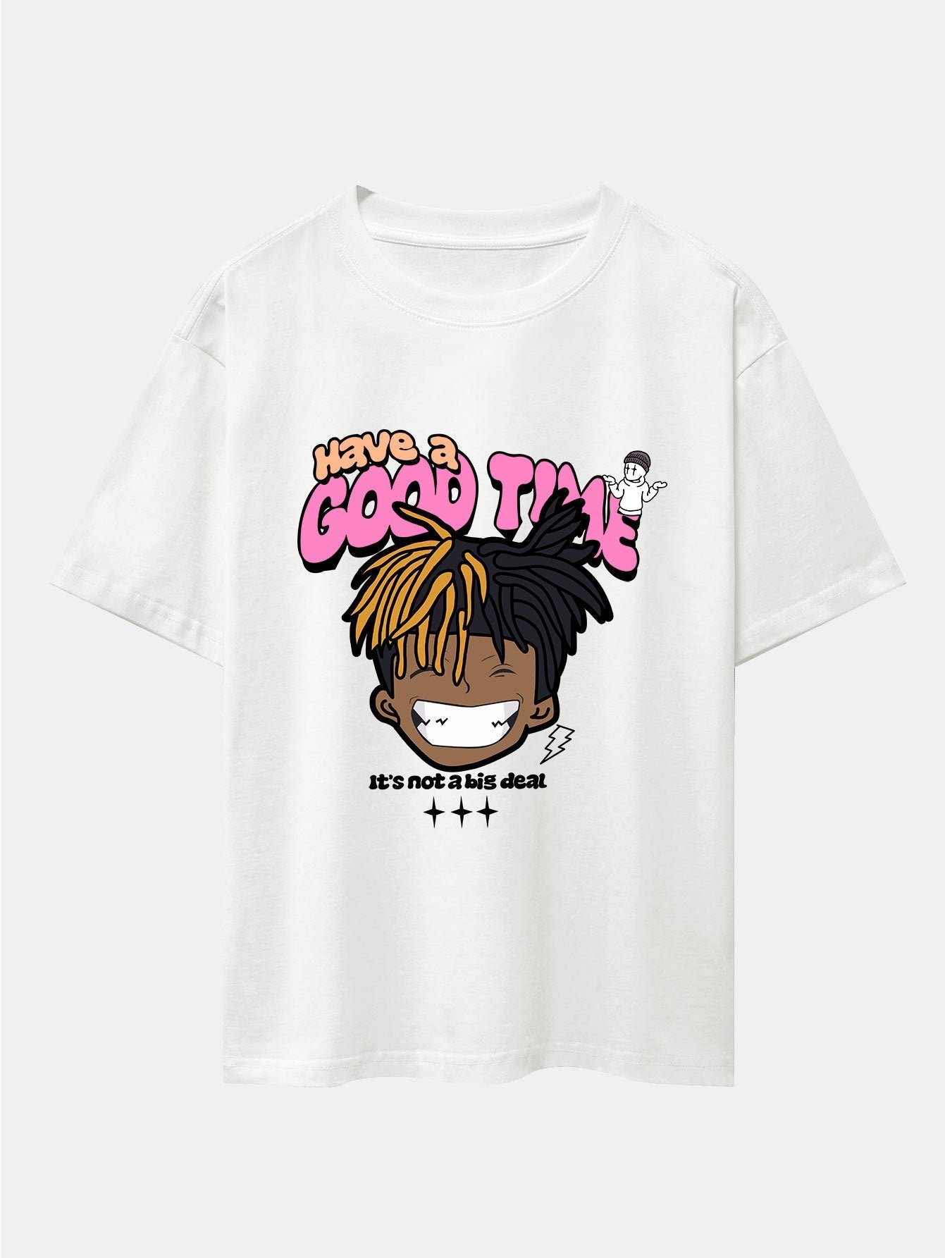 Cartoon Character Slogan Print Drop Shoulder Oversize T-Shirt