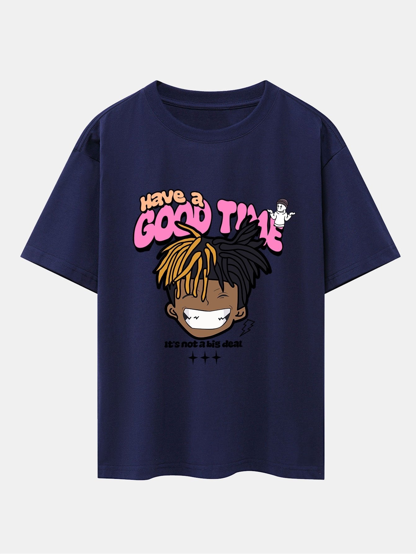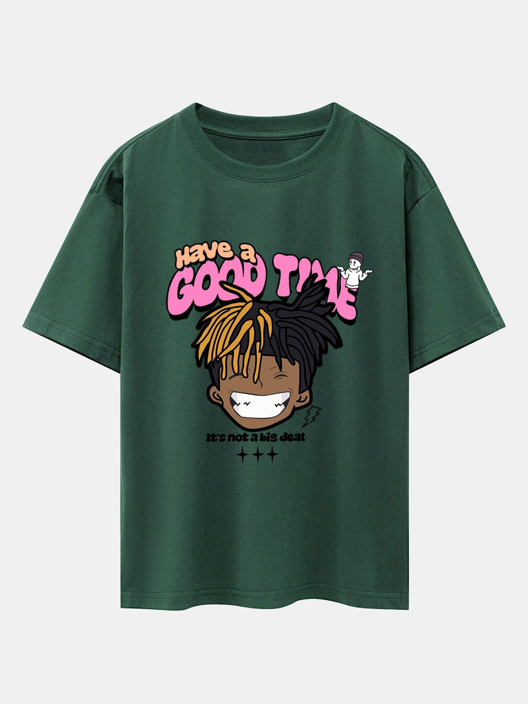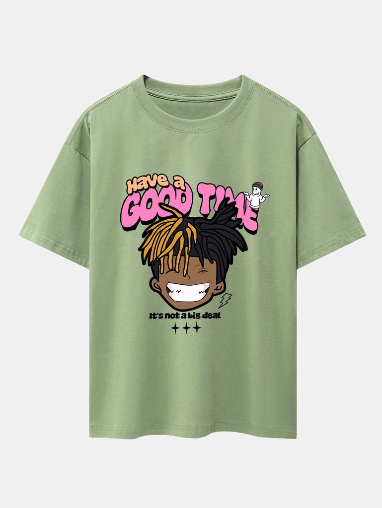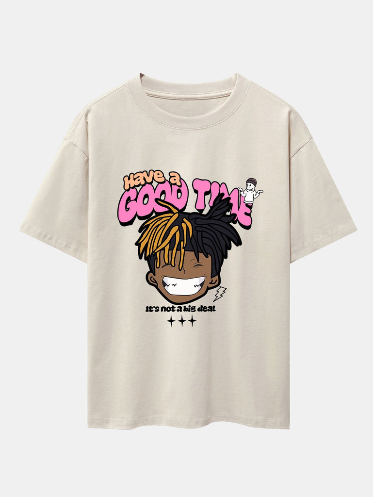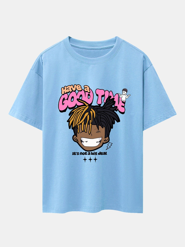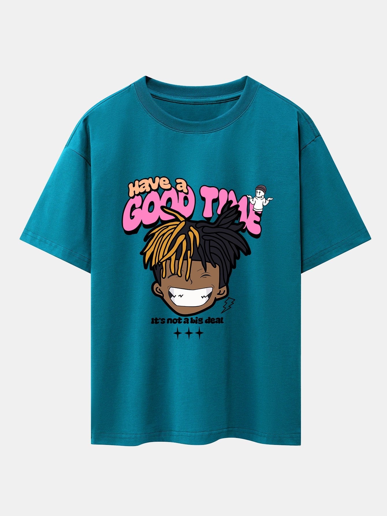Cartoon Character Slogan Print Drop Shoulder Oversize T-Shirt