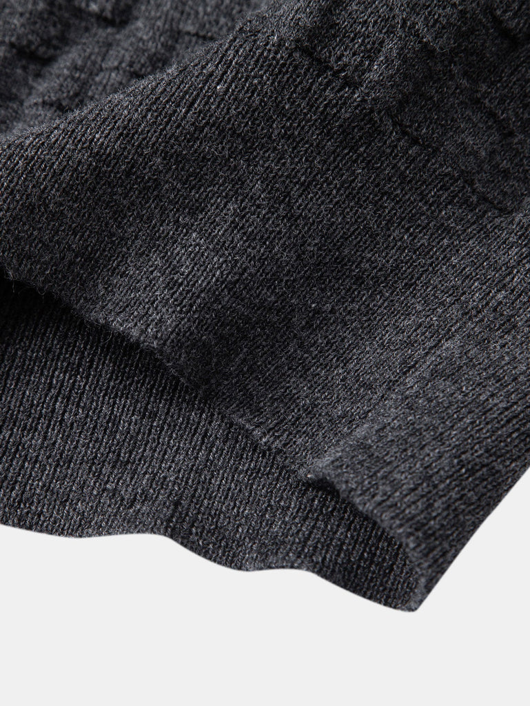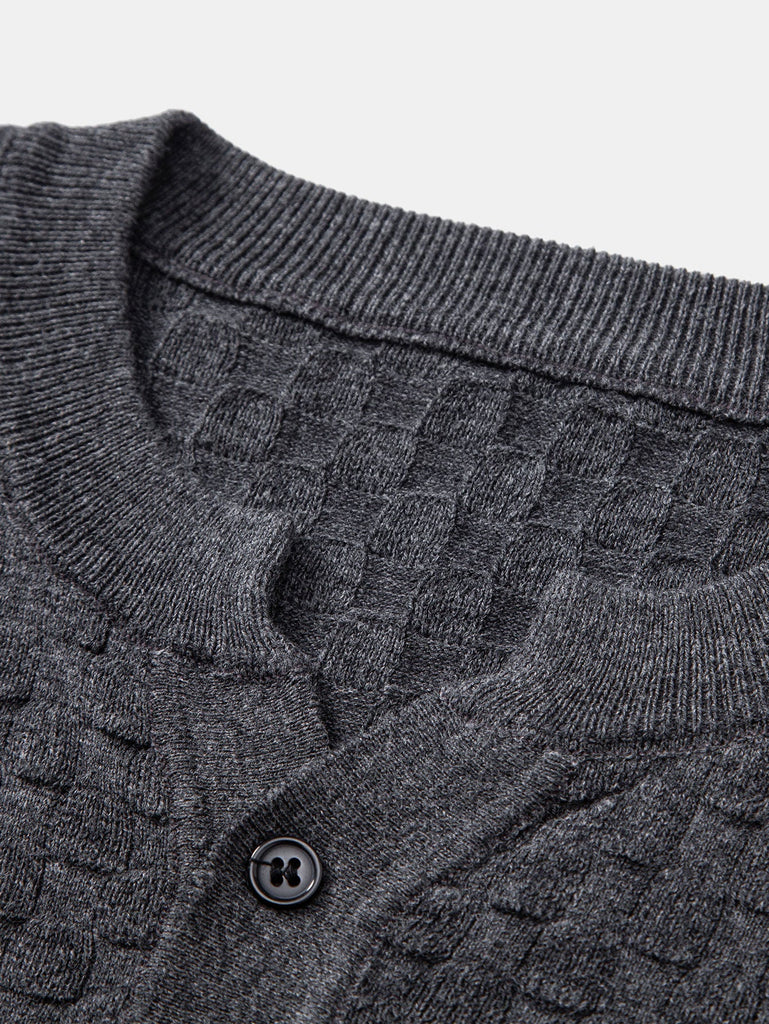 Checkerboard Henley Collar Sweater Knitted T-Shirt