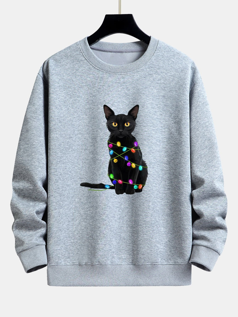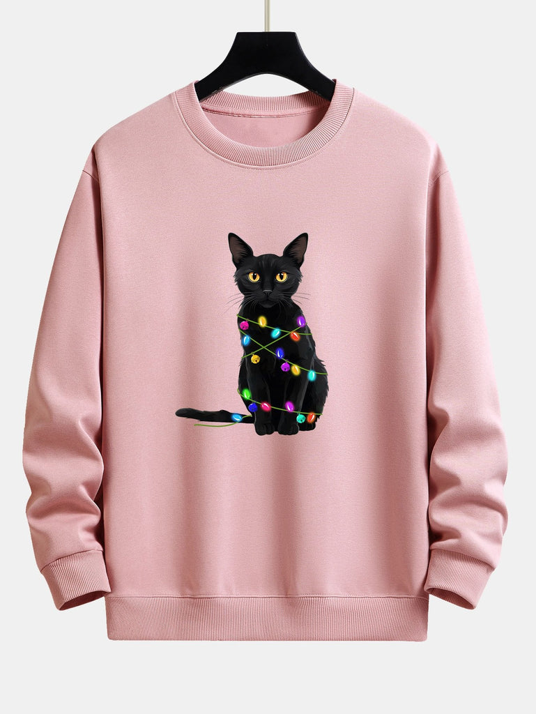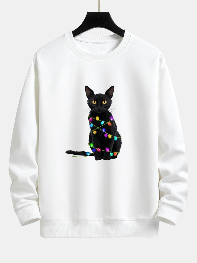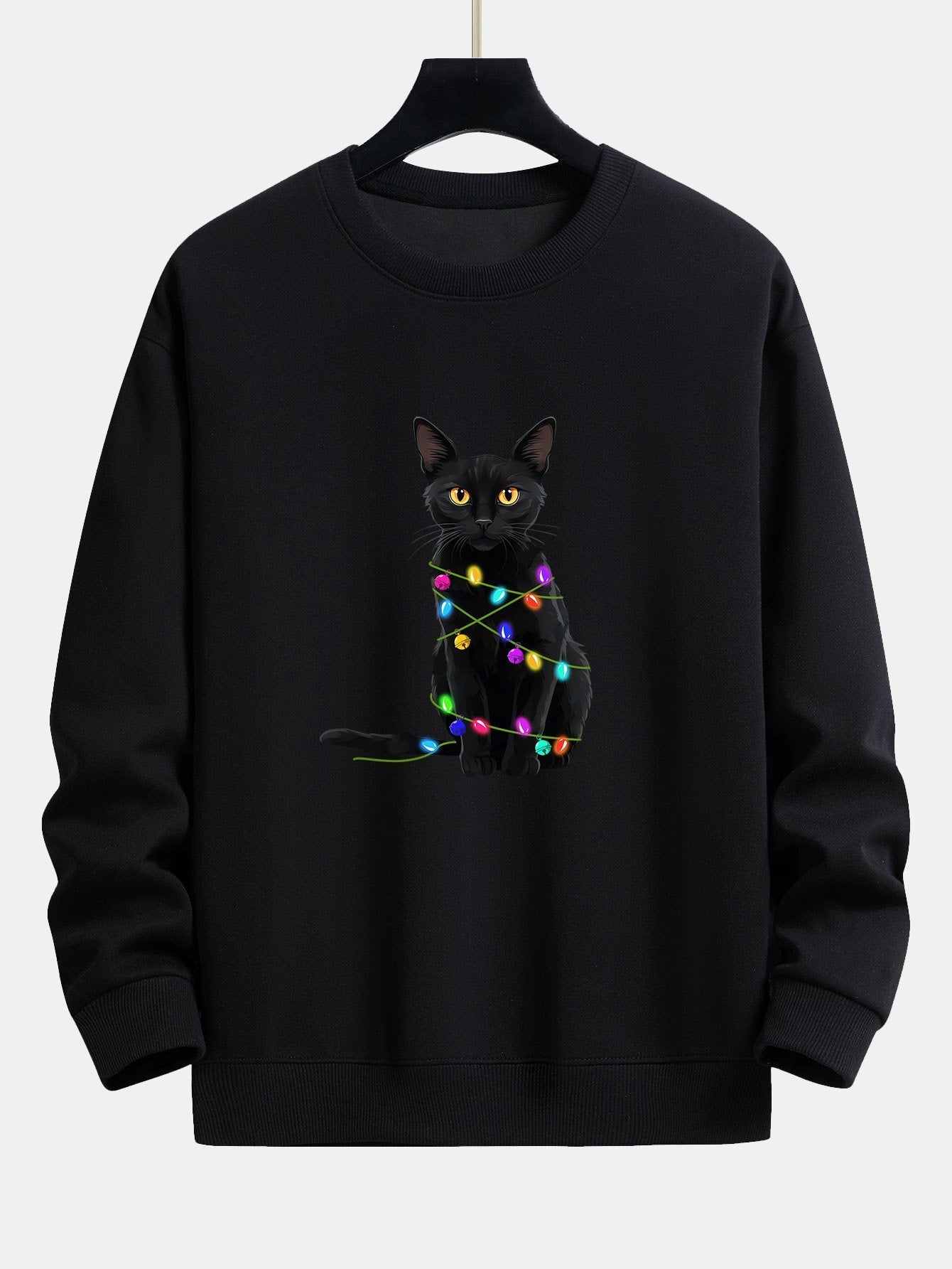 Color Lights Black Cat Print Relax Fit Sweatshirt