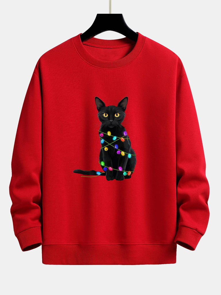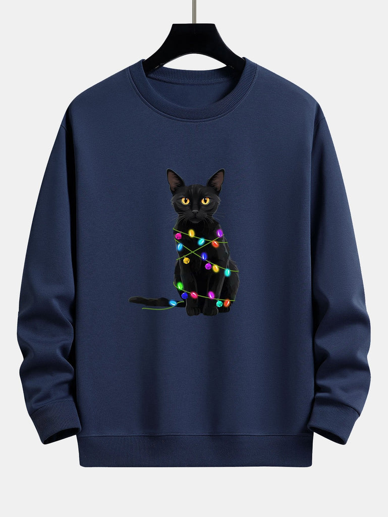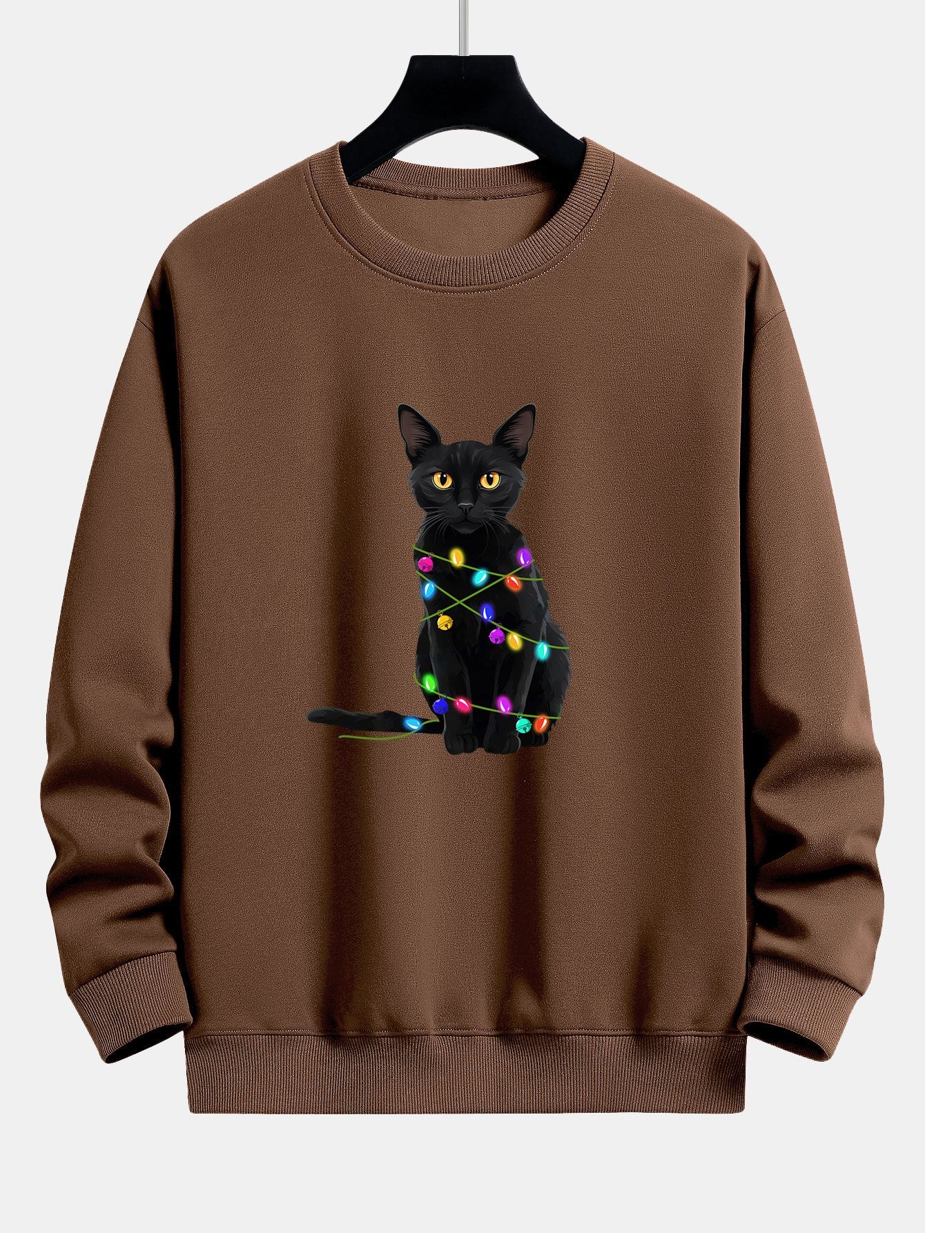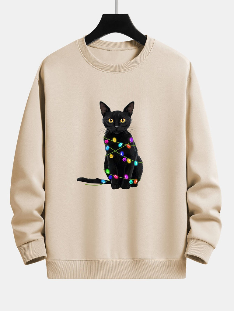 Color Lights Black Cat Print Relax Fit Sweatshirt