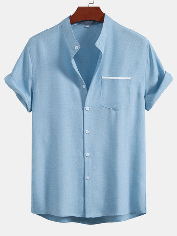 Designed with a modern stand collar and a streamlined button-up front, this shirt brings a contemporary edge to any outfit. A chest pocket adds a practical touch, while the breathable fabric keeps you comfortable from day to night. Whether worn alone or layered, it's a versatile staple for smart-casual dressing.