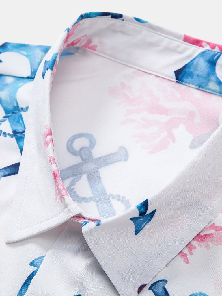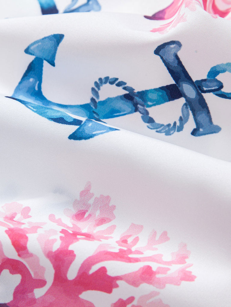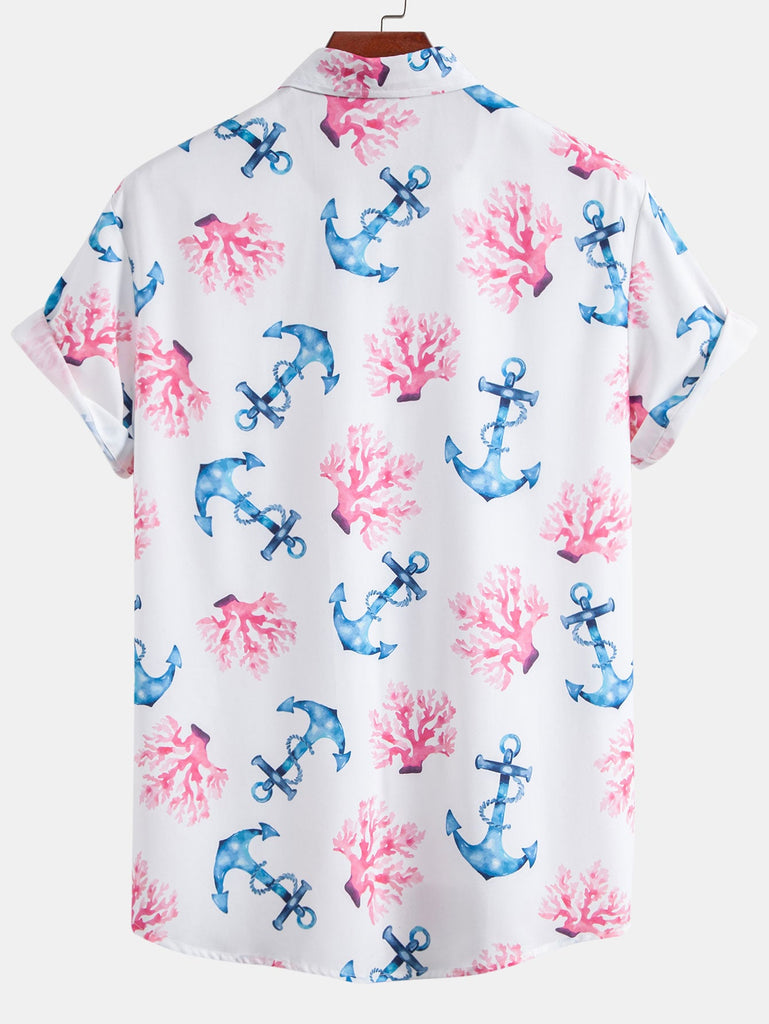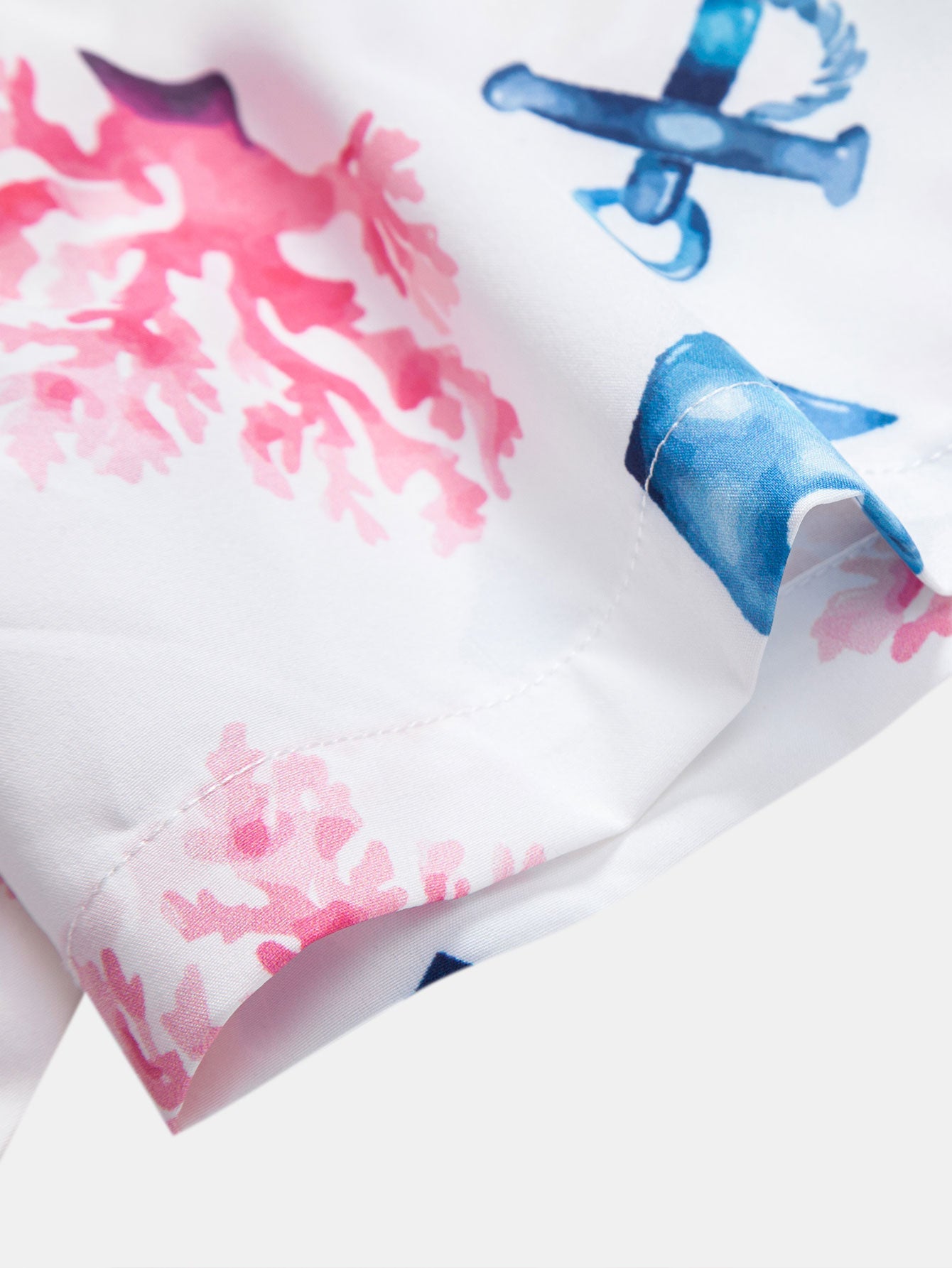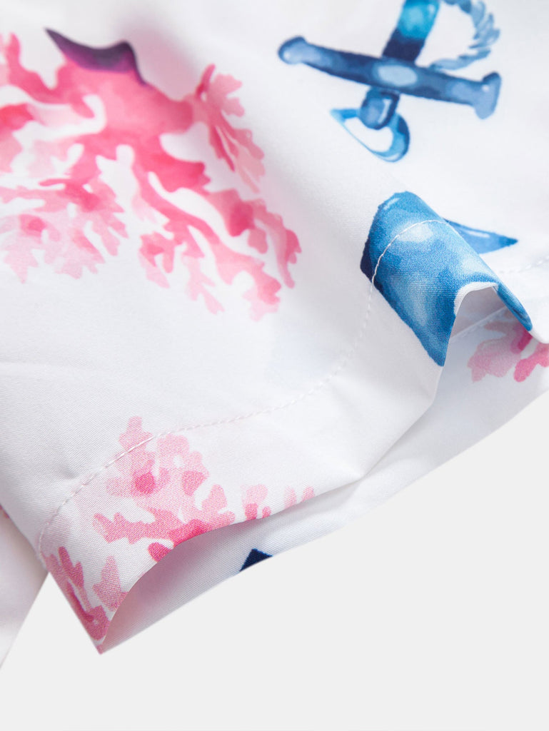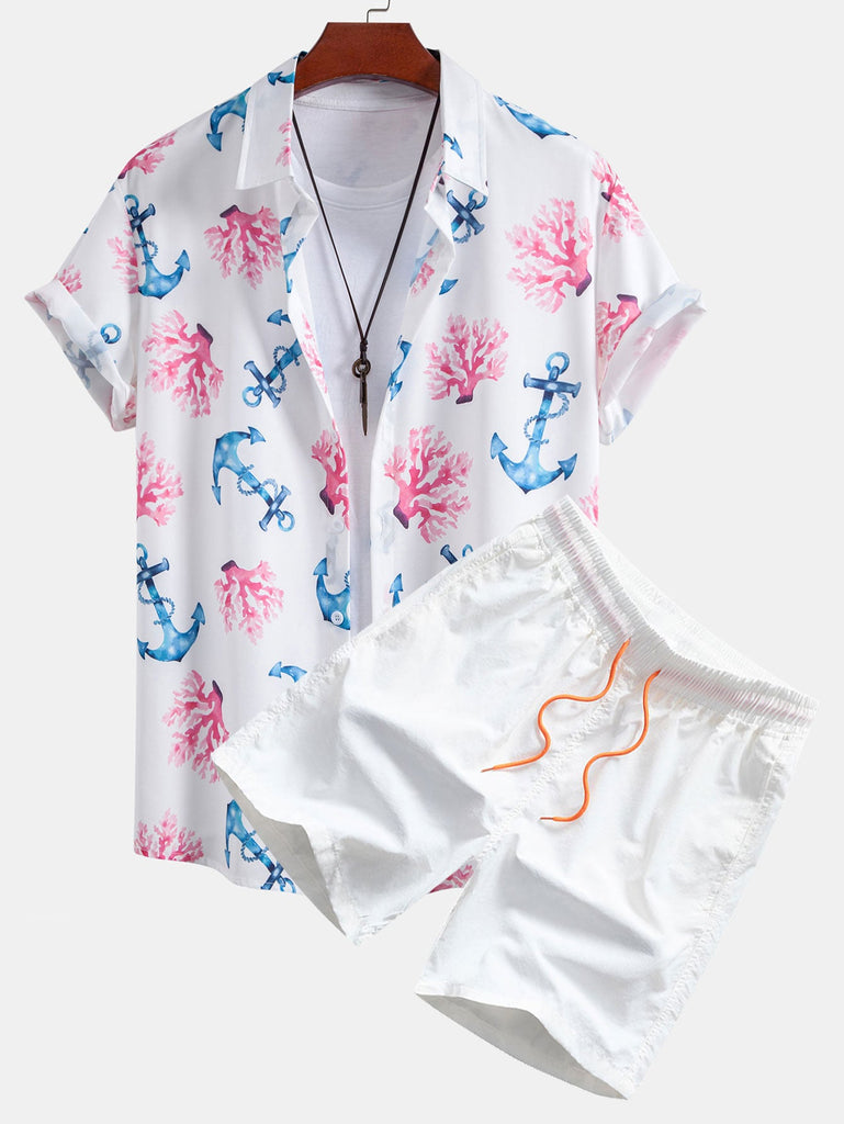 Coral Anchor Print Button Up Shirt & Swim Shorts