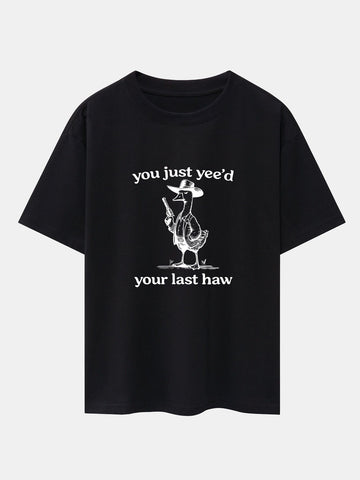 Cowboy Goose Print Drop Shoulder Oversize T-Shirt
