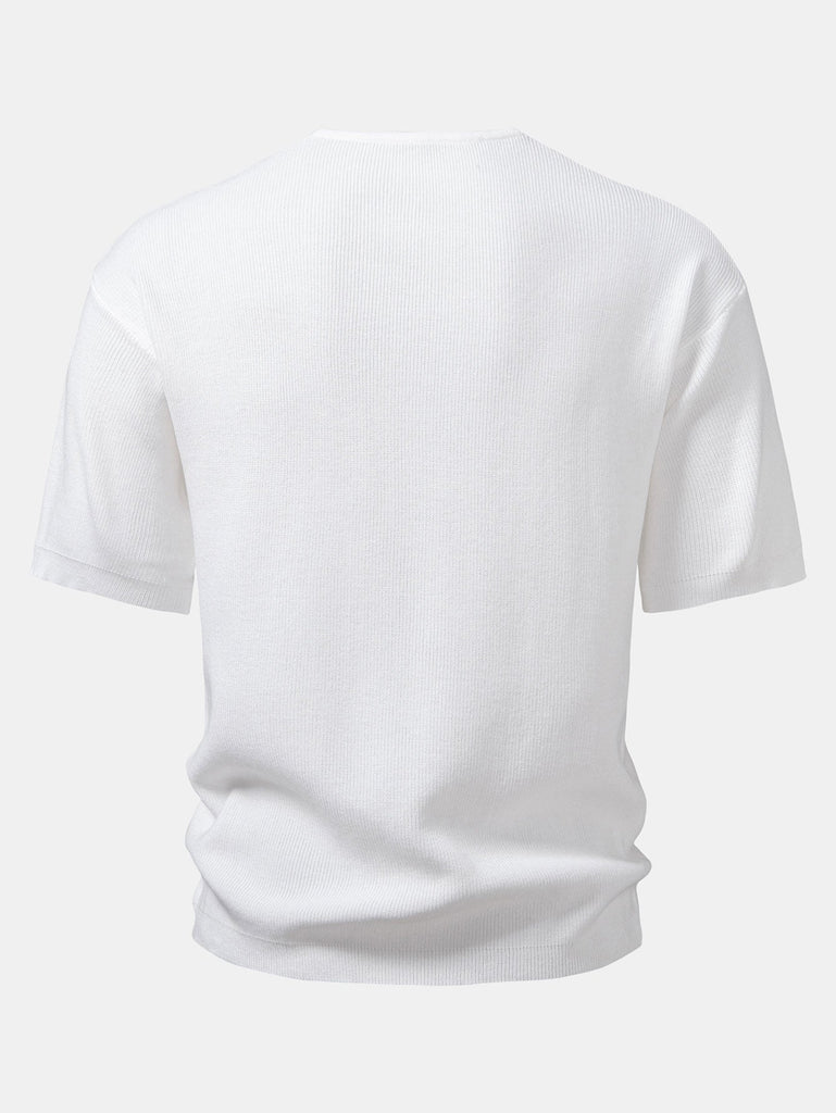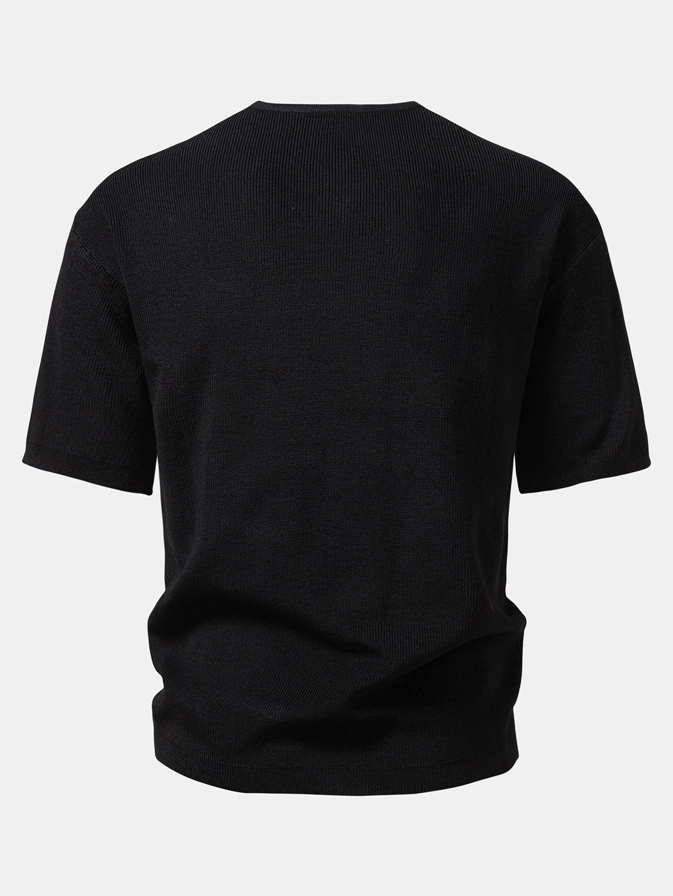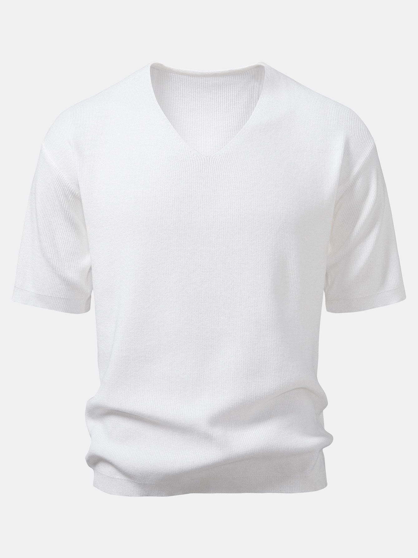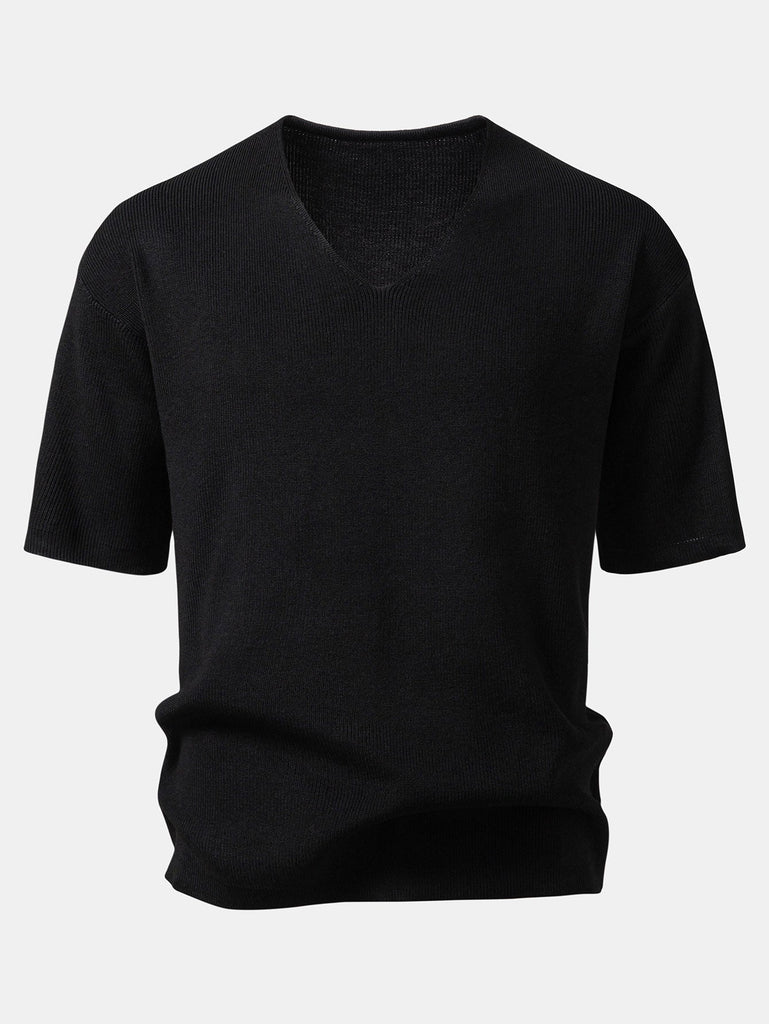 Sleek, simple, and effortlessly refined ¡ª this solid knitted V neck T-shirt brings elevated comfort to your daily wear. Made from soft, breathable knit fabric, it features a clean, minimalist design with a classic V-neckline and subtle ribbed details.