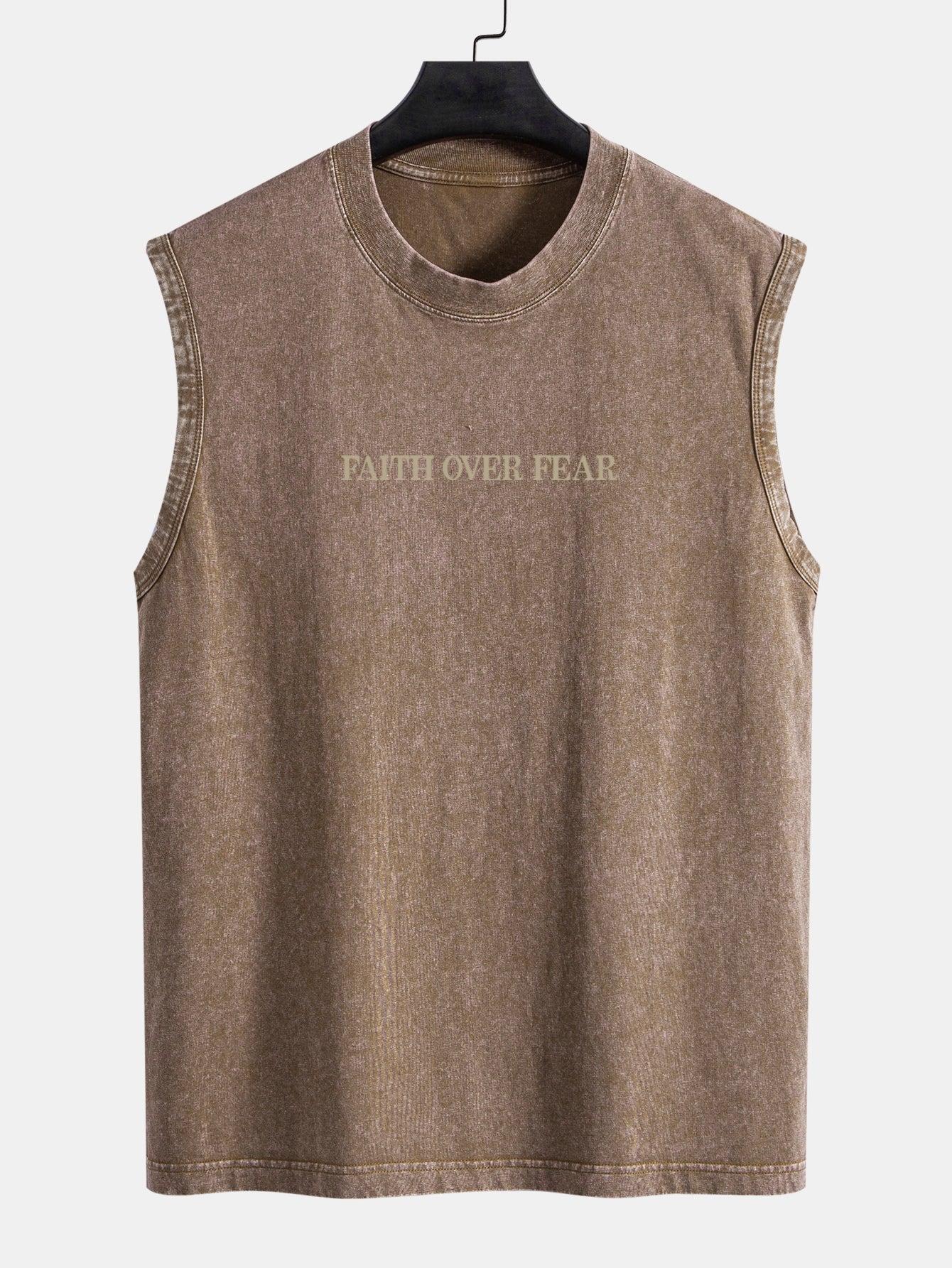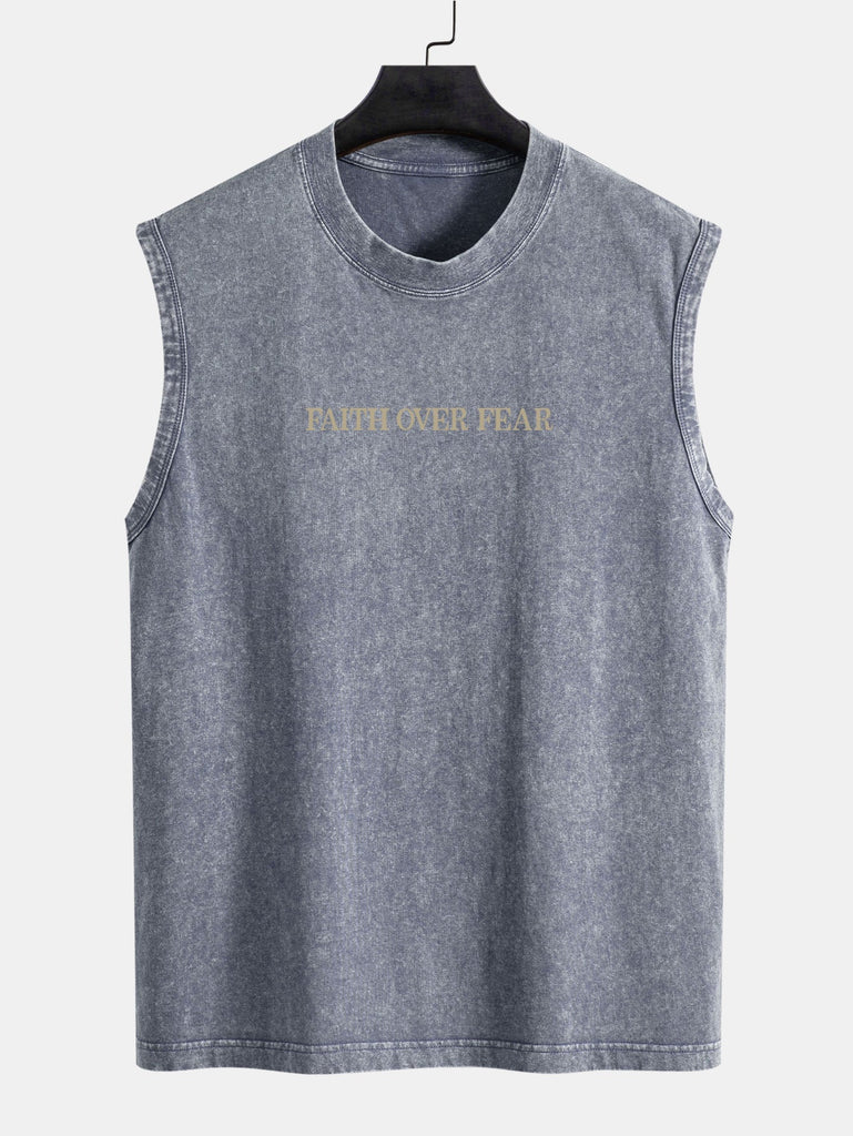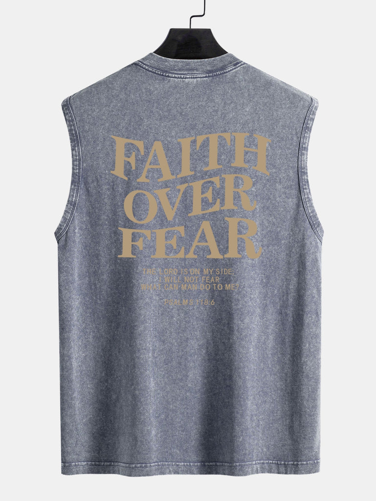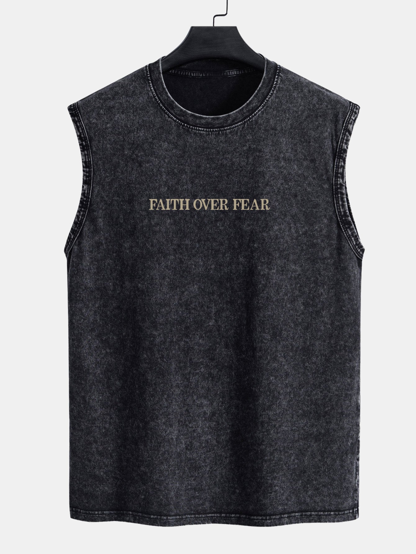 Faith Over Fear Back Print Washed Distressed Tank Top