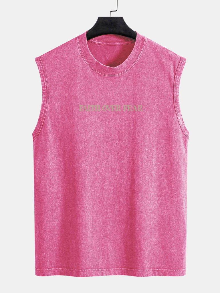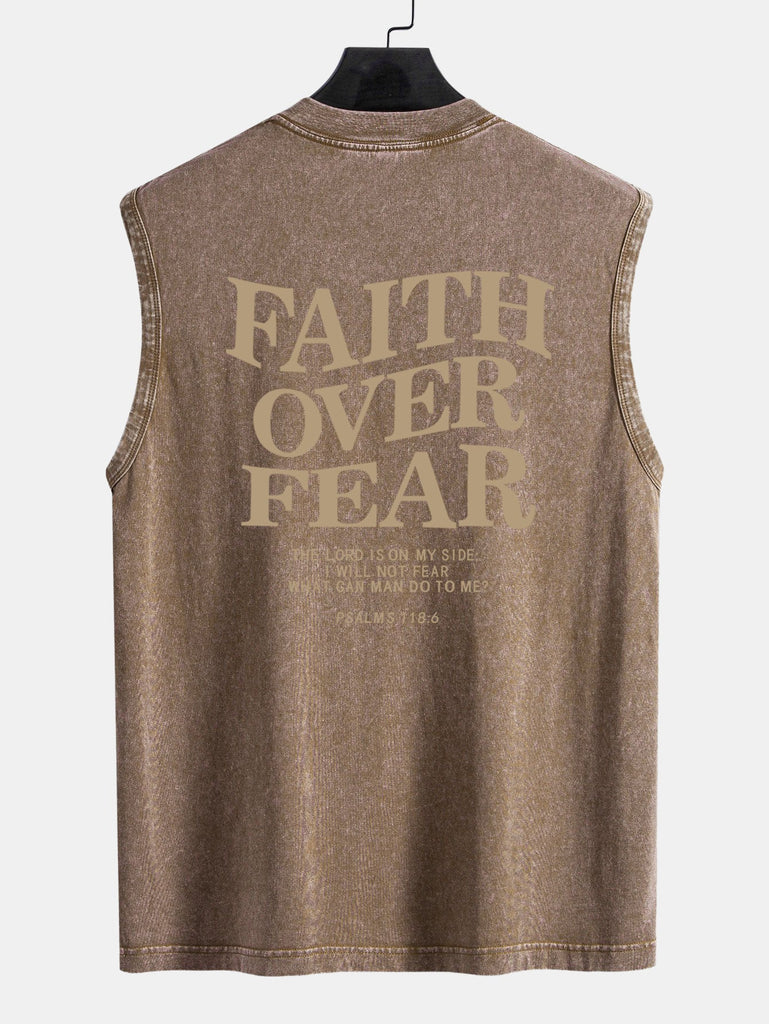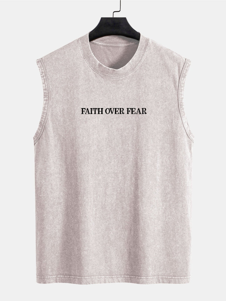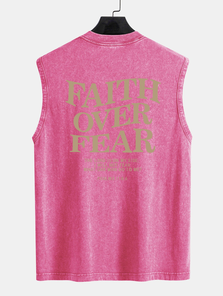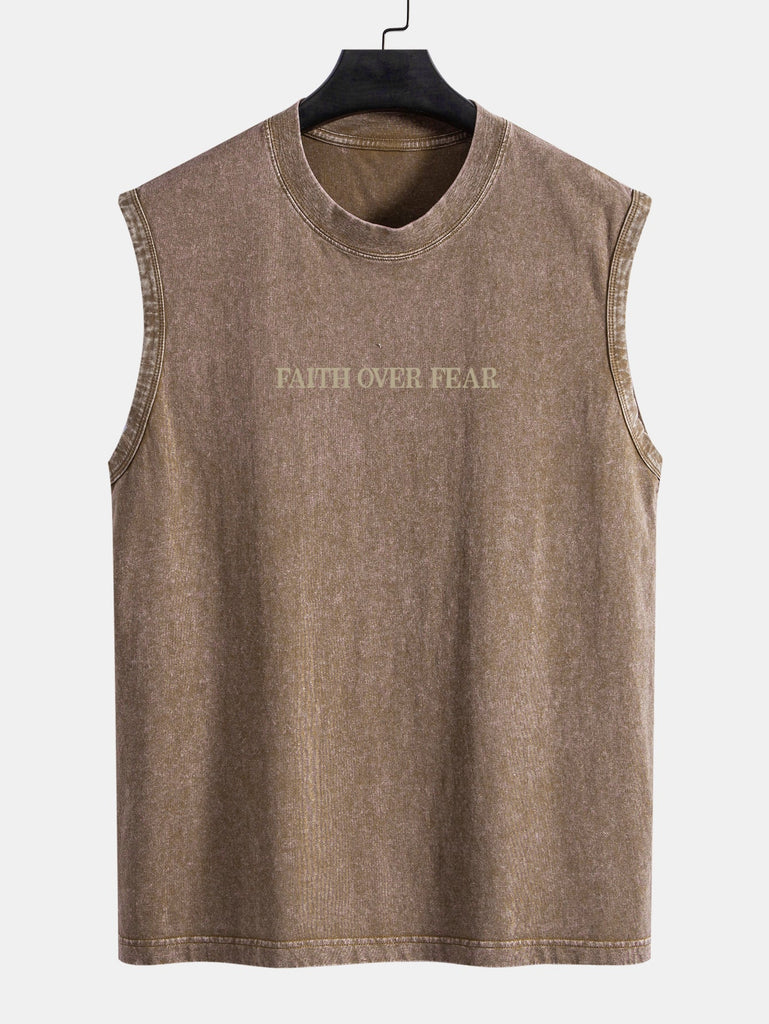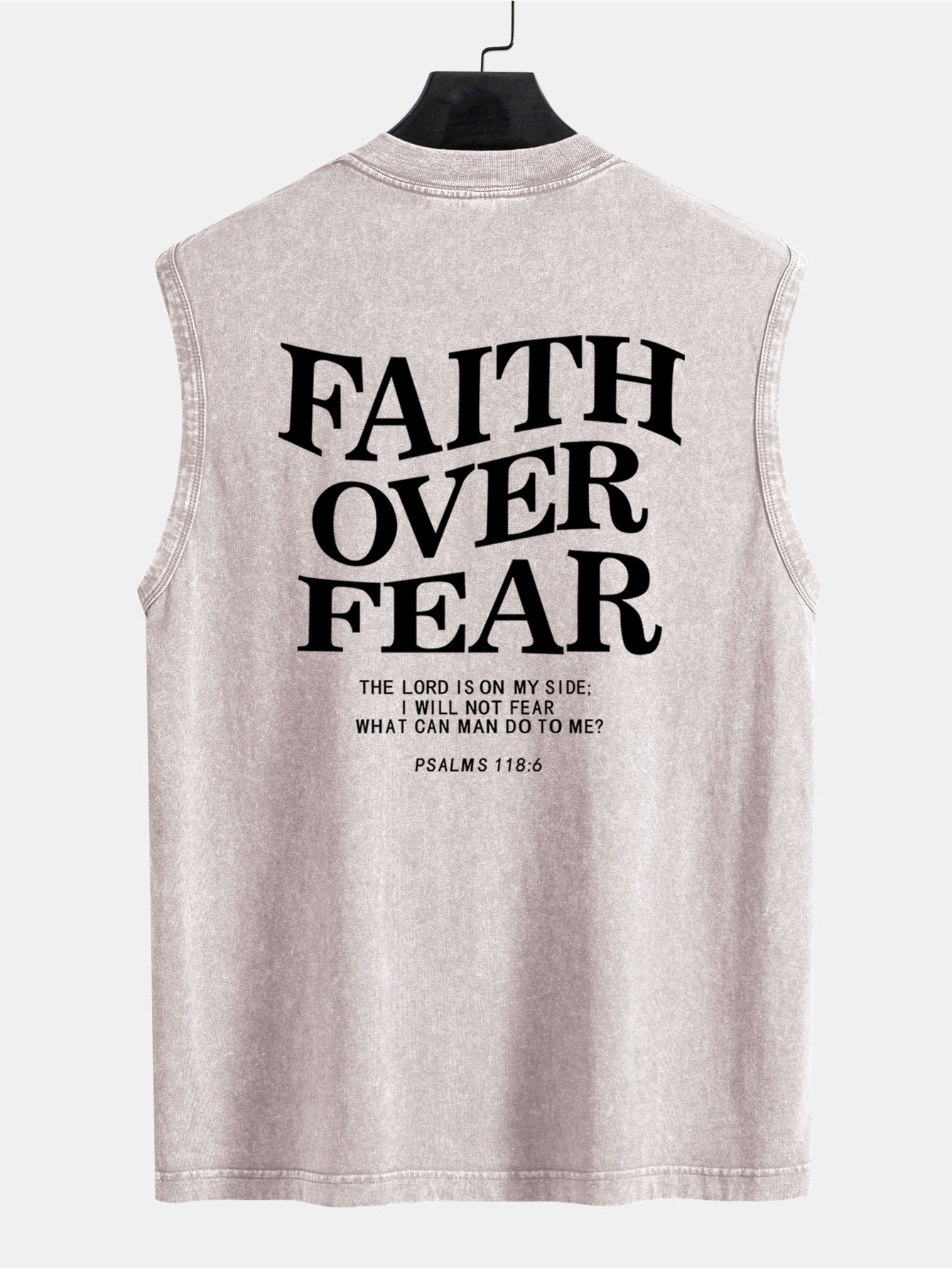 Faith Over Fear Back Print Washed Distressed Tank Top