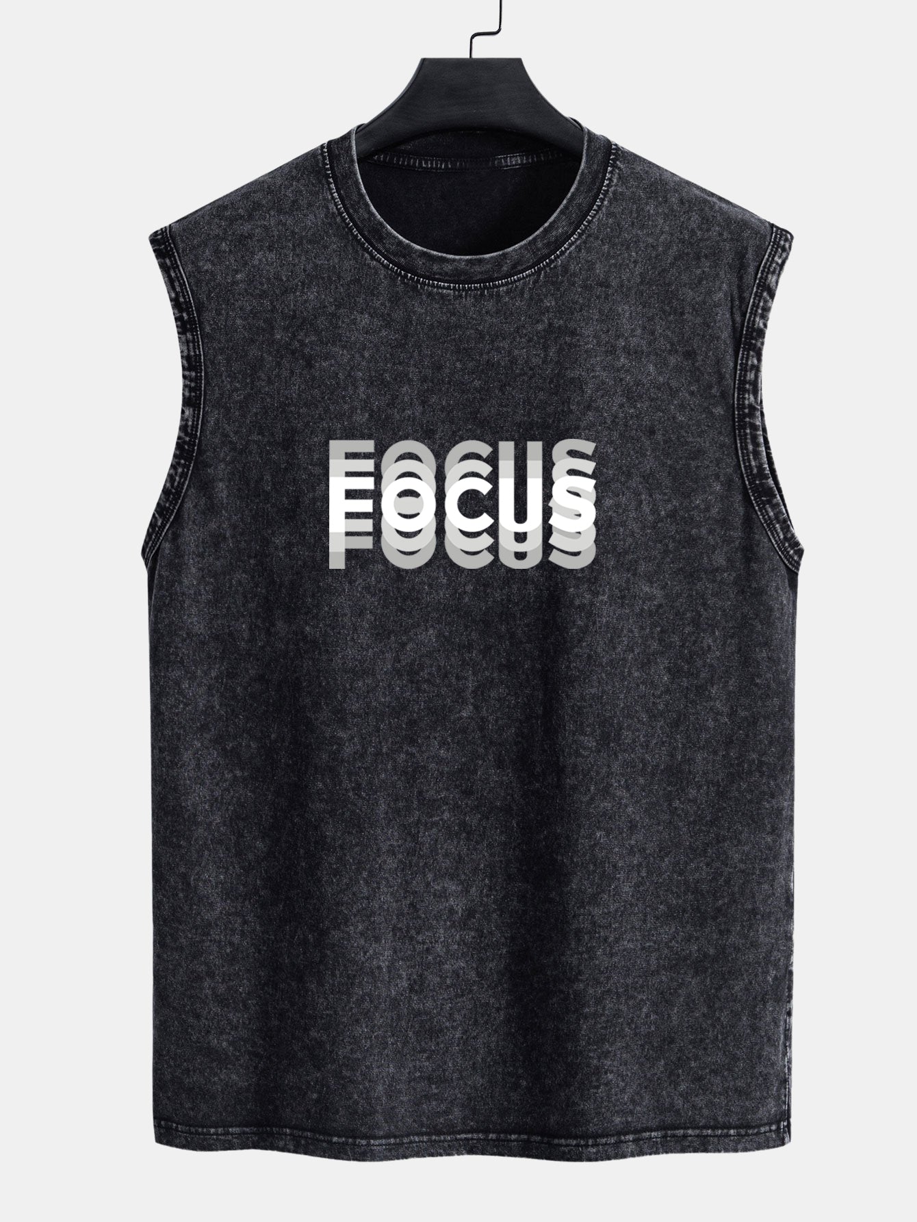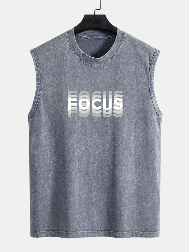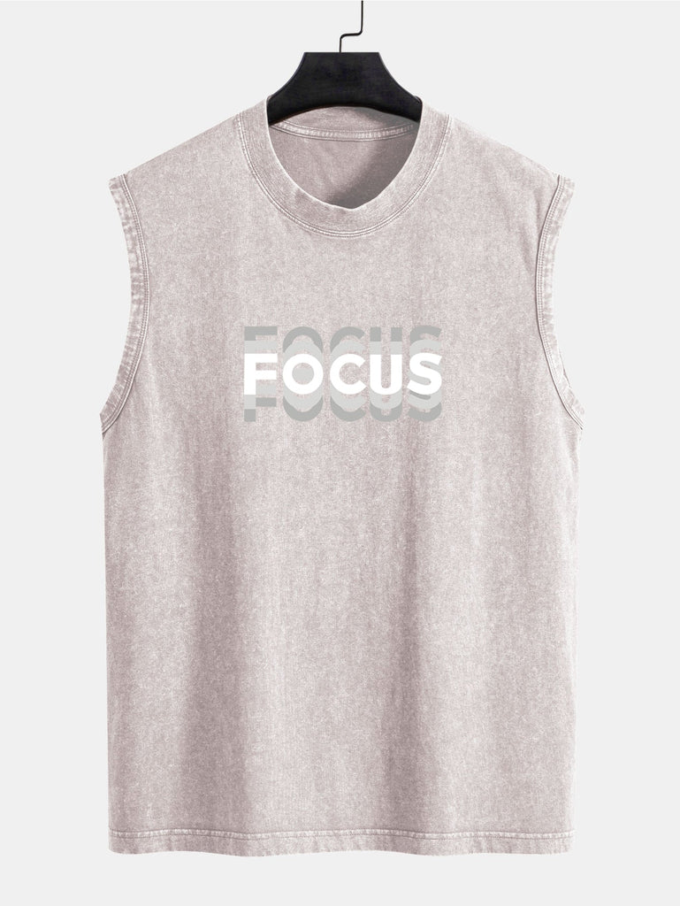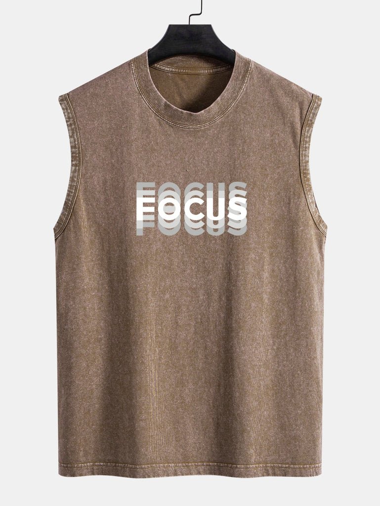 Stay locked in with purpose and style in our focus print washed distressed tank top. Featuring a bold minimalist slogan and a rugged, worn-in wash, this tank blends grit and intention ¡ª perfect for workouts, streetwear, or just sending a quiet message of determination.