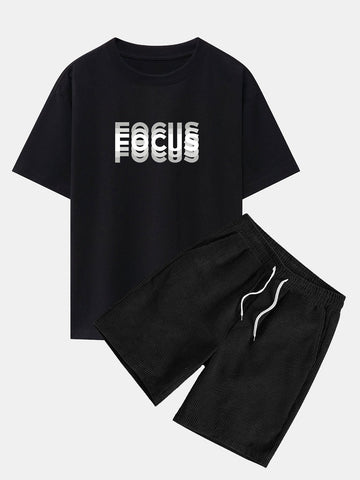 Stay grounded and stylish in this effortlessly cool two-piece set featuring a motivational "Focus" slogan print. Designed for comfort and casual vibes, this set includes a relaxed drop-shoulder tee and ultra-soft corduroy shorts ¨C perfect for off-duty days or laid-back streetwear.