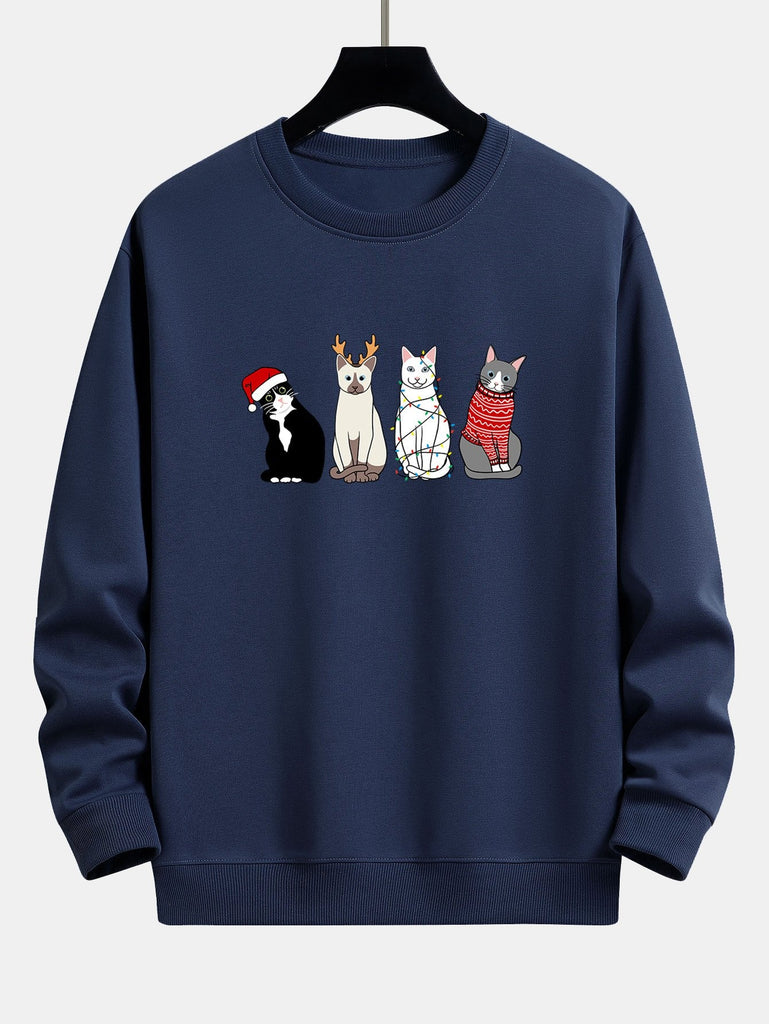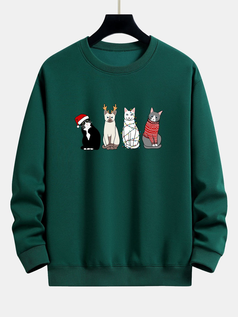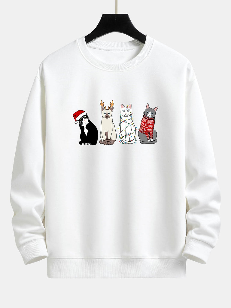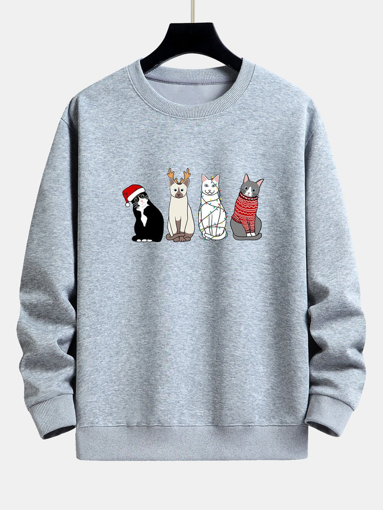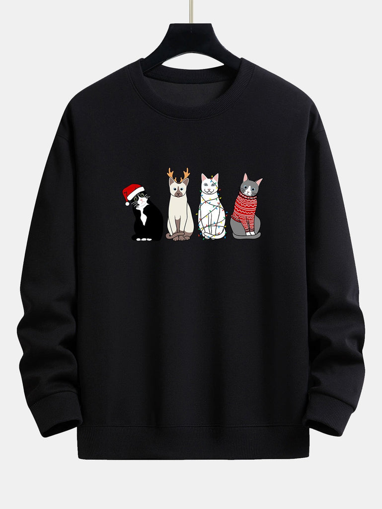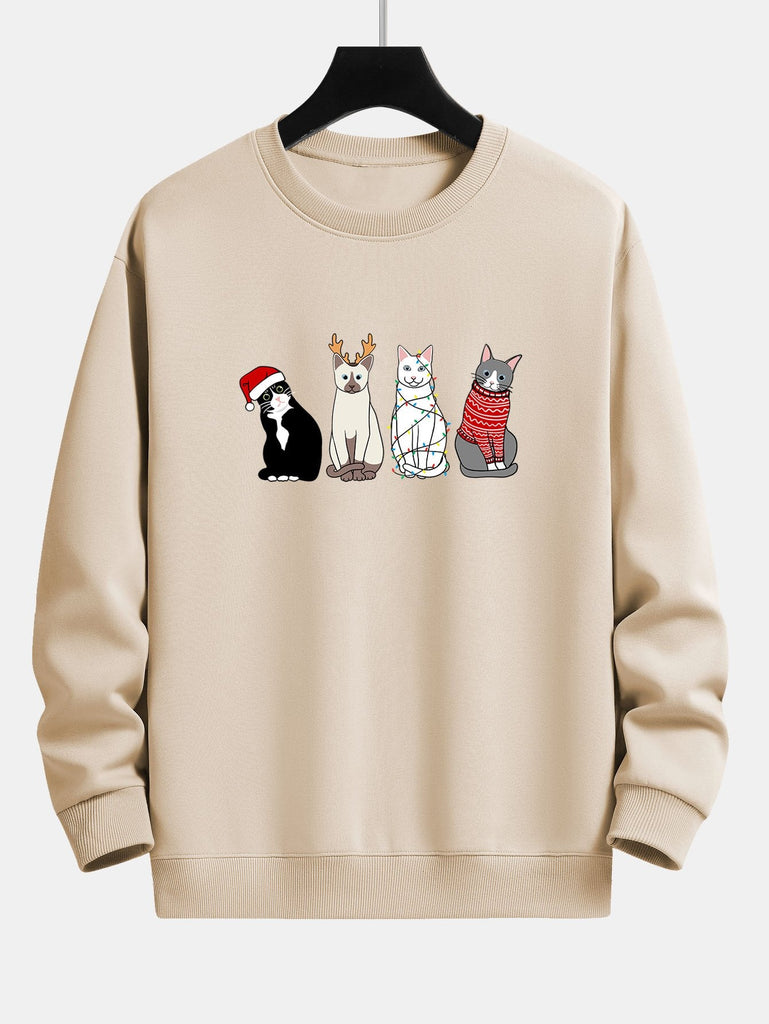 Four Christmas Cats Print Relax Fit Sweatshirt
