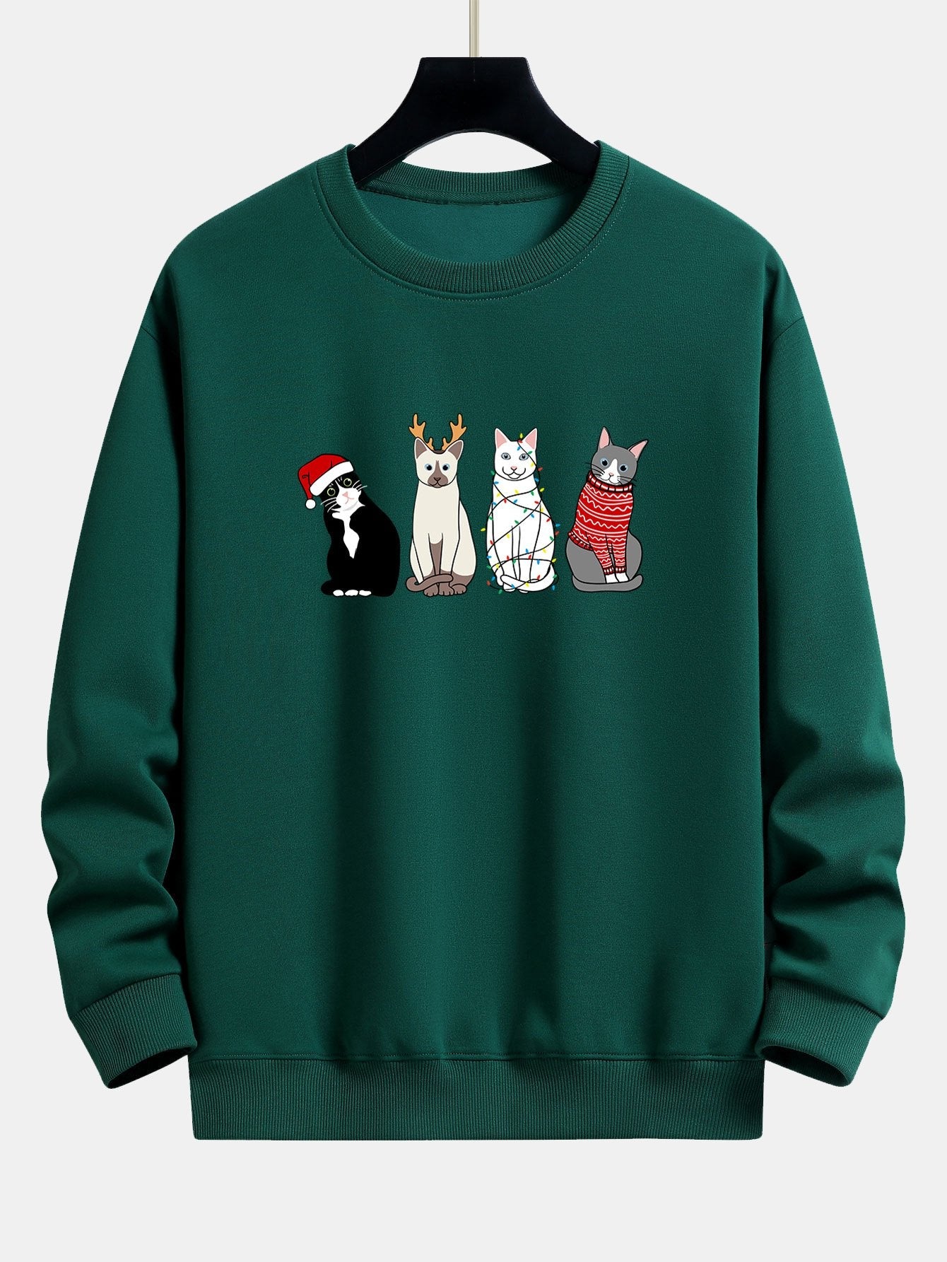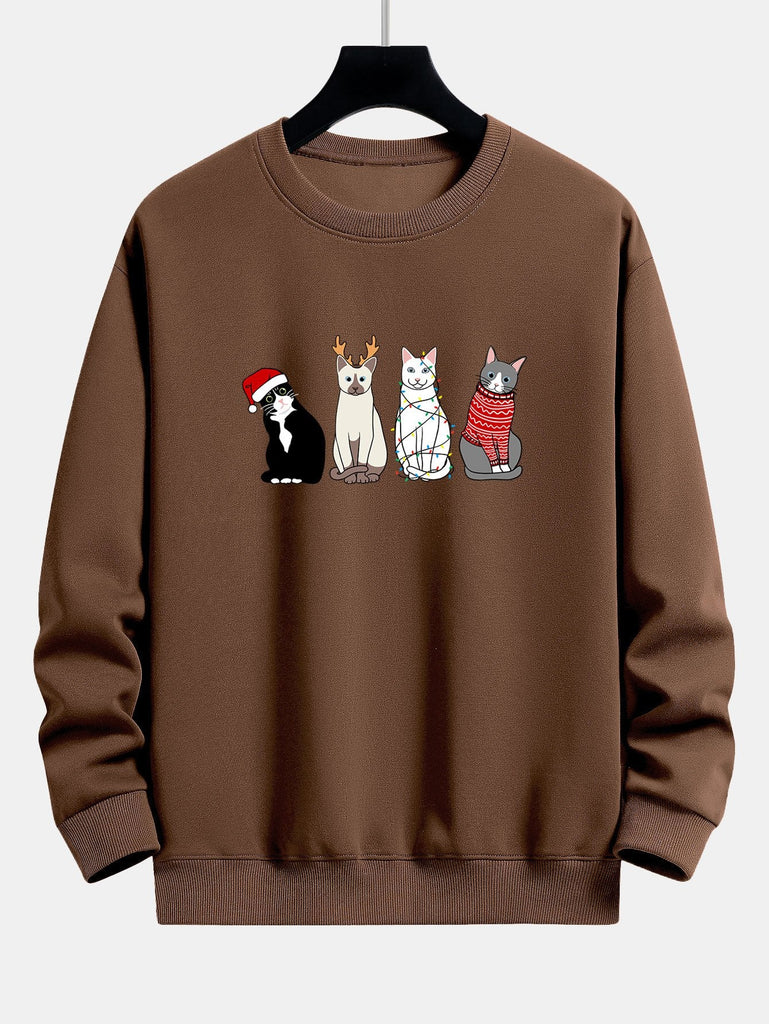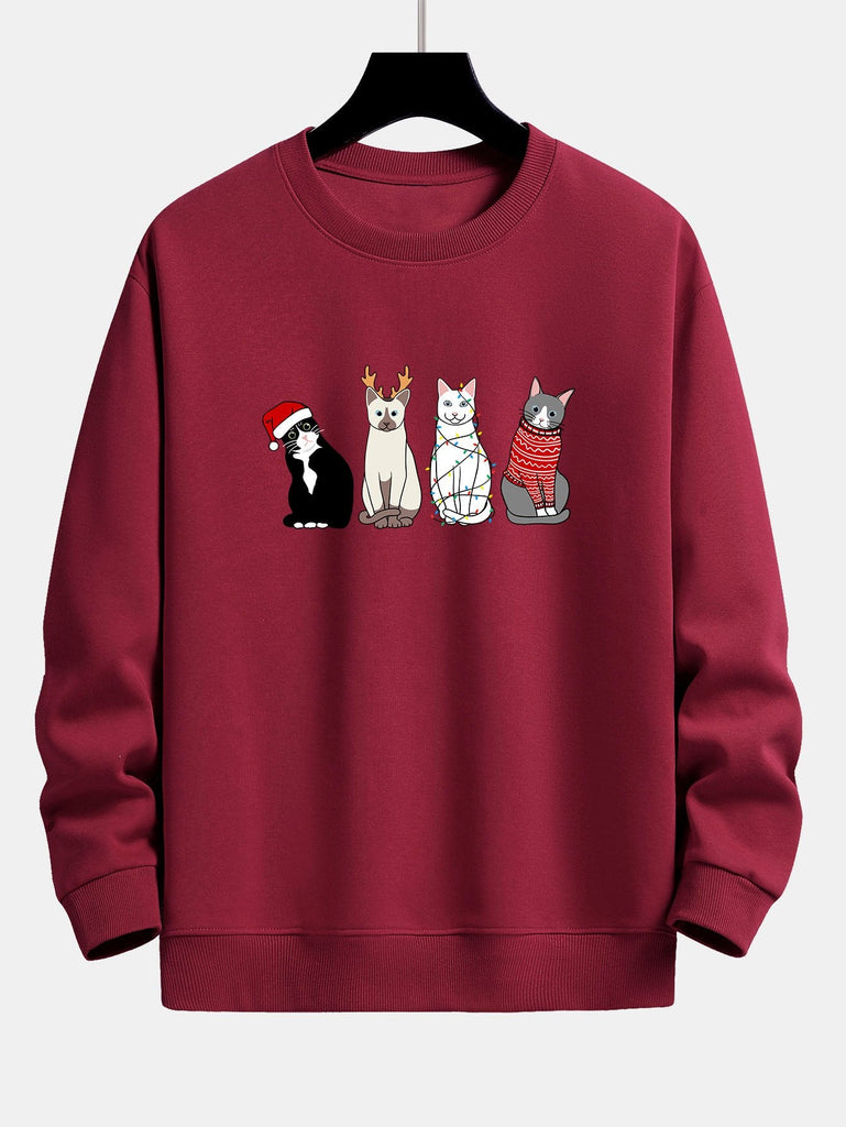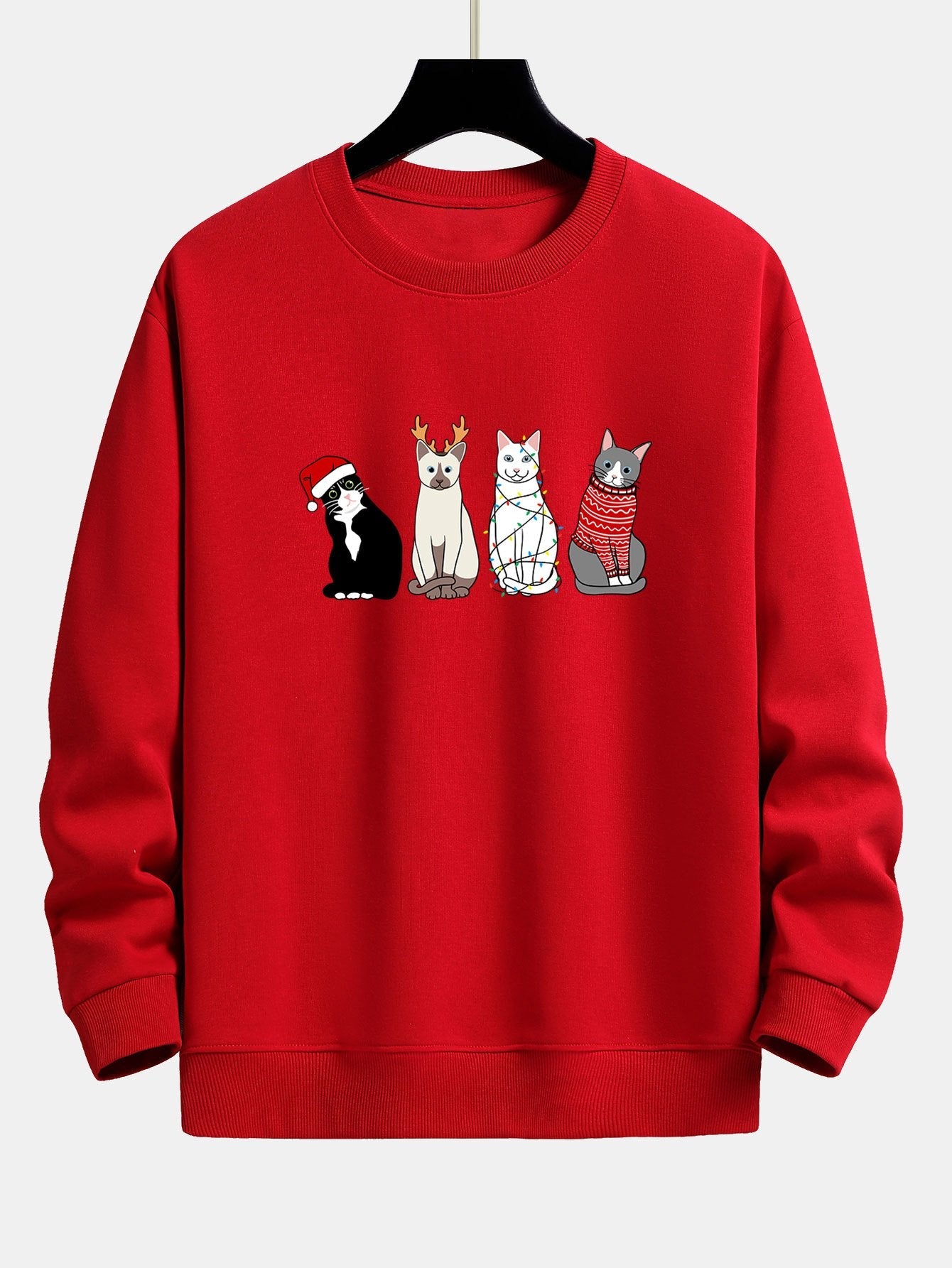 Four Christmas Cats Print Relax Fit Sweatshirt