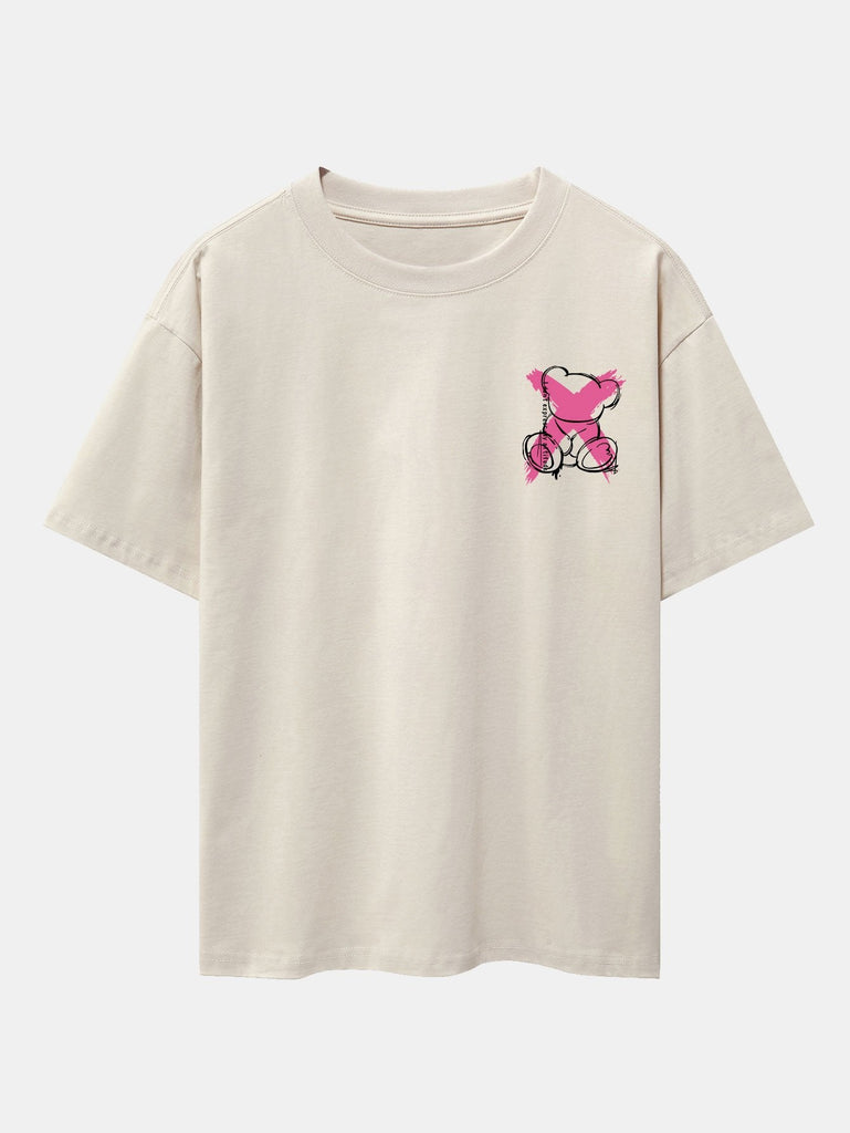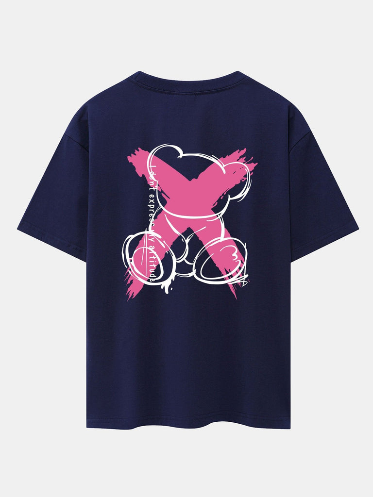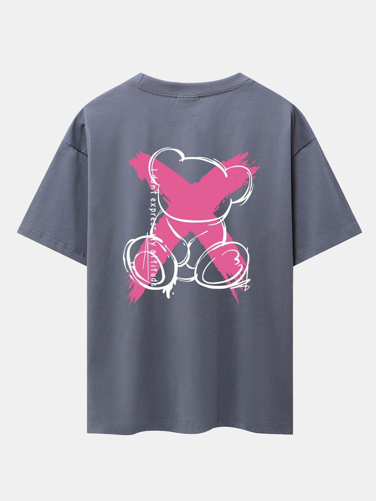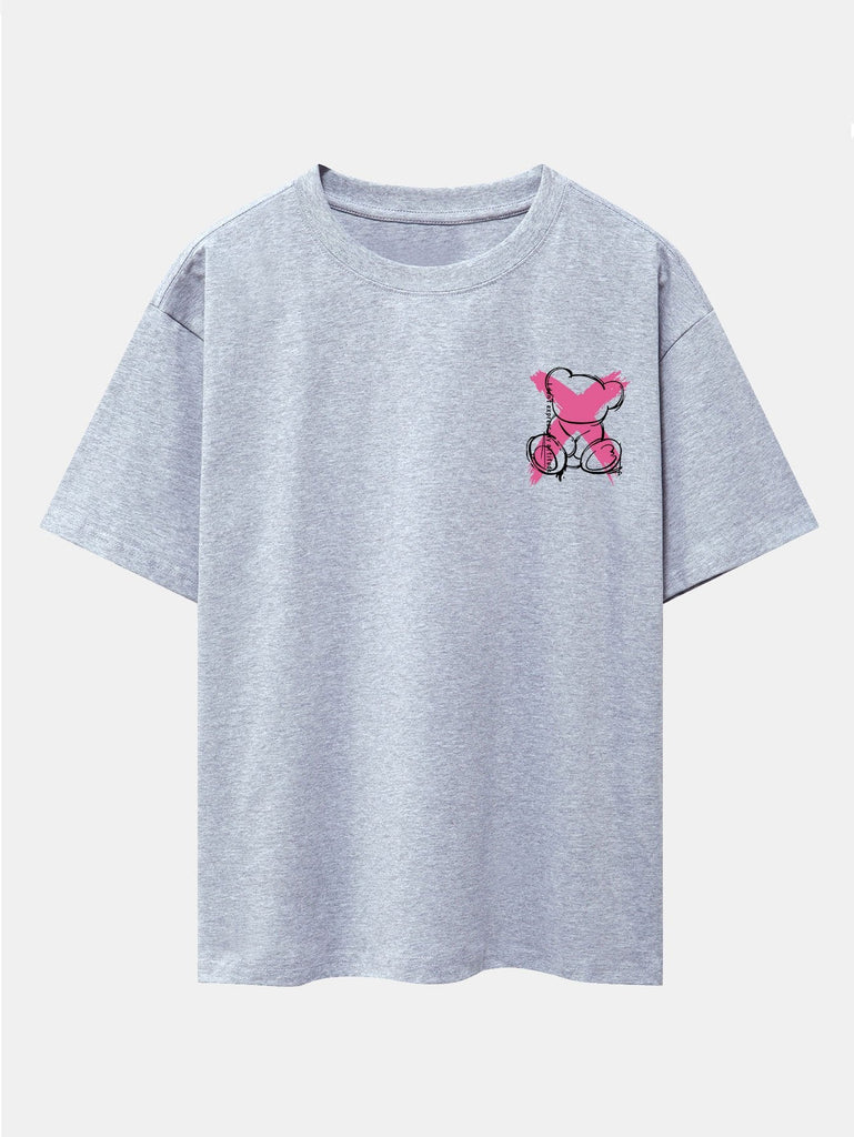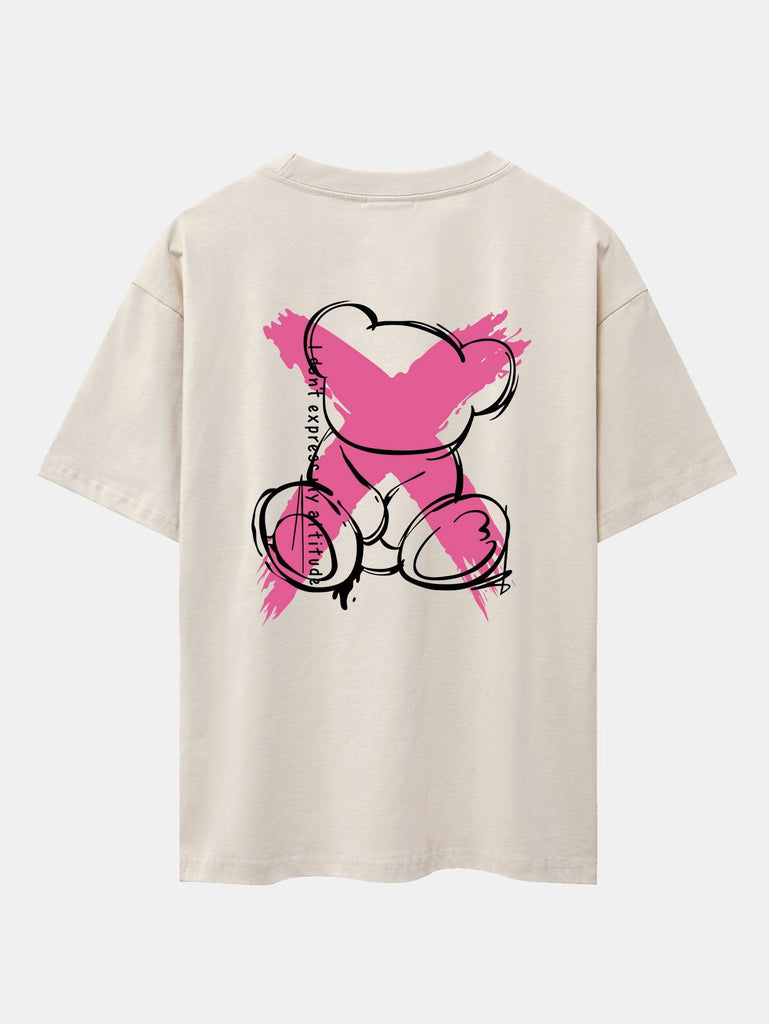 Graffiti Bear Print Drop Shoulder Oversize T-Shirt