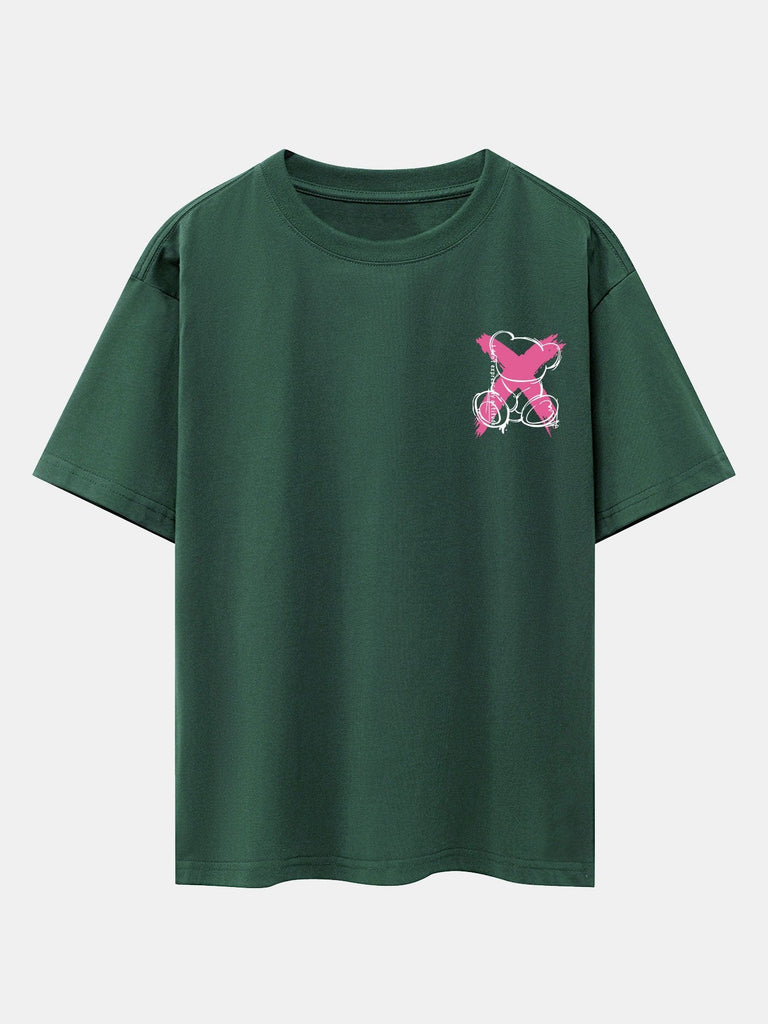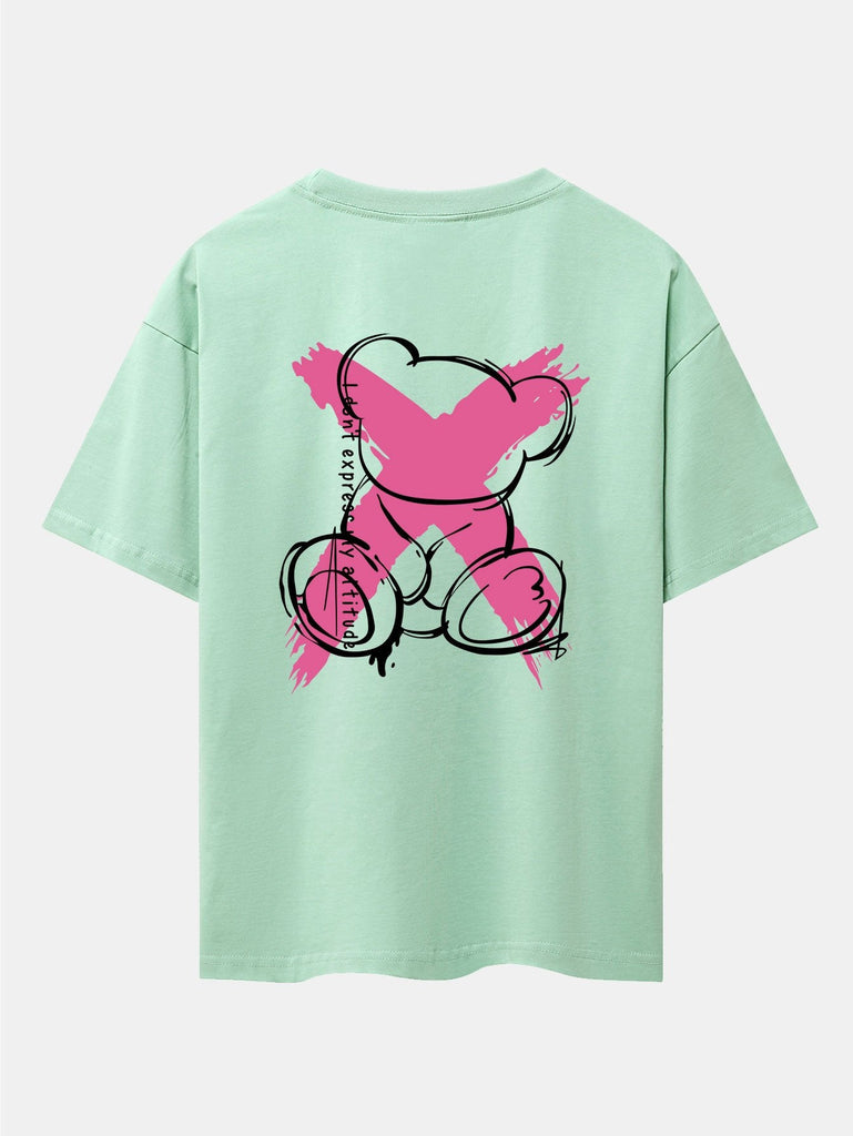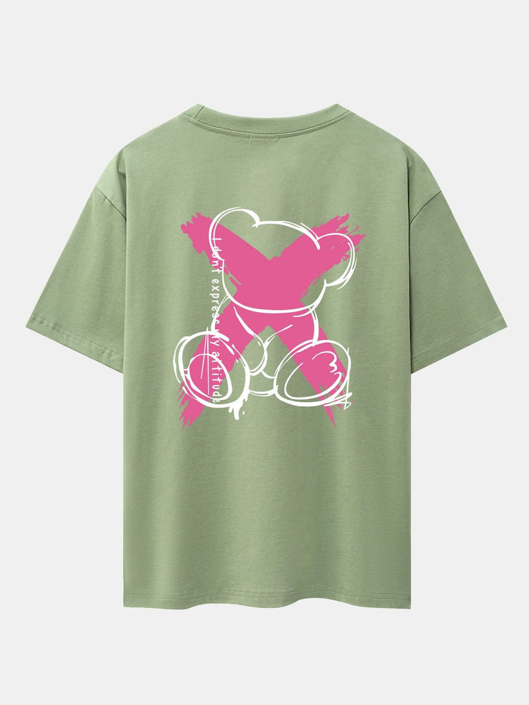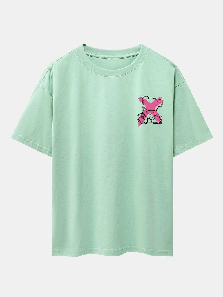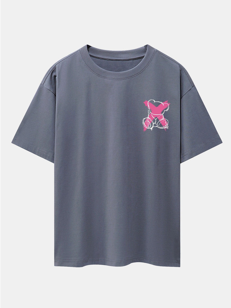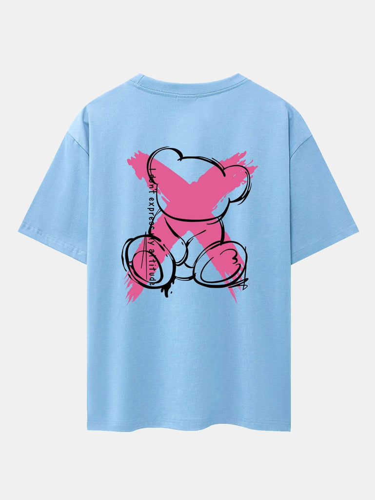Graffiti Bear Print Drop Shoulder Oversize T-Shirt