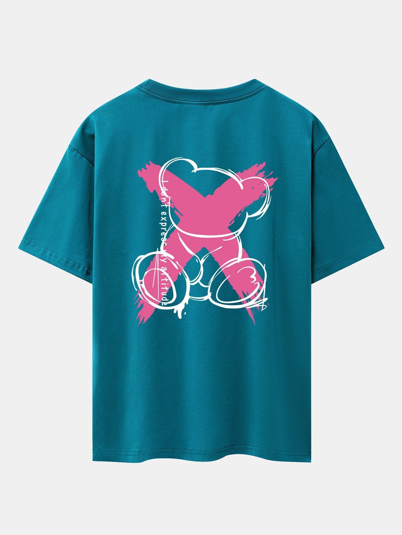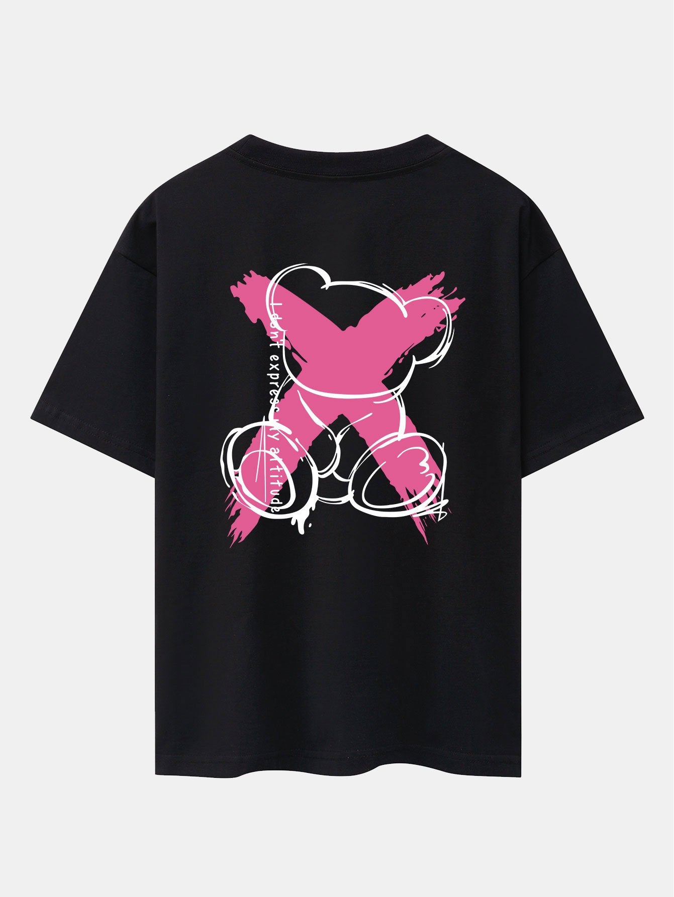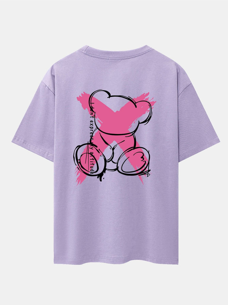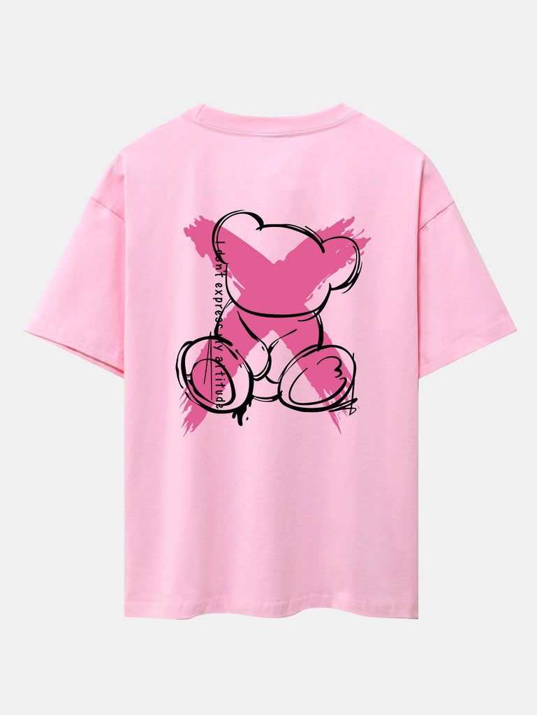 Graffiti Bear Print Drop Shoulder Oversize T-Shirt