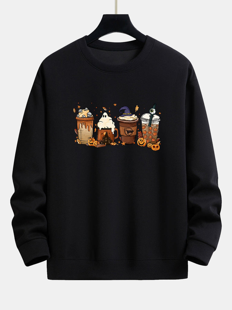 Halloween Coffee Print Relax Fit Sweatshirt