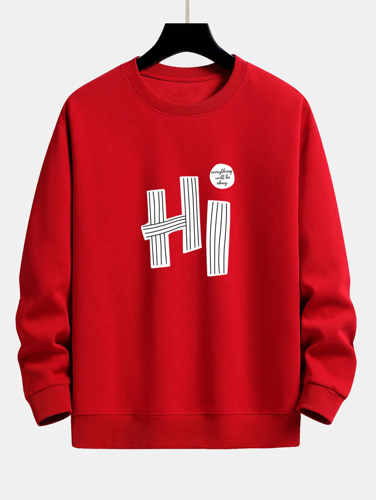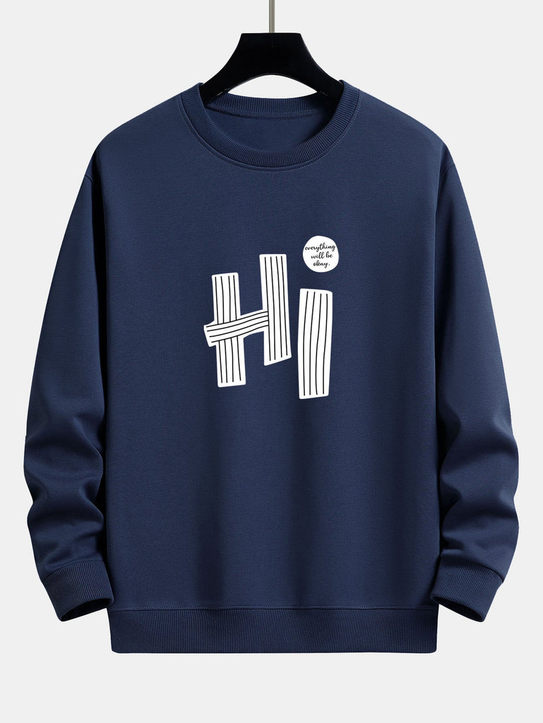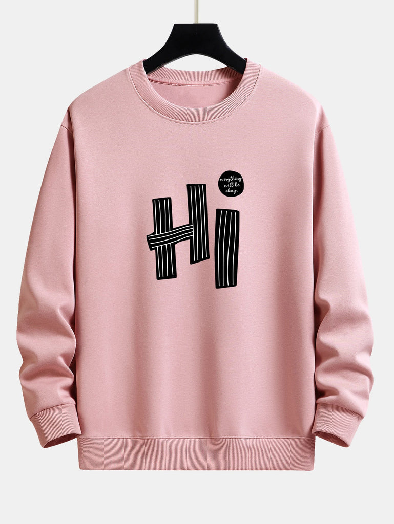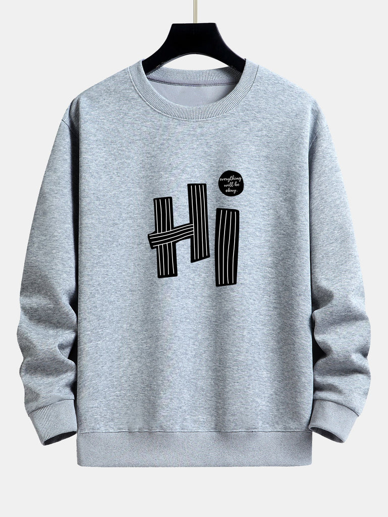 Hi Slogan Lines Print Relax Fit Sweatshirt