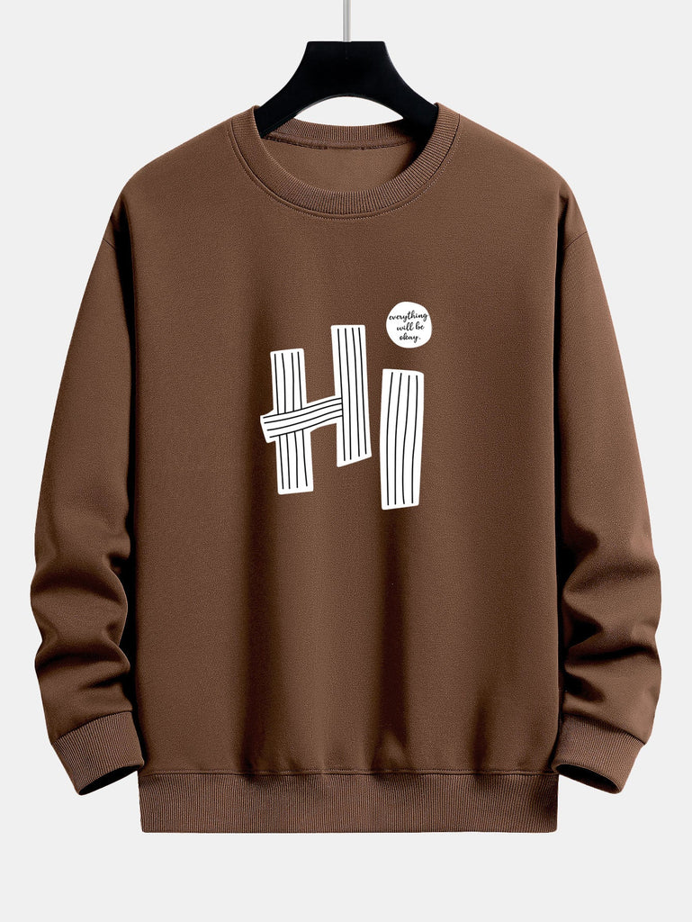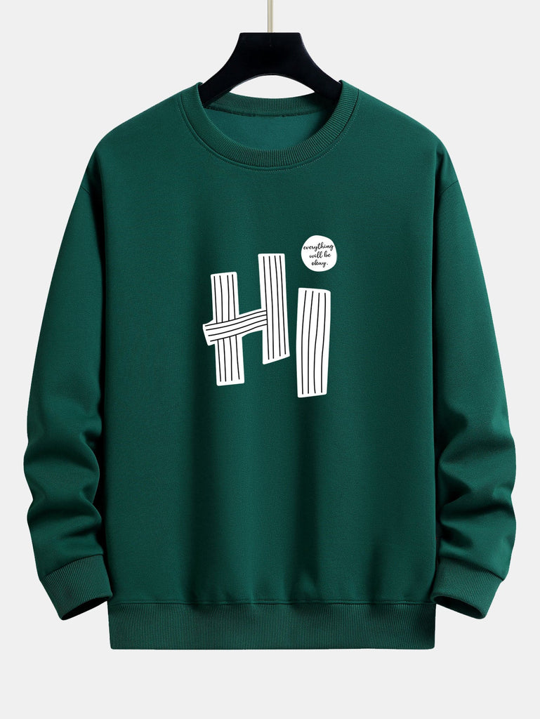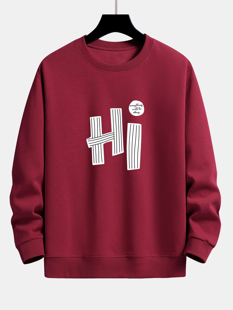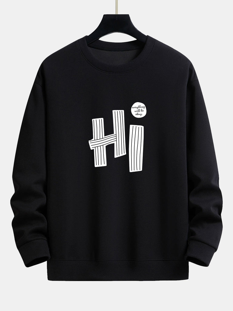Hi Slogan Lines Print Relax Fit Sweatshirt