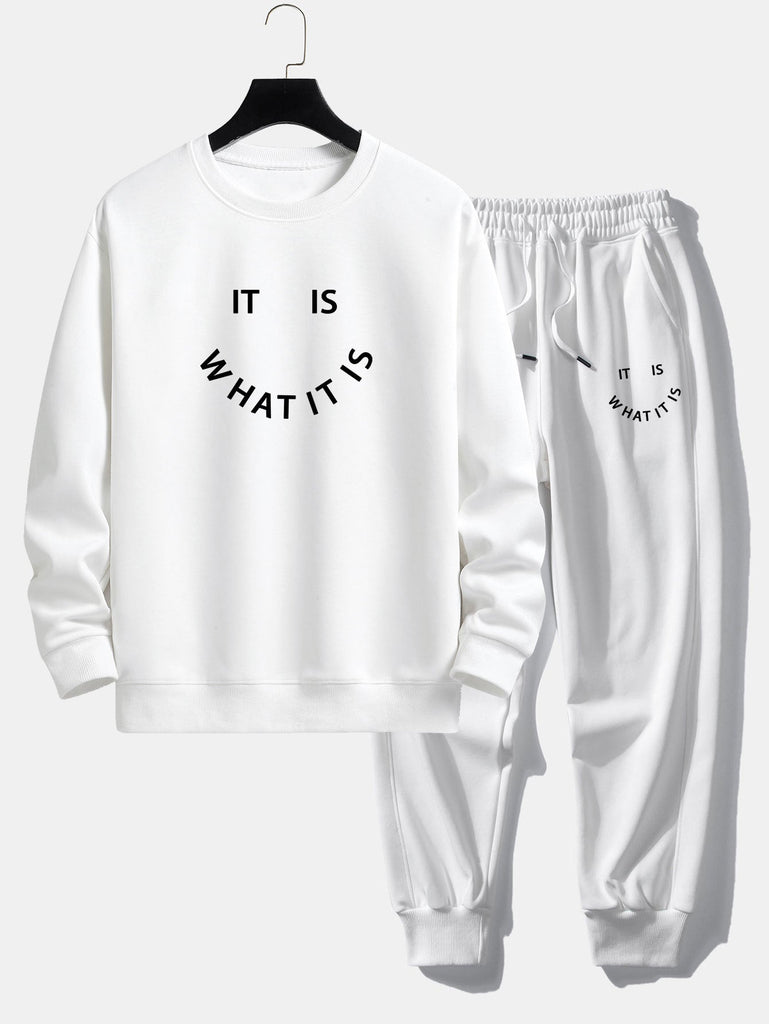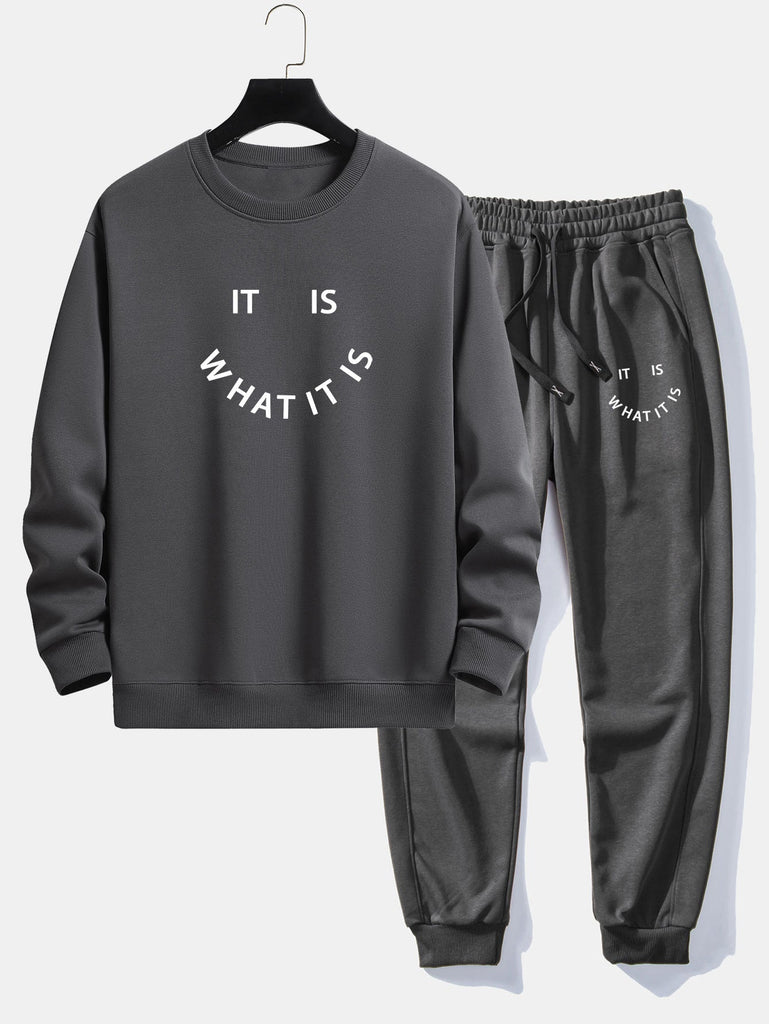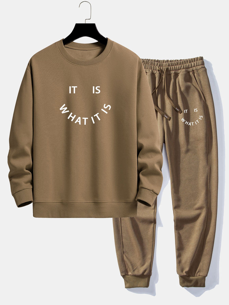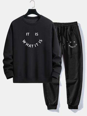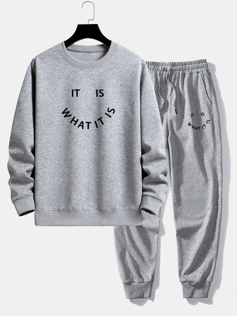 It Is What It Is Print Relax Fit Crew Neck Sweatshirt & Jogging Pants