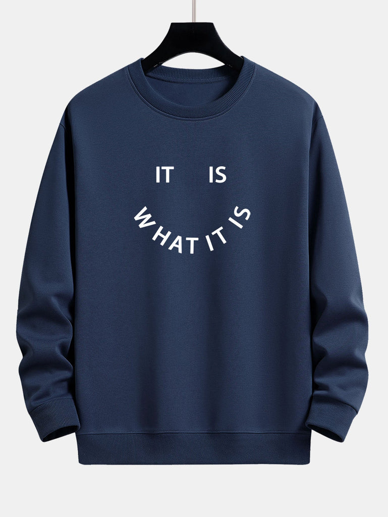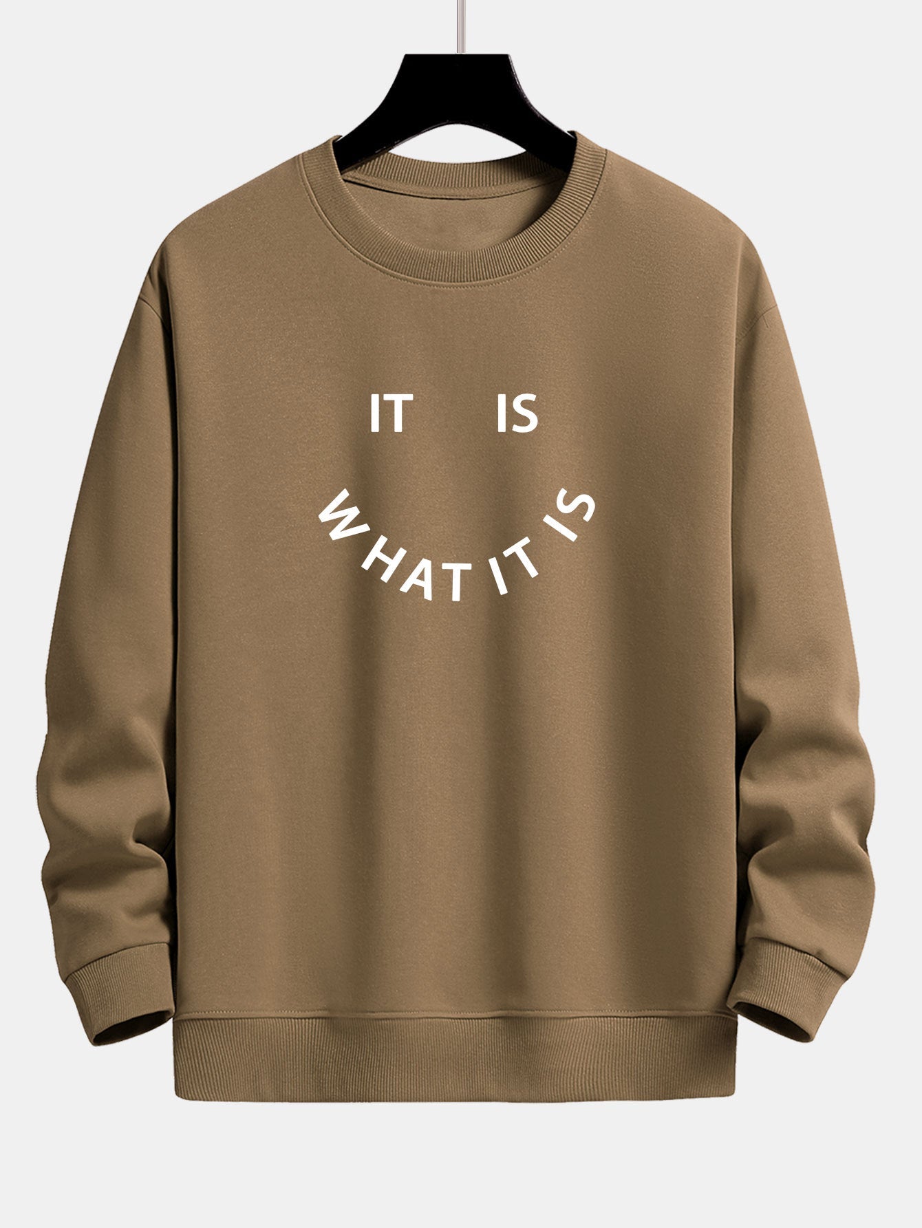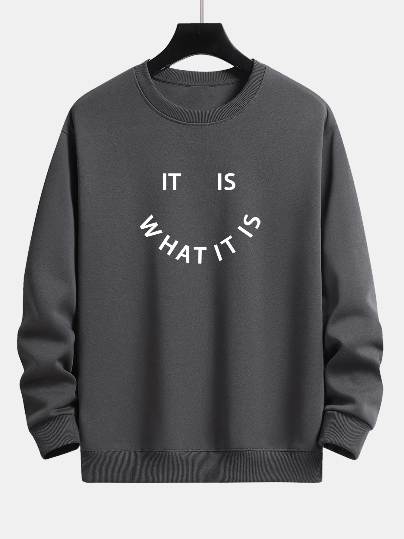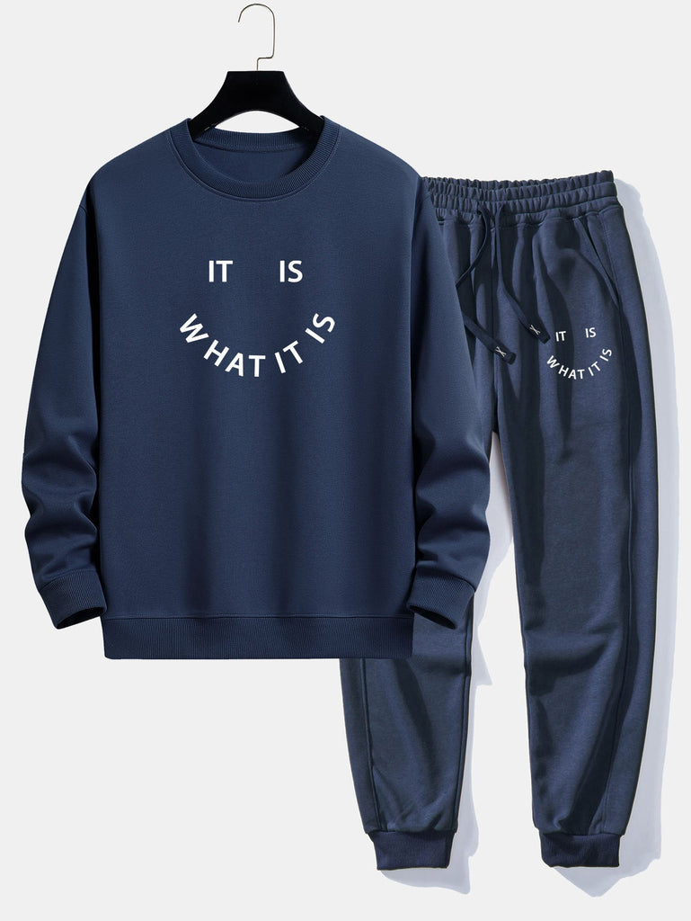 It Is What It Is Print Relax Fit Crew Neck Sweatshirt & Jogging Pants
