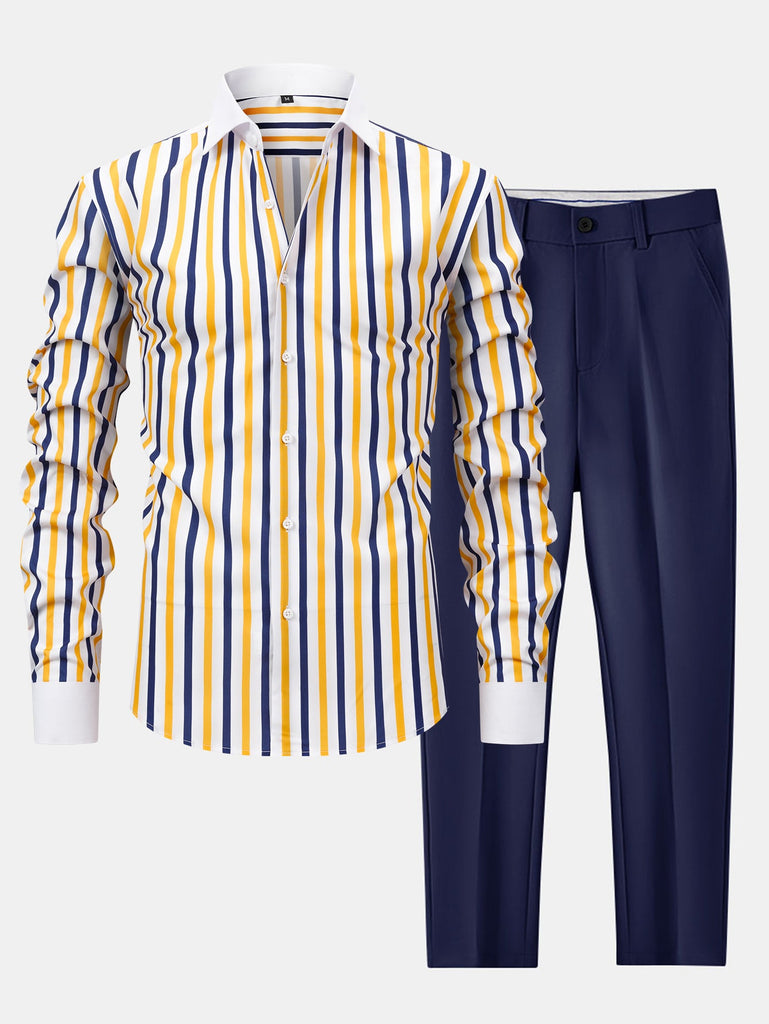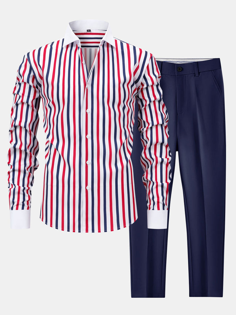 Long Sleeve Stripe Button Up Winchester Shirt & Slim Fit Tapered Trousers