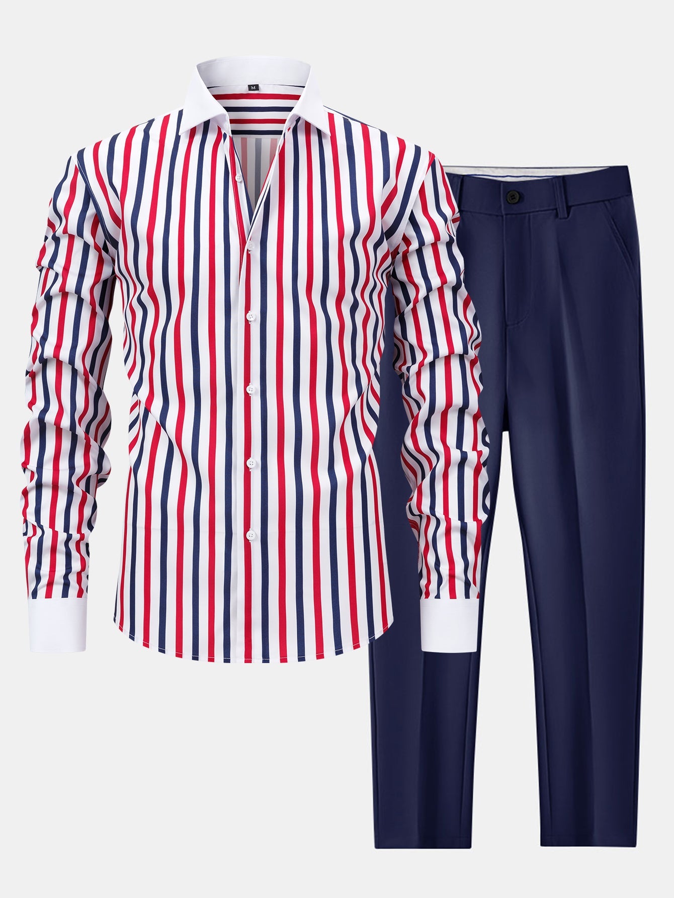 Step into refined everyday style with this smart two-piece set featuring a long sleeve striped button-up shirt and slim fit tapered trousers. Designed for the modern wardrobe, this combo blends crisp tailoring with comfort¡ªperfect for both workdays and elevated casual outings.