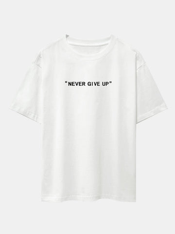 Never Give Up Print Drop Shoulder Oversize T-Shirt