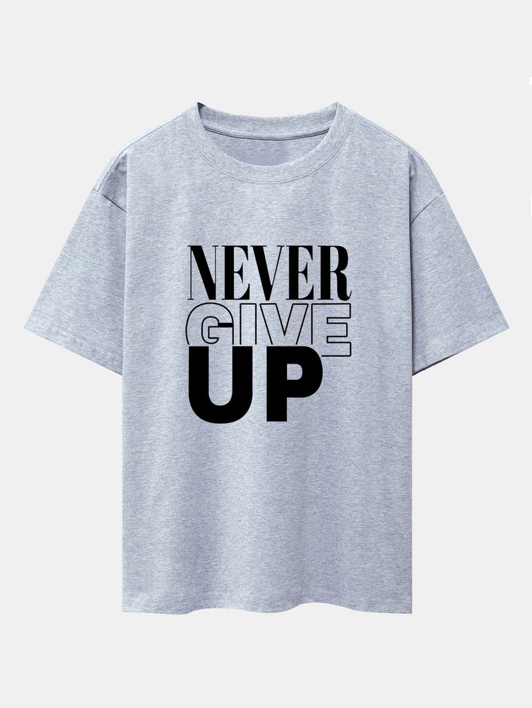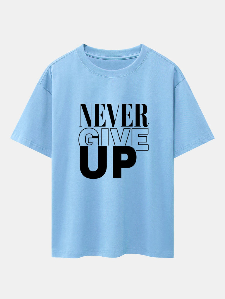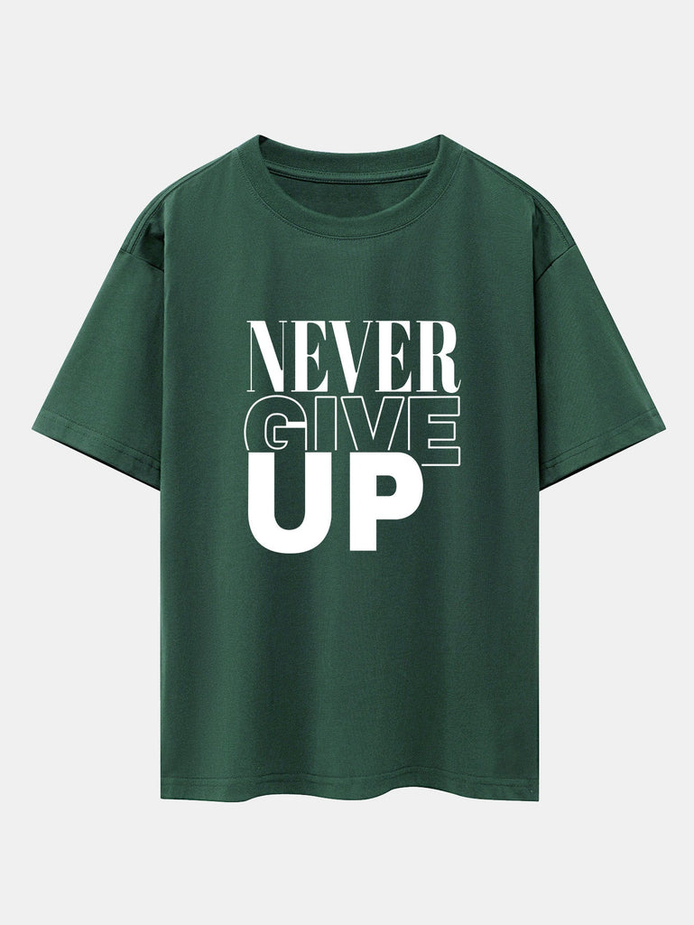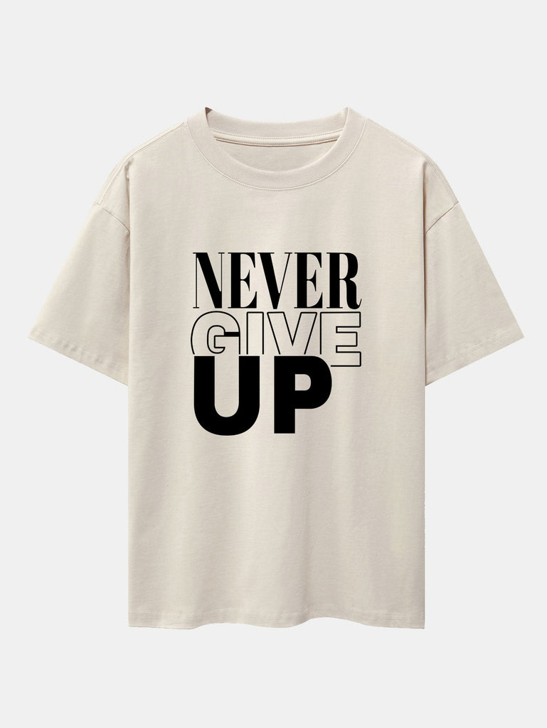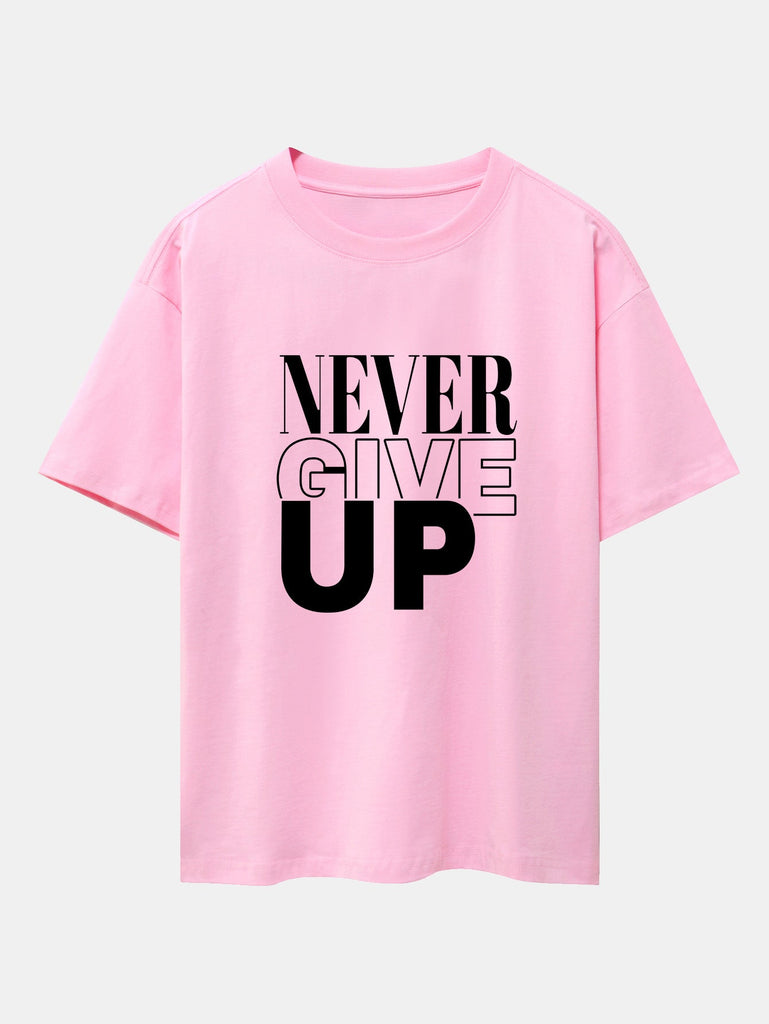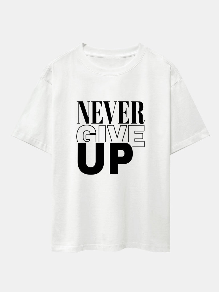Never Give Up Print Drop Shoulder Oversize T-Shirt