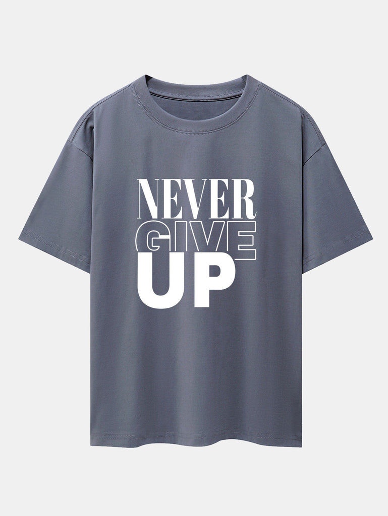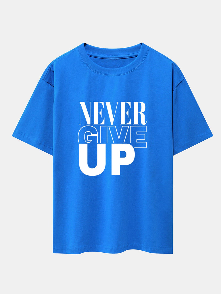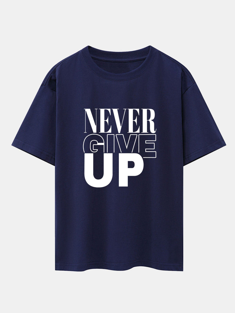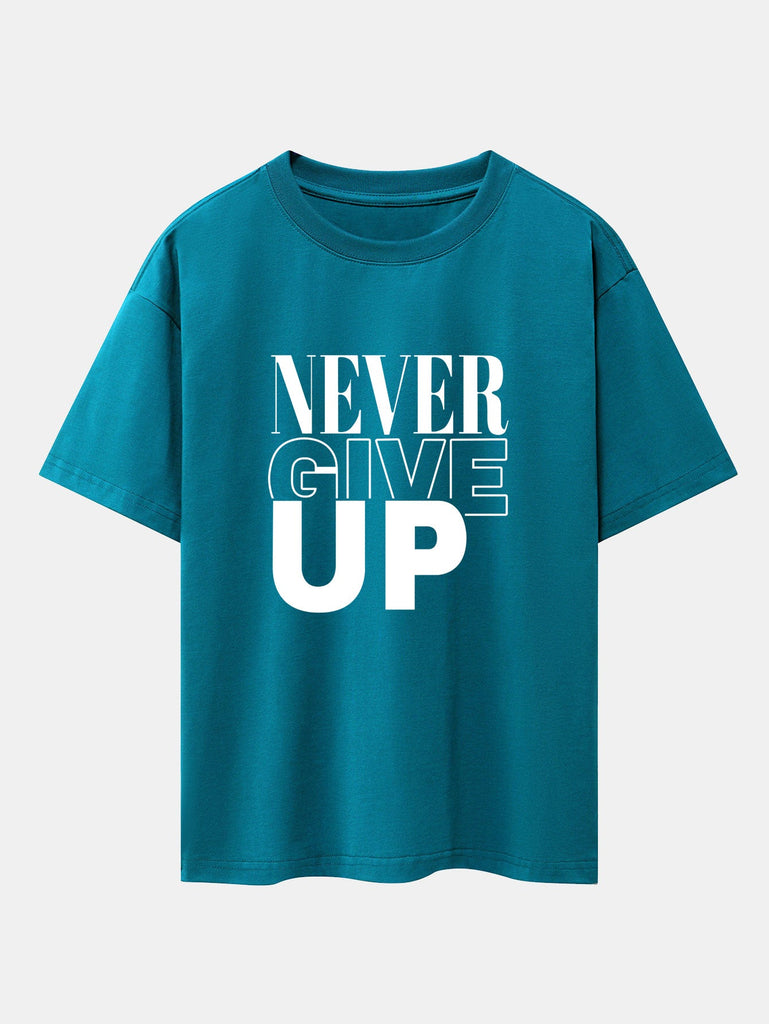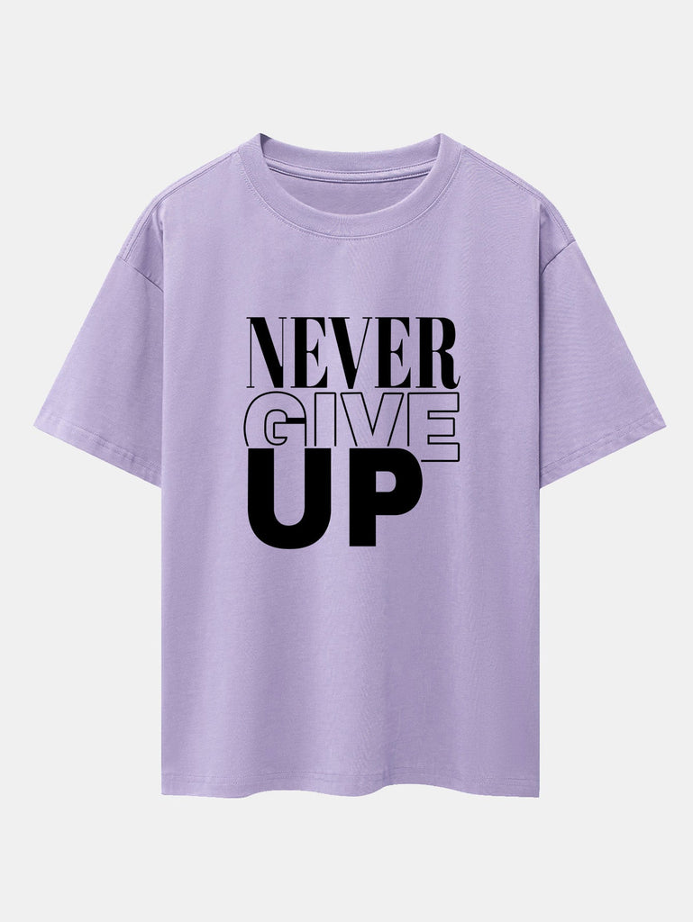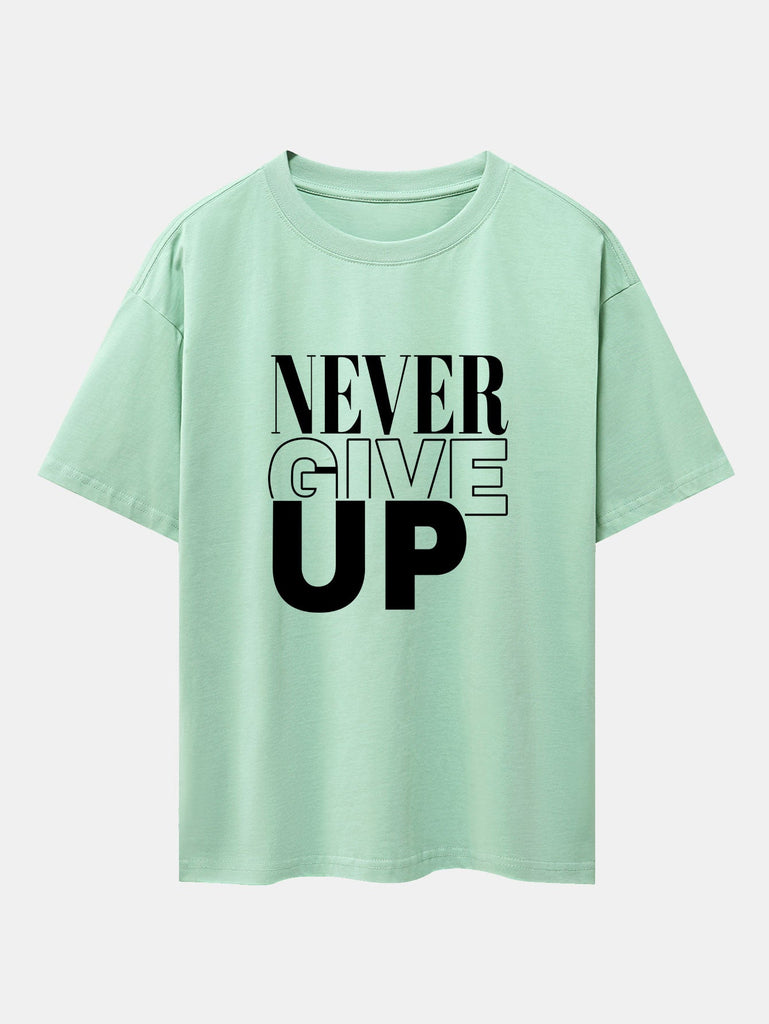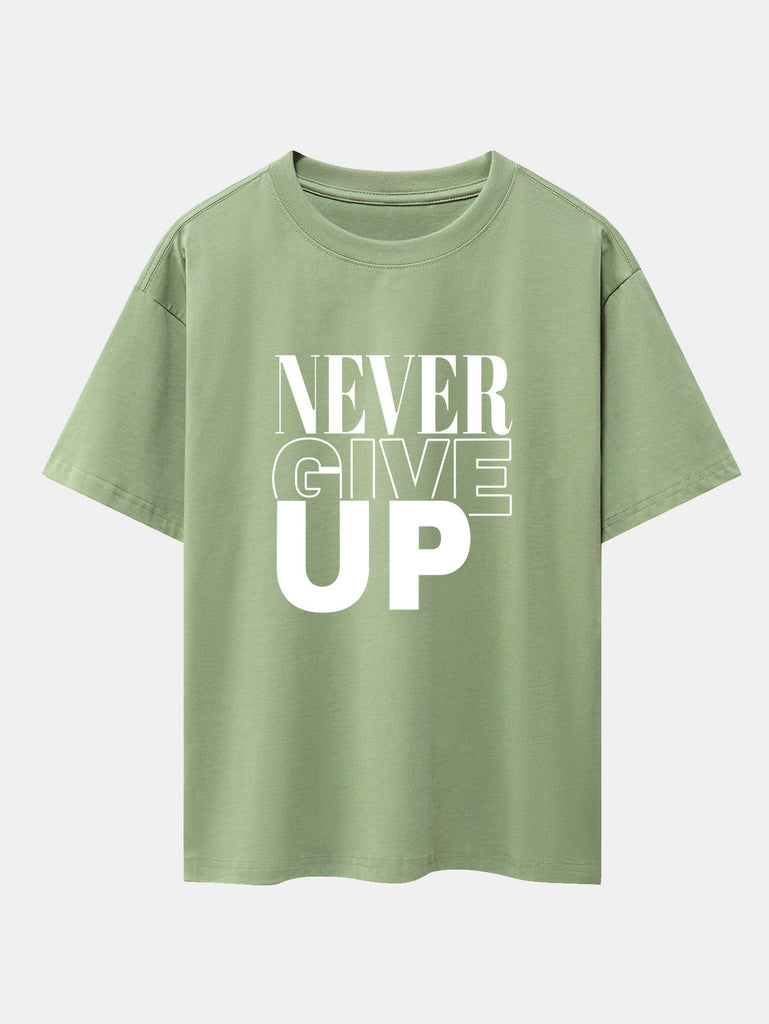 Never Give Up Print Drop Shoulder Oversize T-Shirt