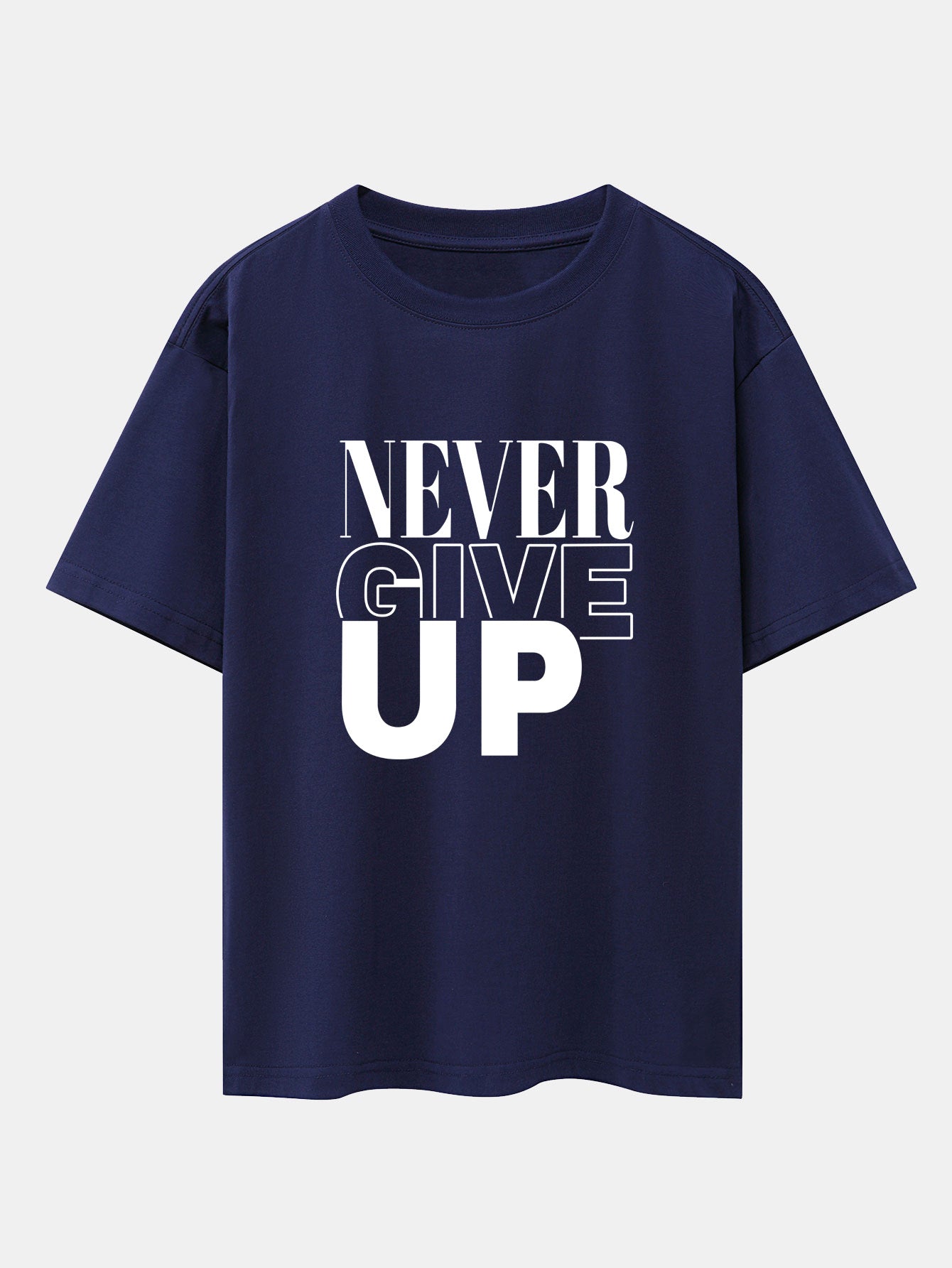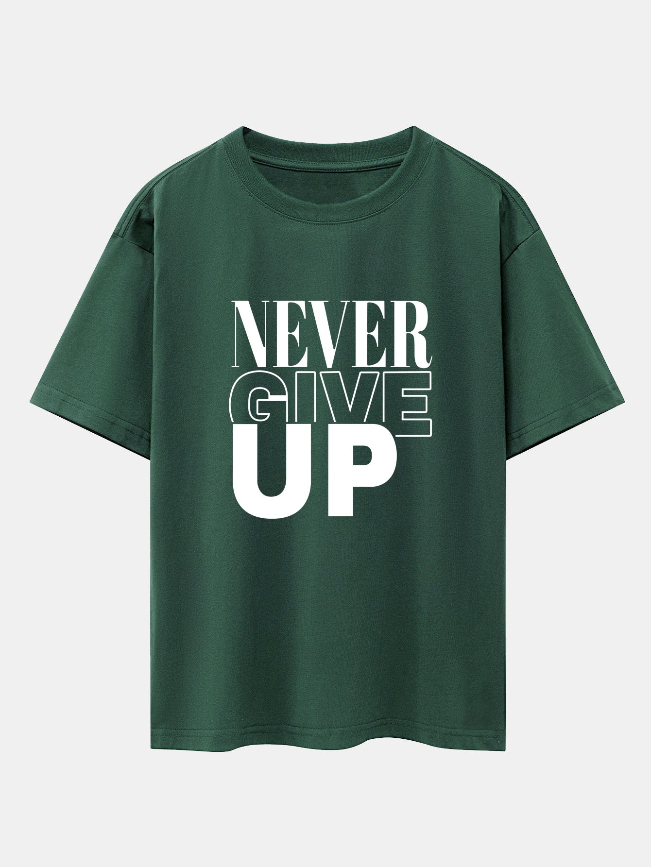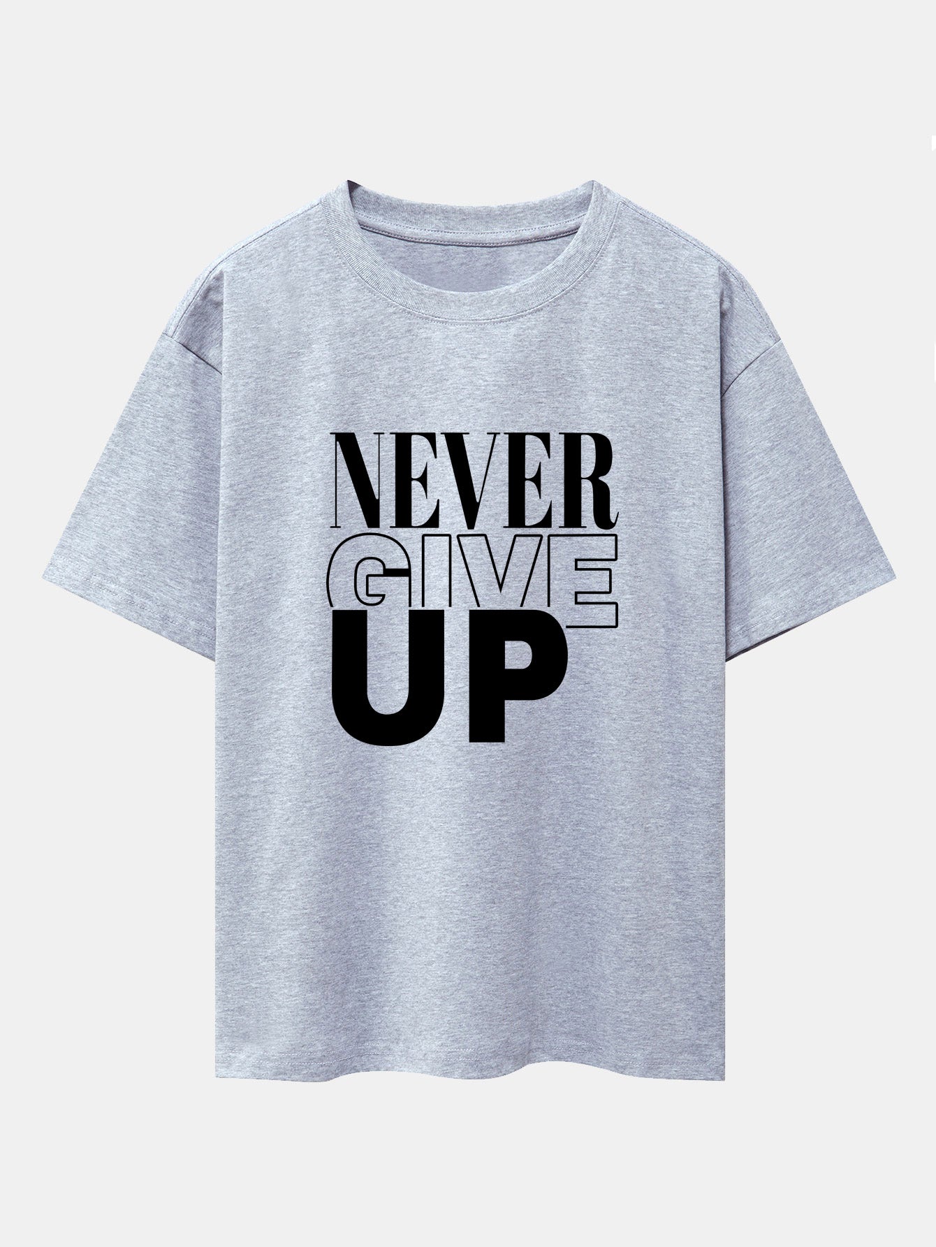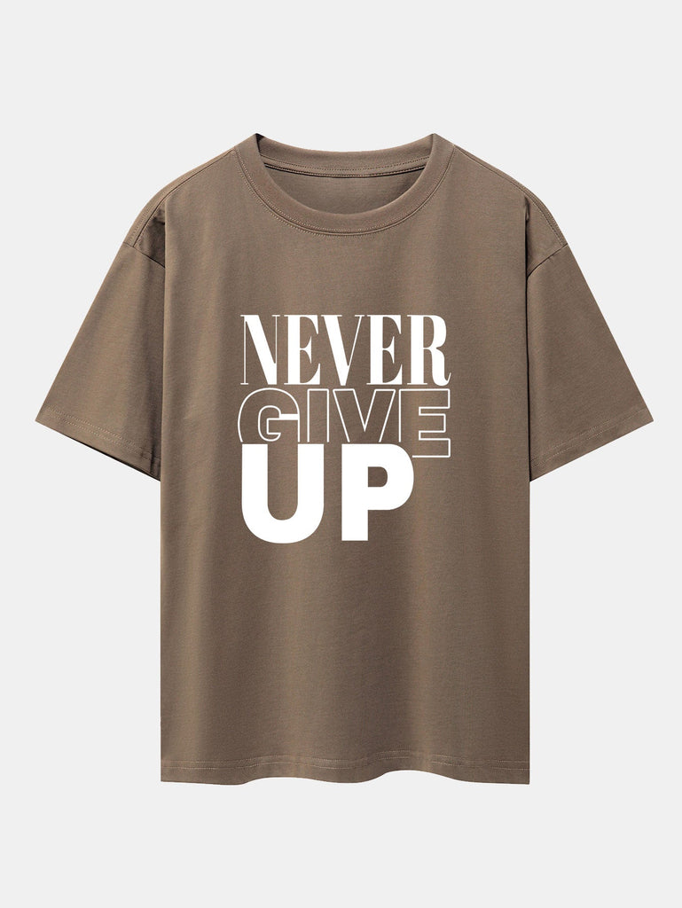 Push boundaries and power through your day with the never give up print drop shoulder oversize T-shirt. Featuring a bold motivational slogan, this tee is perfect for those who live with determination and style. The oversized cut and drop shoulder detail bring a relaxed, effortless vibe that pairs easily with your favorite streetwear looks.