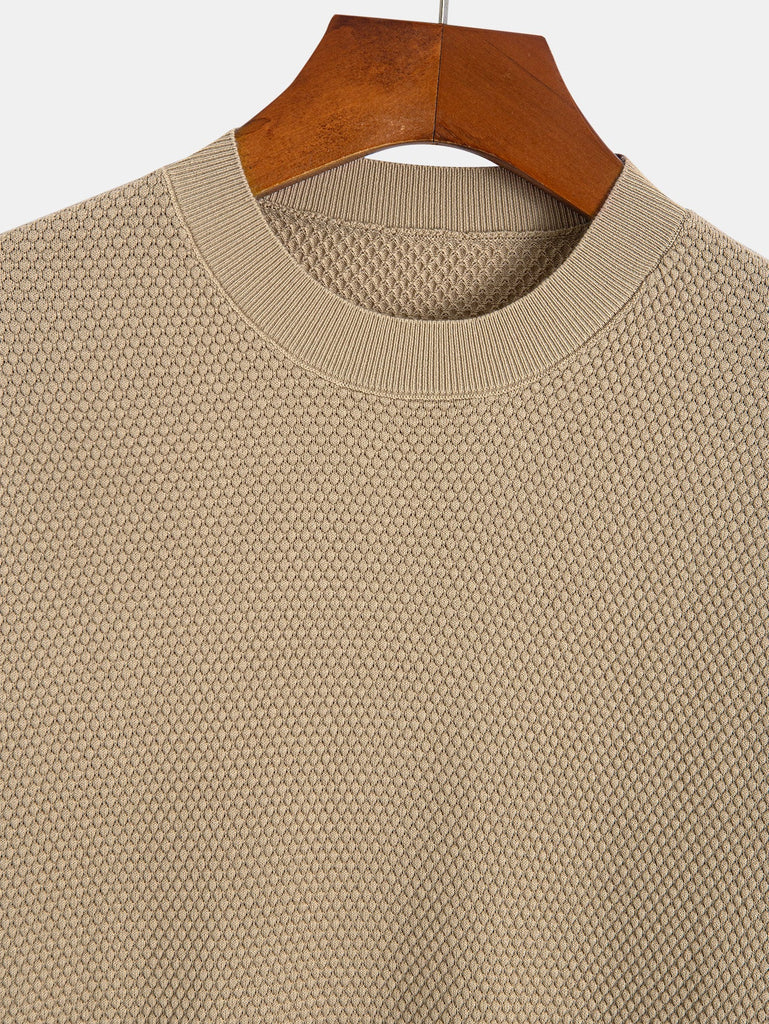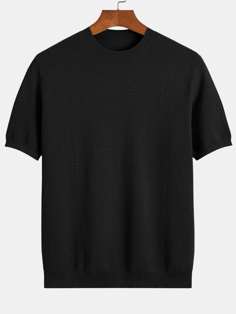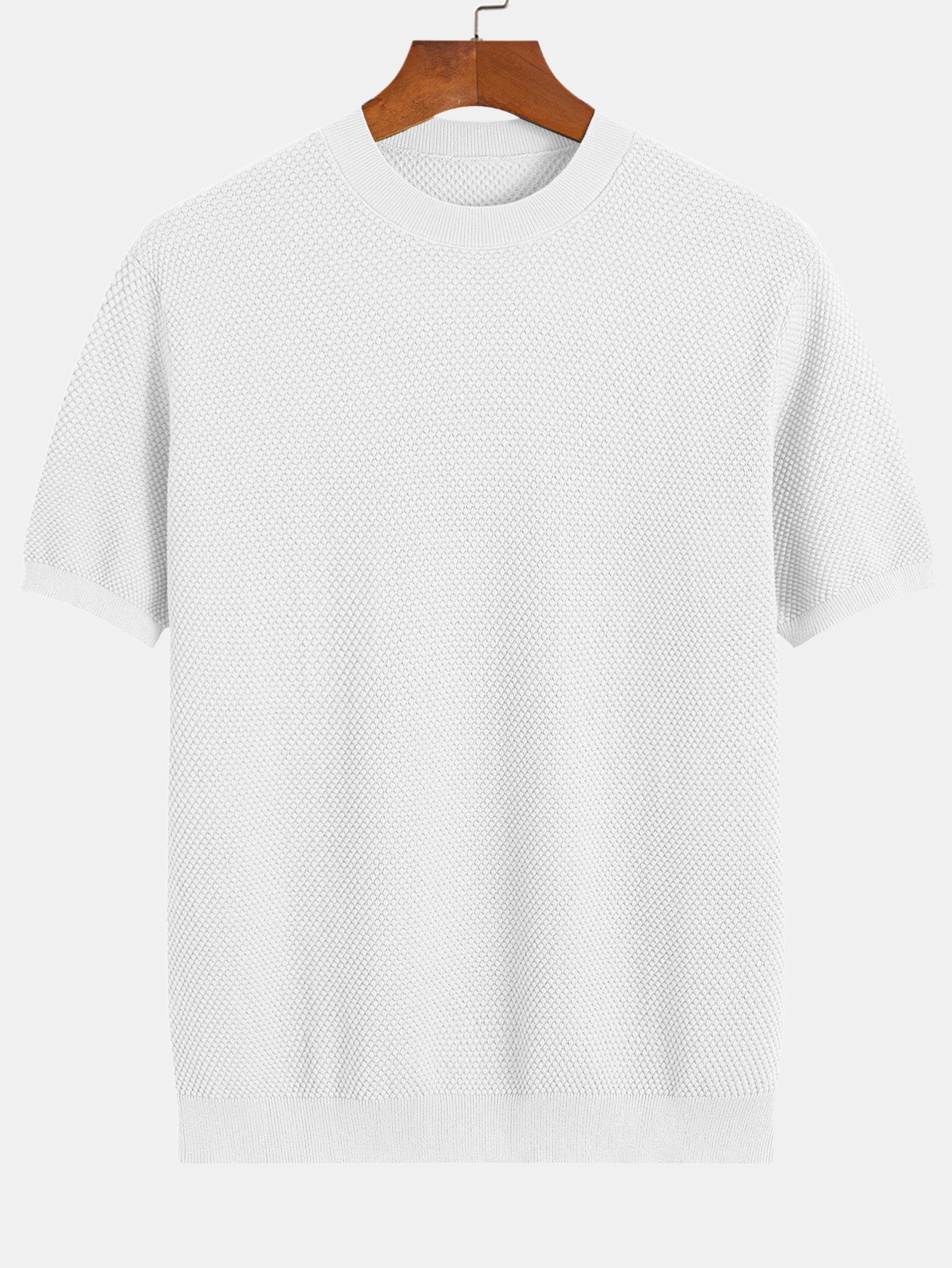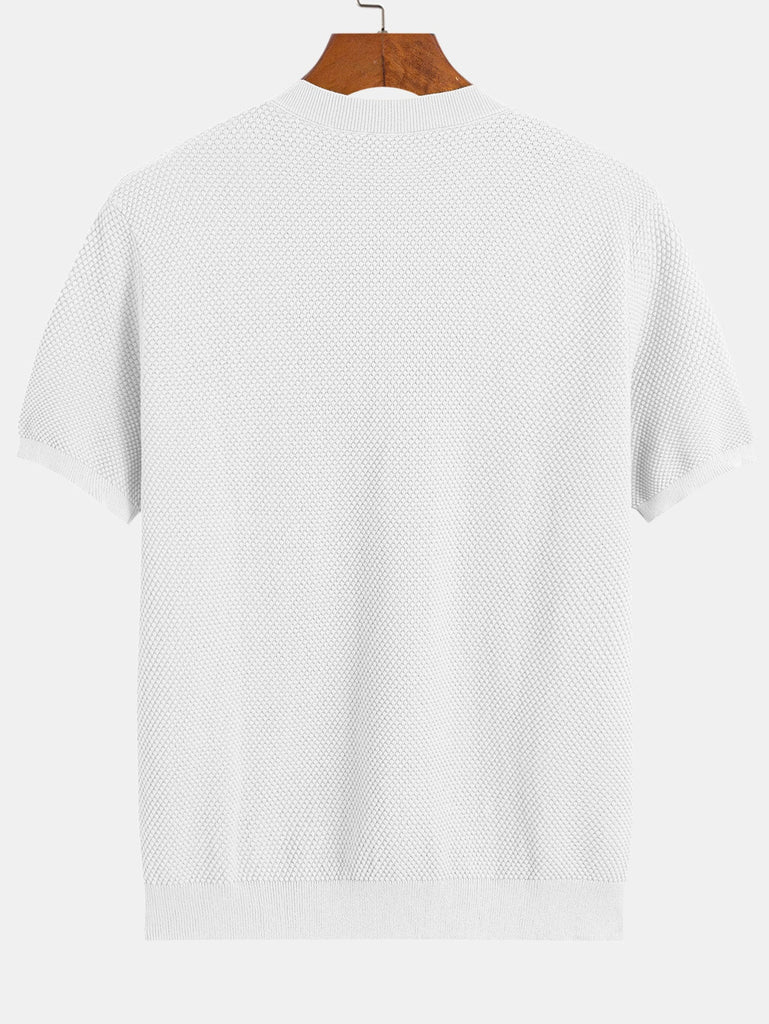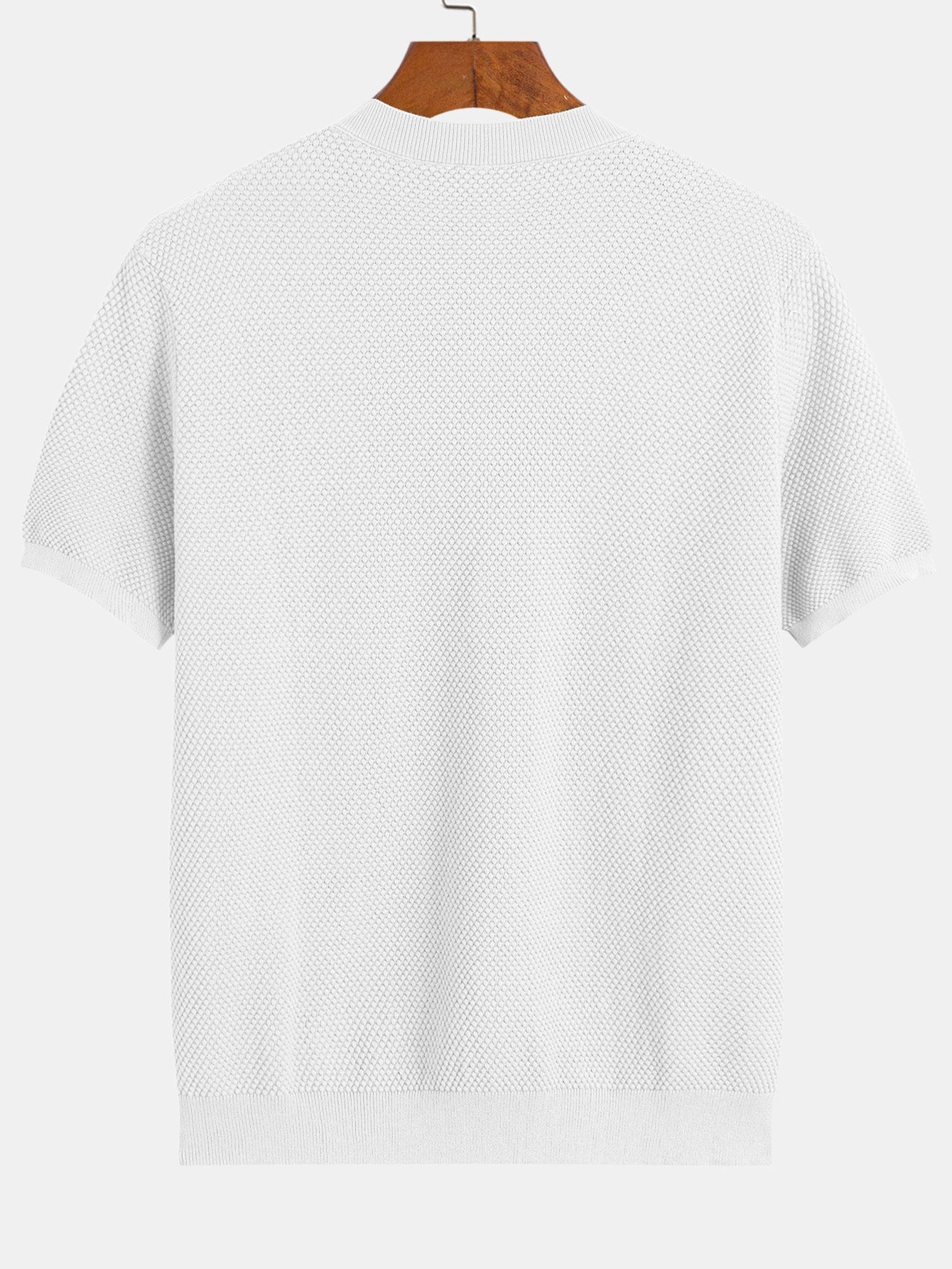 Add a refined texture to your everyday rotation with the pineapple texture knit T-shirt. Crafted from a breathable knit fabric with a signature pineapple weave, this tee combines laid-back comfort with modern style. Ideal for casual outings or layering under jackets for a polished finish.