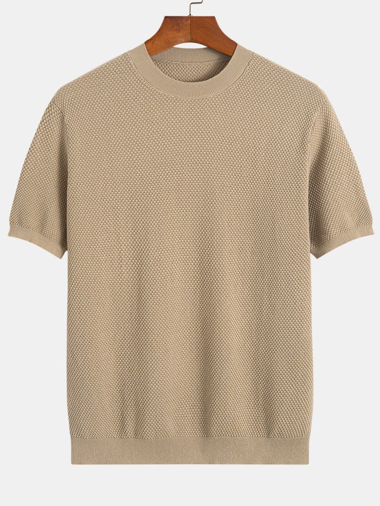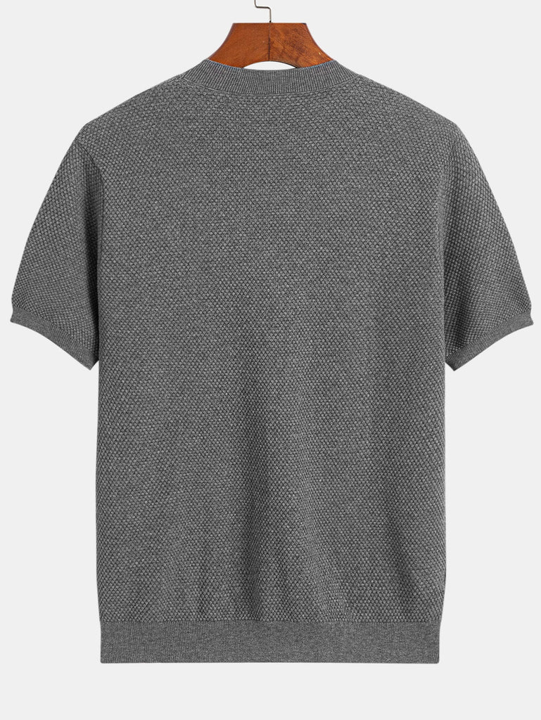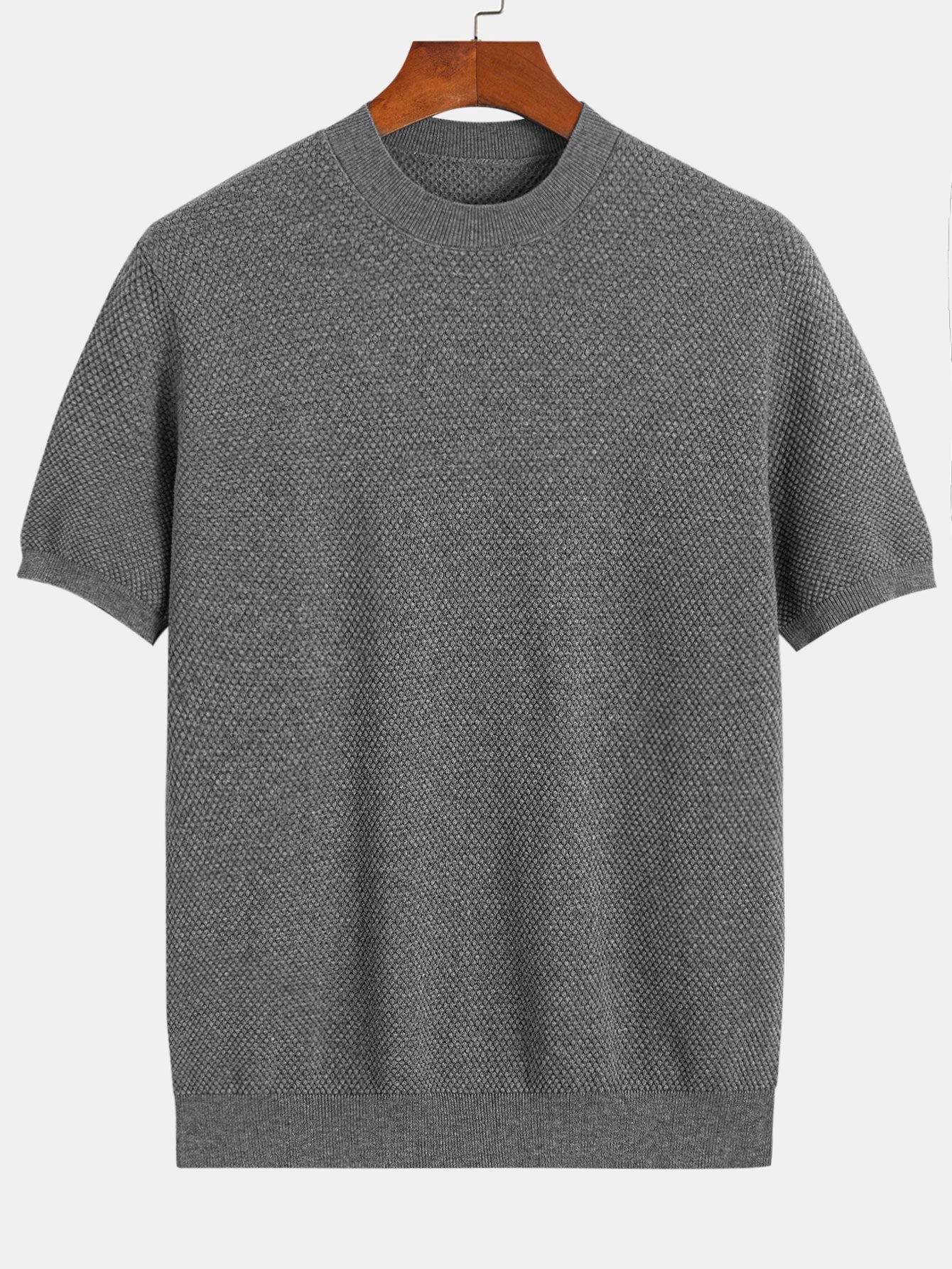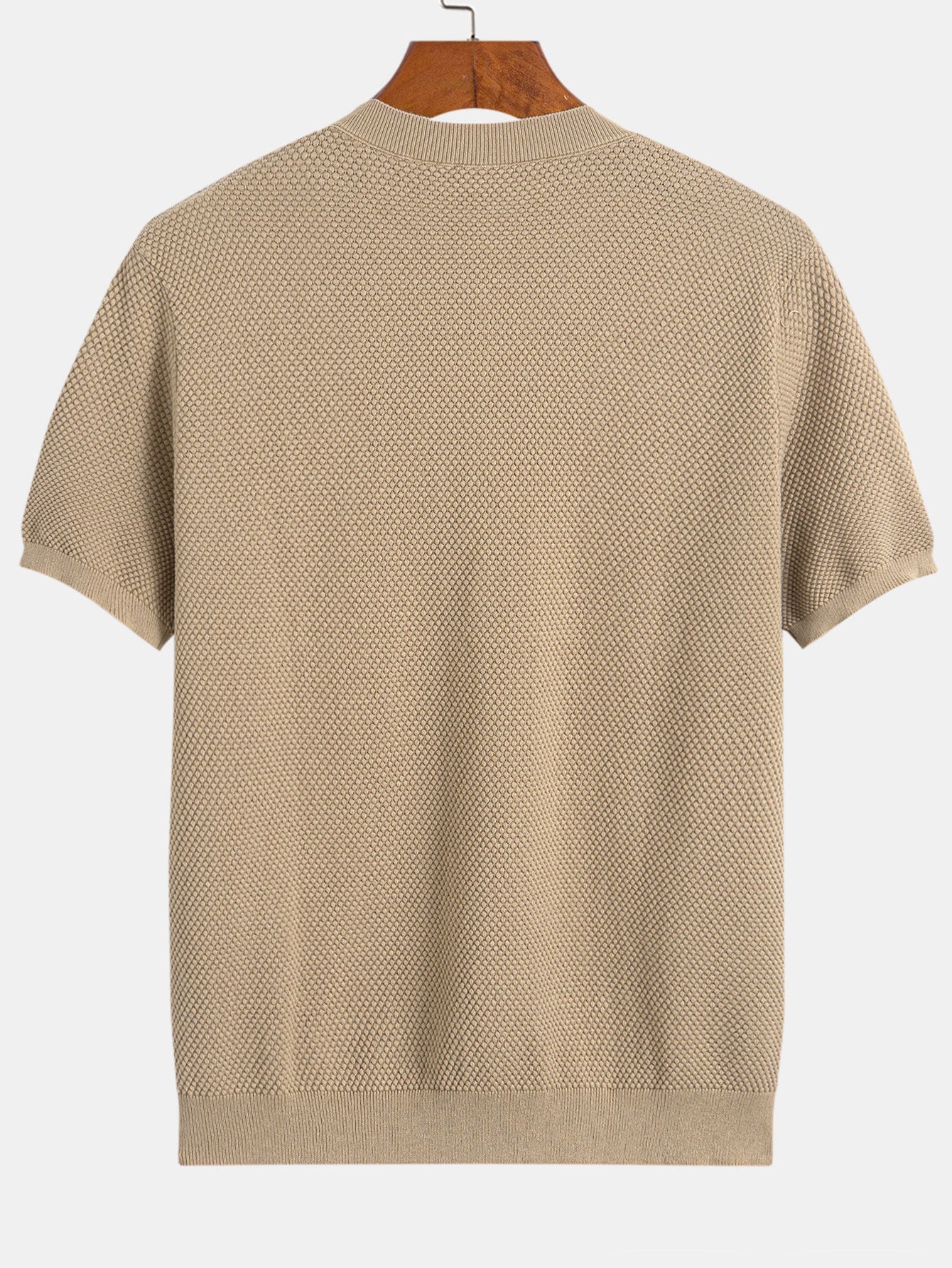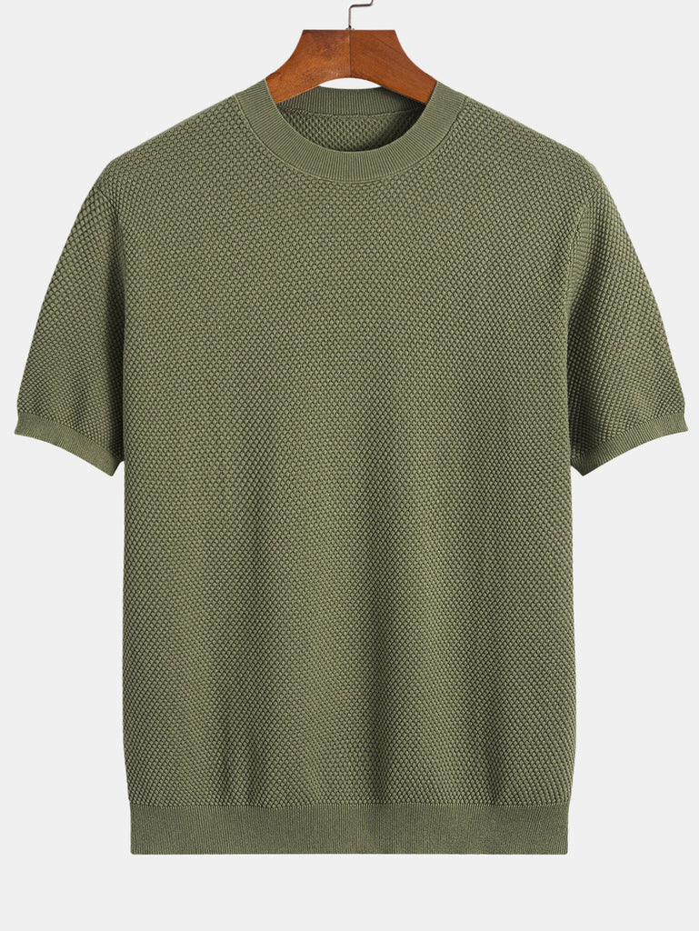 Add a refined texture to your everyday rotation with the pineapple texture knit T-shirt. Crafted from a breathable knit fabric with a signature pineapple weave, this tee combines laid-back comfort with modern style. Ideal for casual outings or layering under jackets for a polished finish.