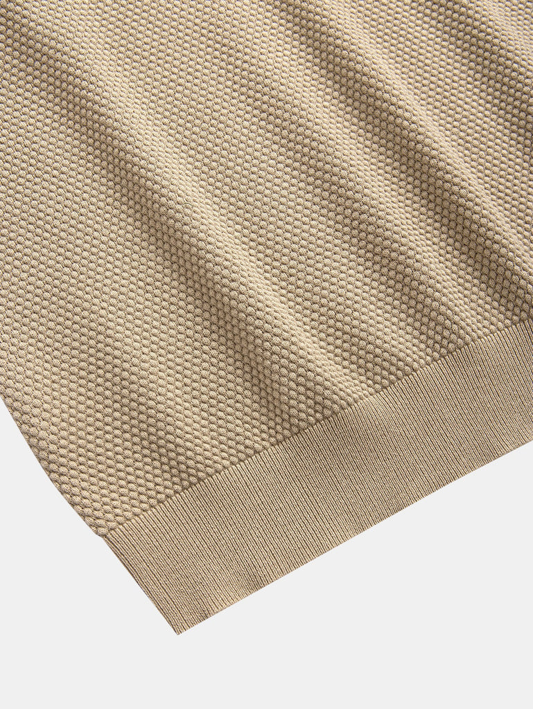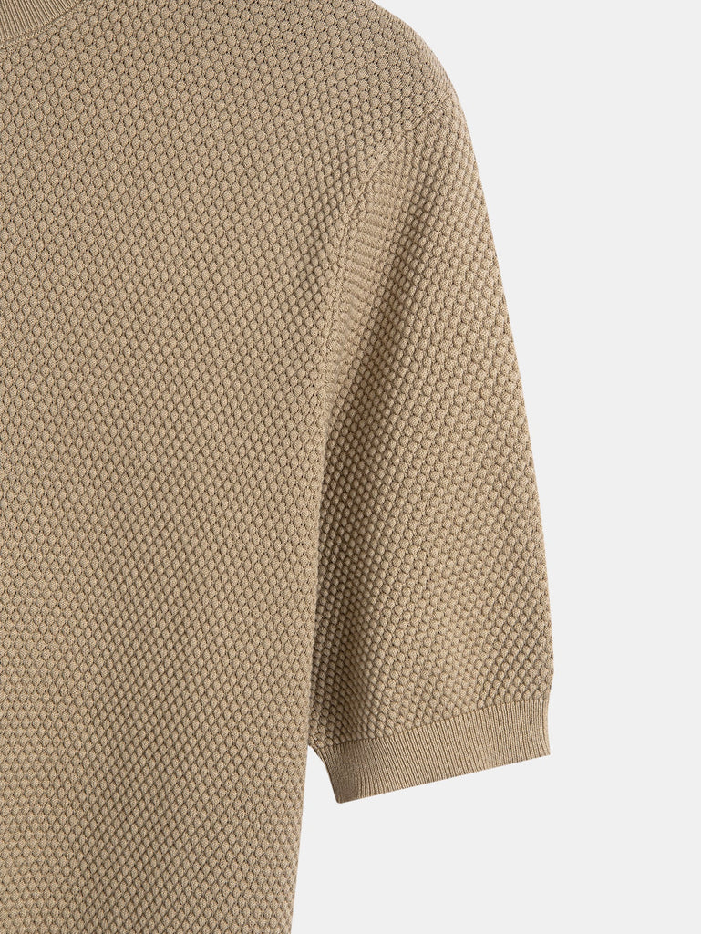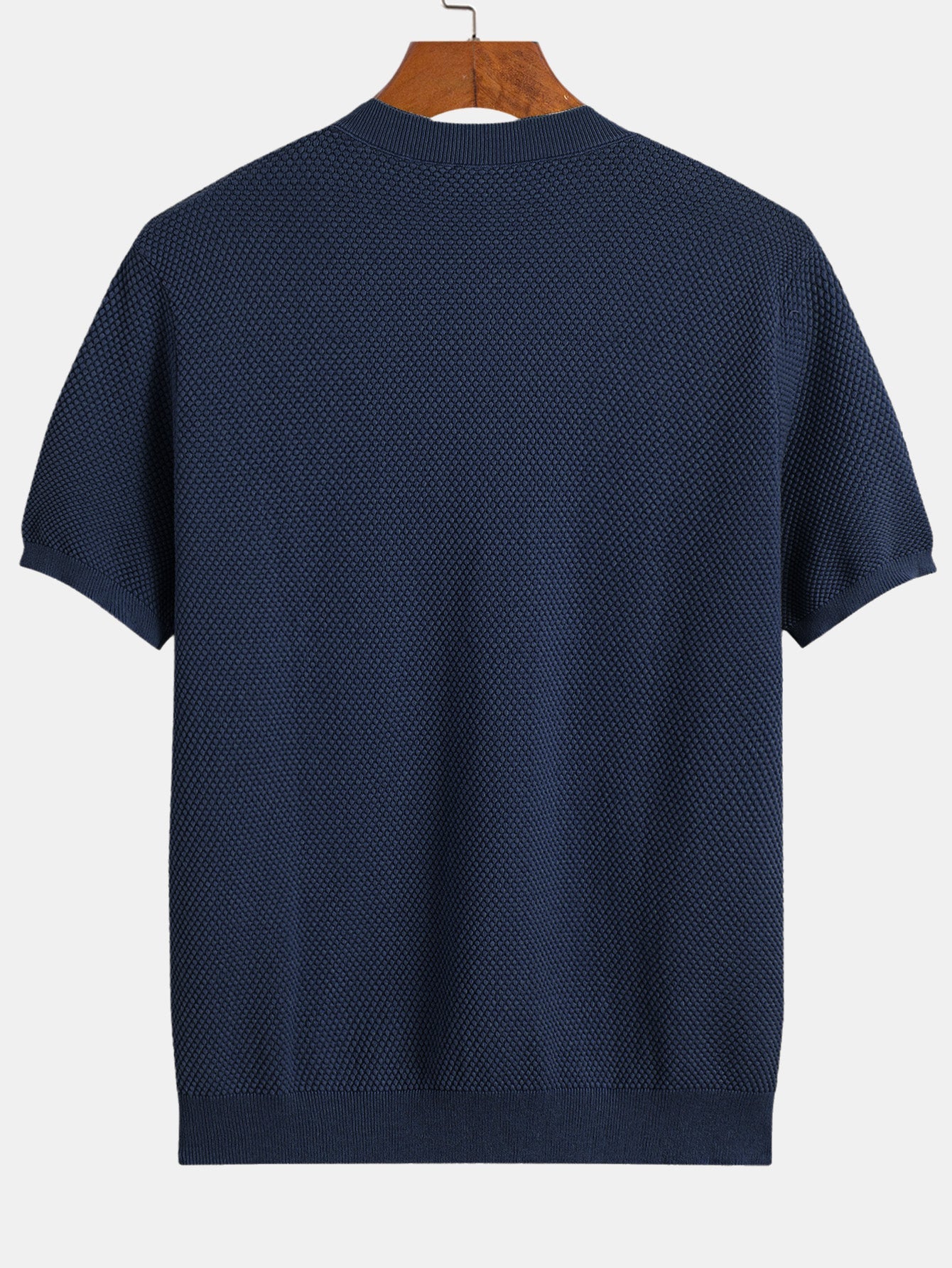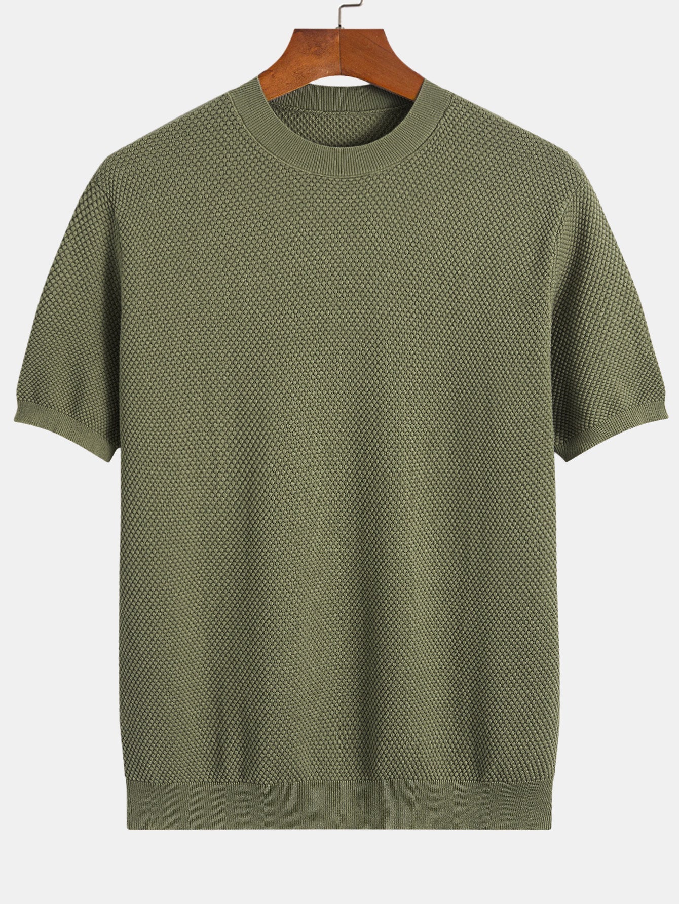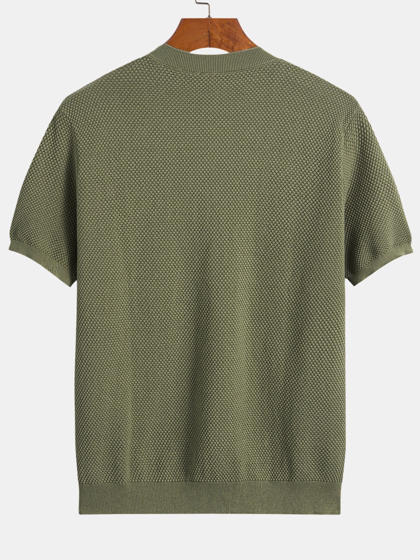 Add a refined texture to your everyday rotation with the pineapple texture knit T-shirt. Crafted from a breathable knit fabric with a signature pineapple weave, this tee combines laid-back comfort with modern style. Ideal for casual outings or layering under jackets for a polished finish.