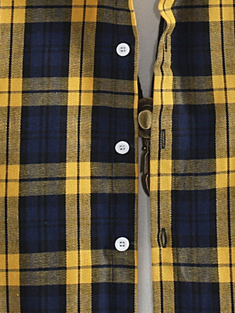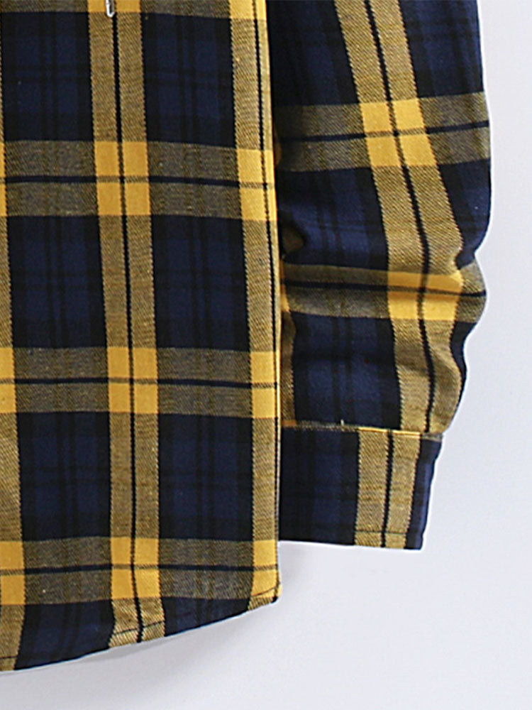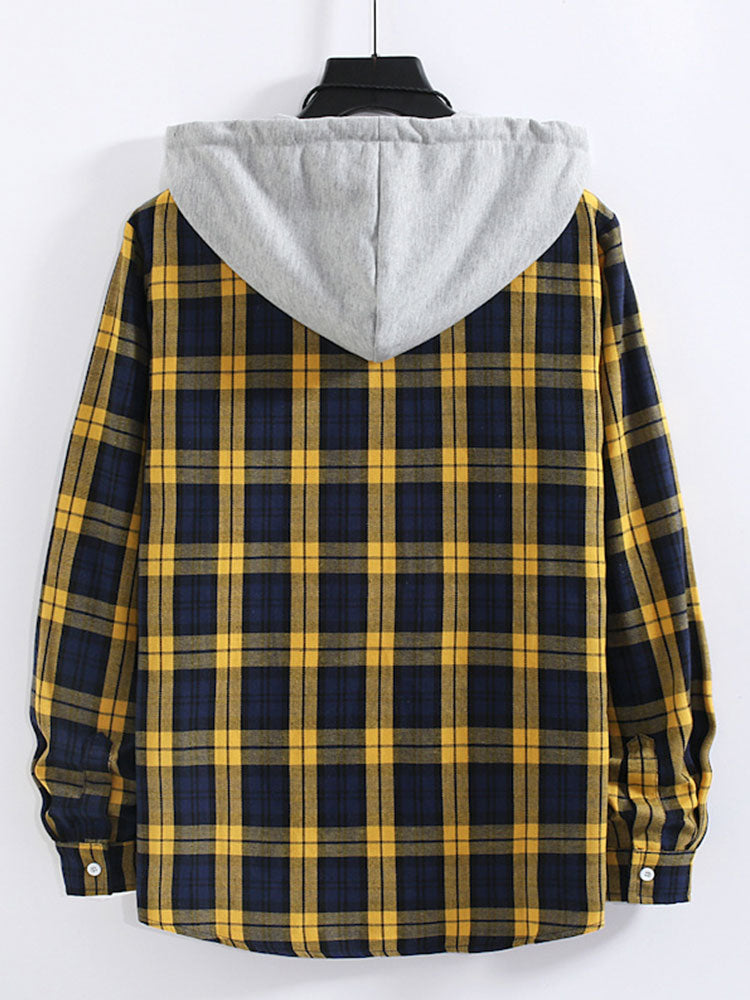 Plaid Contrast Button Up Hooded Shirt