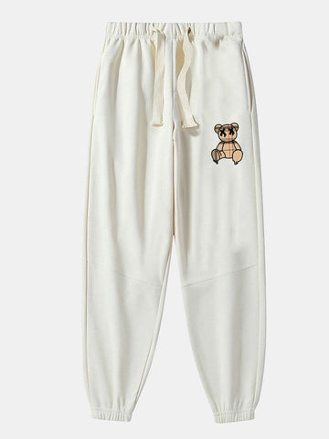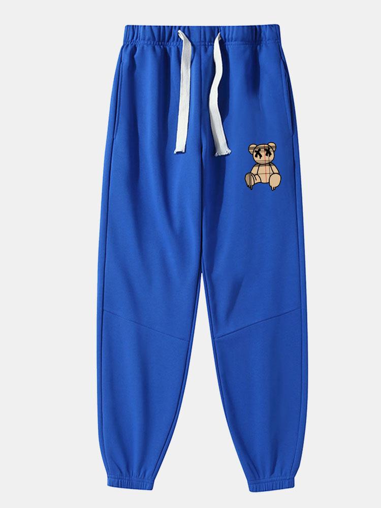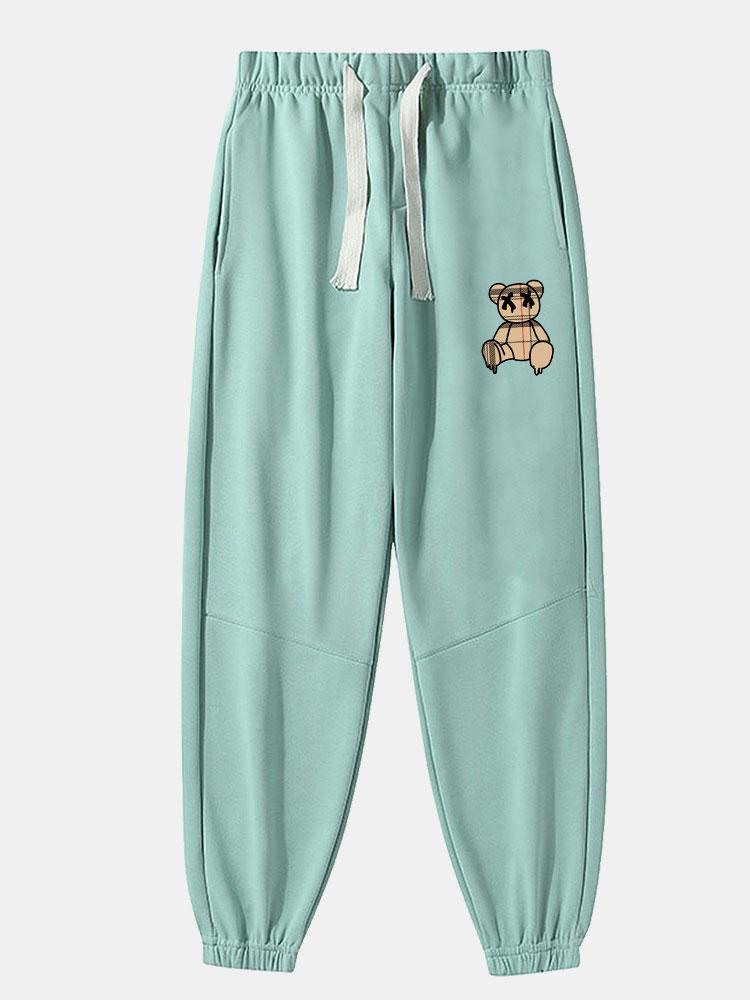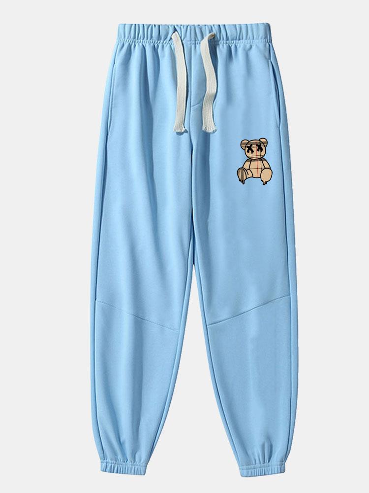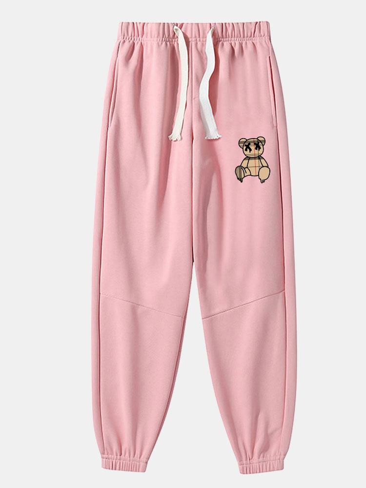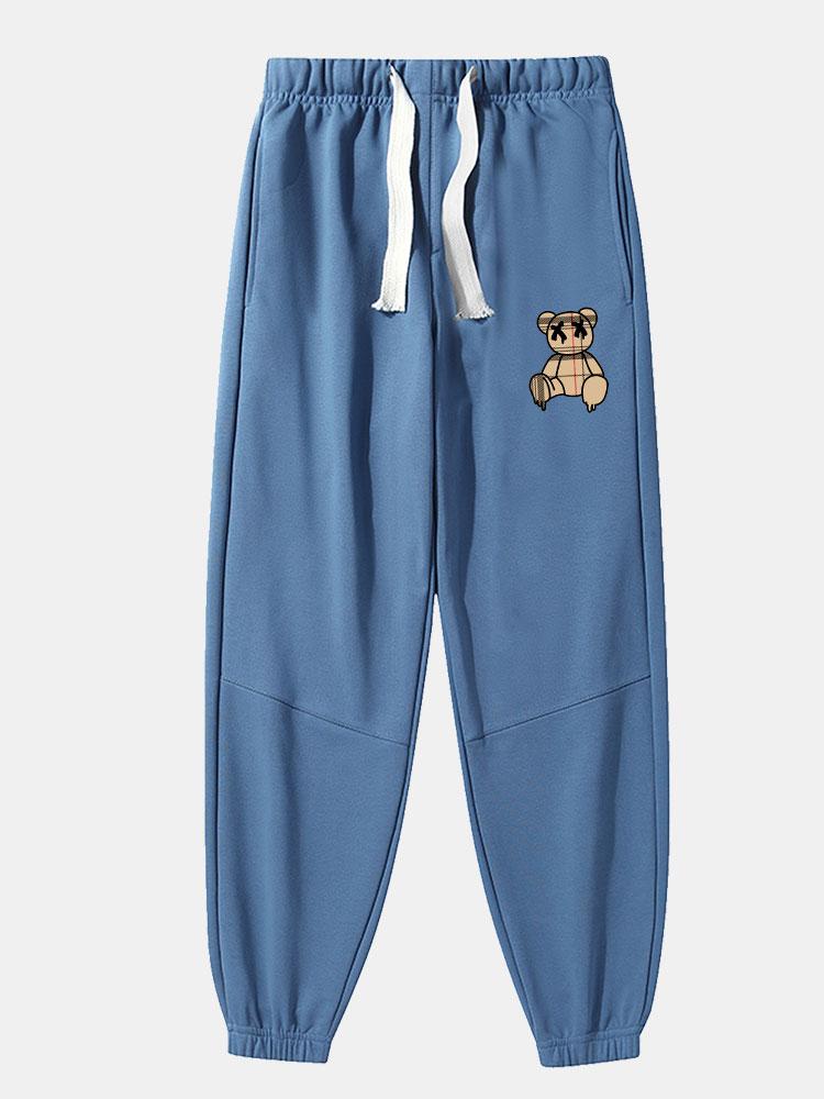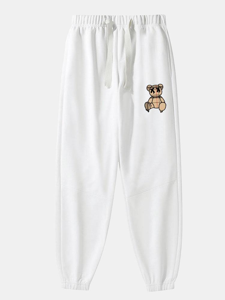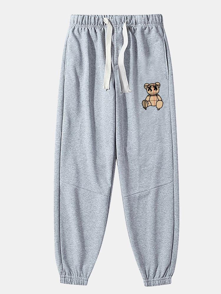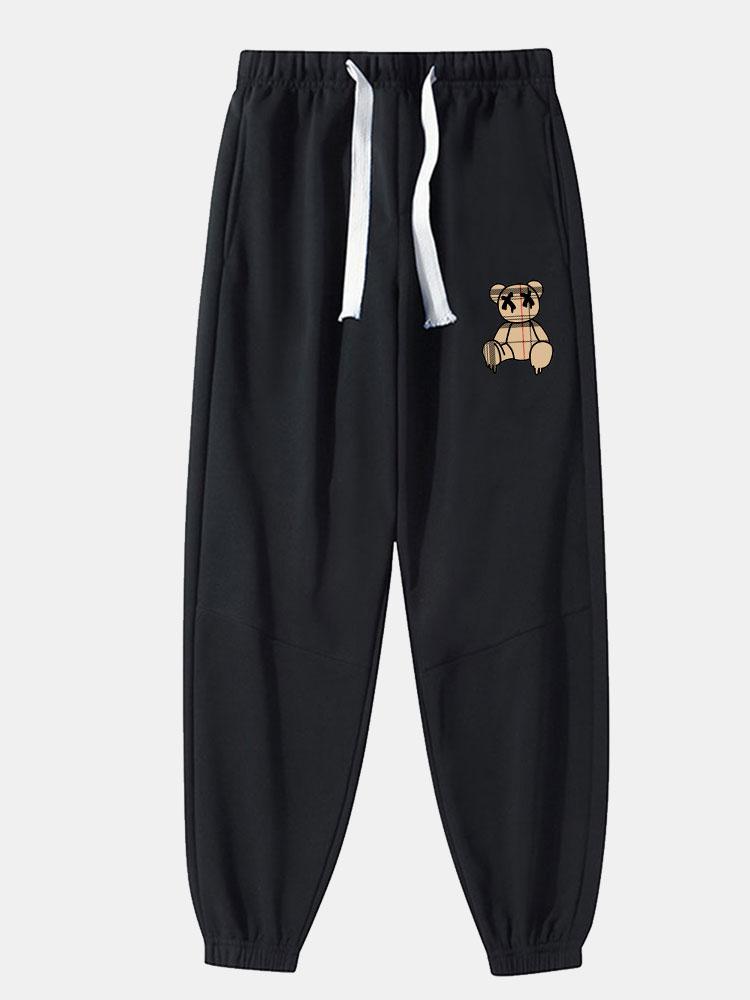 Plaid Pattern Dissolving Bear Print Cotton Blend Jogger Pants