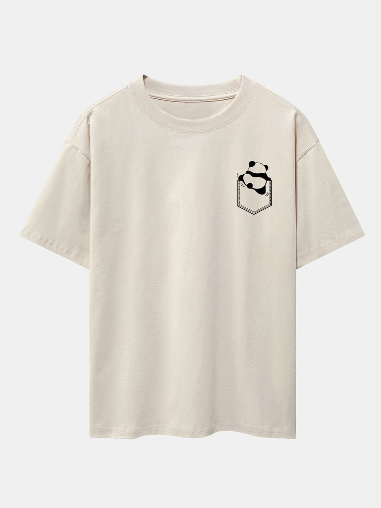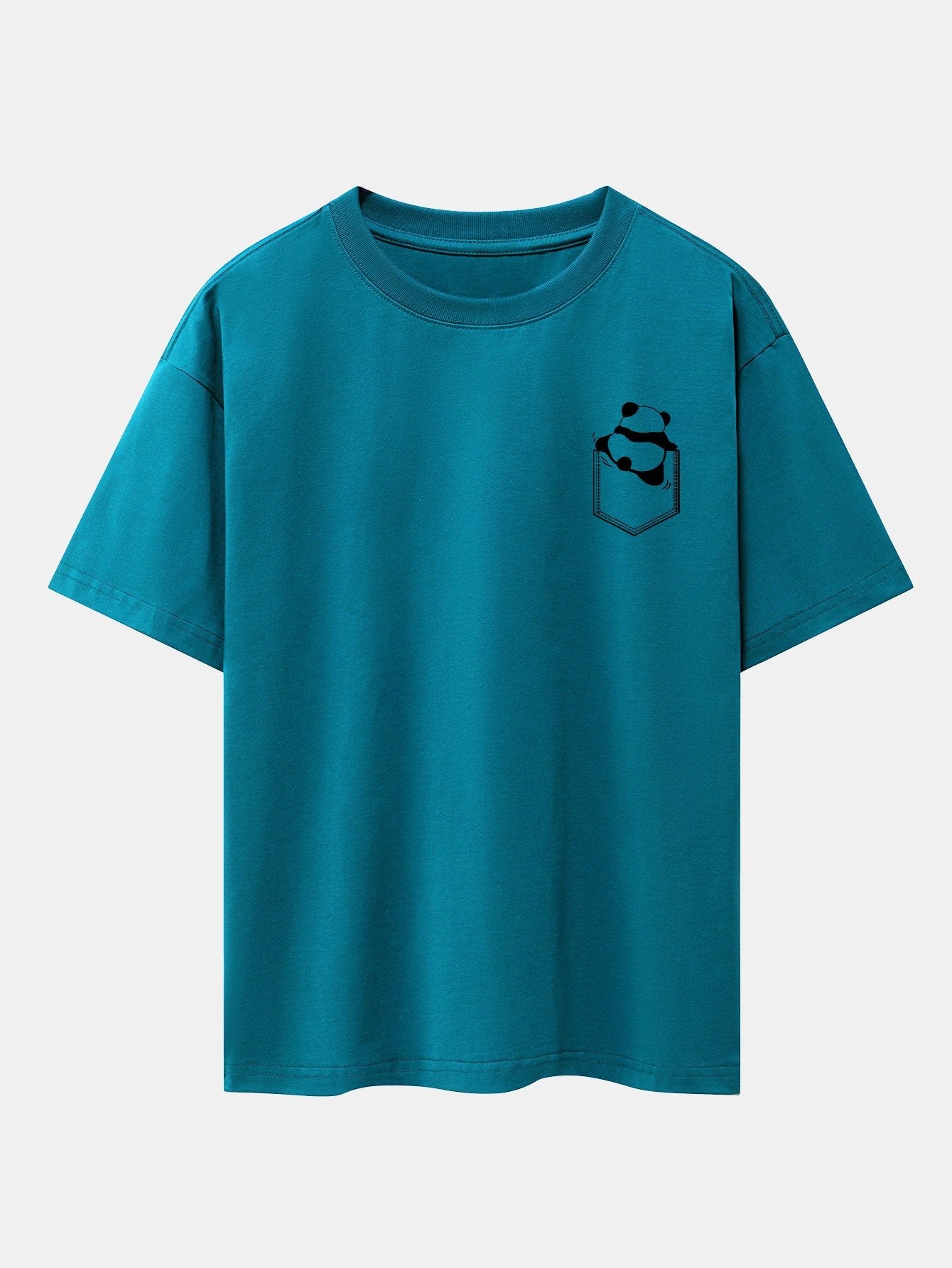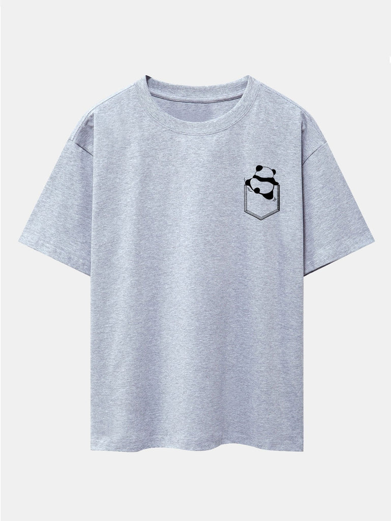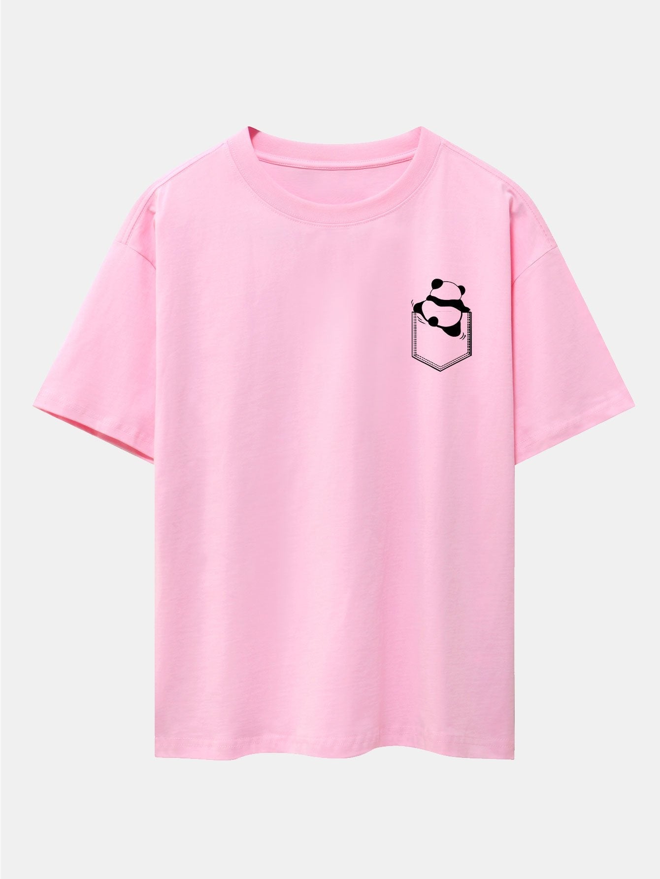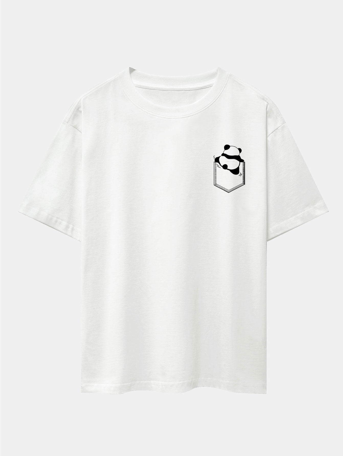 Pocket Panda Print Drop Shoulder Oversize T-Shirt