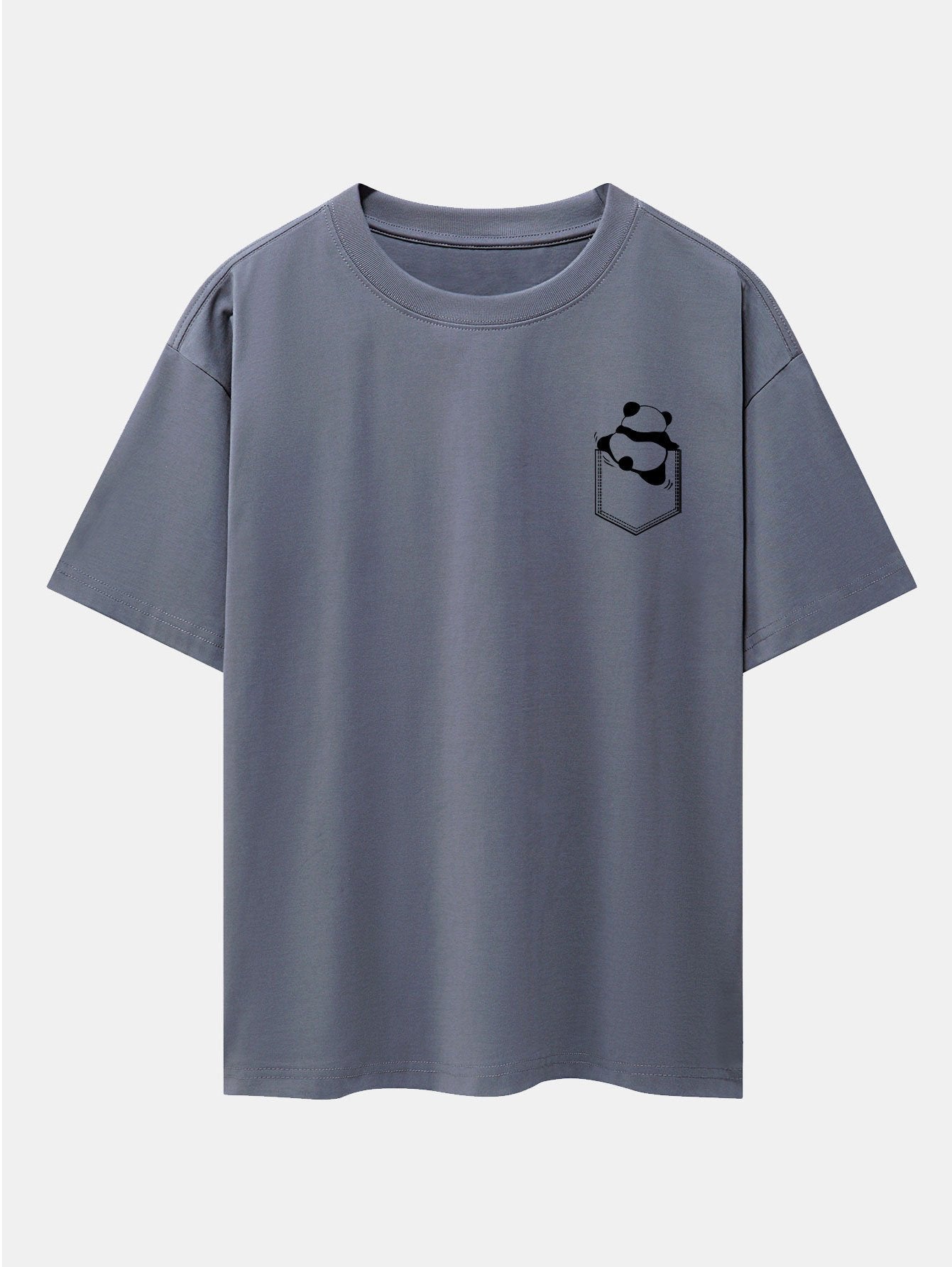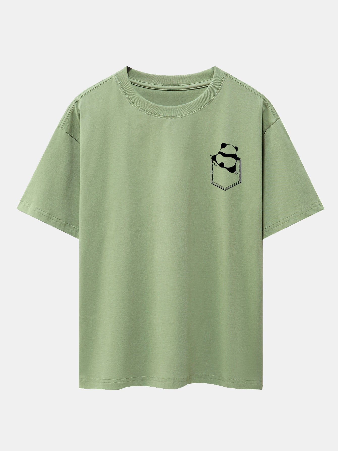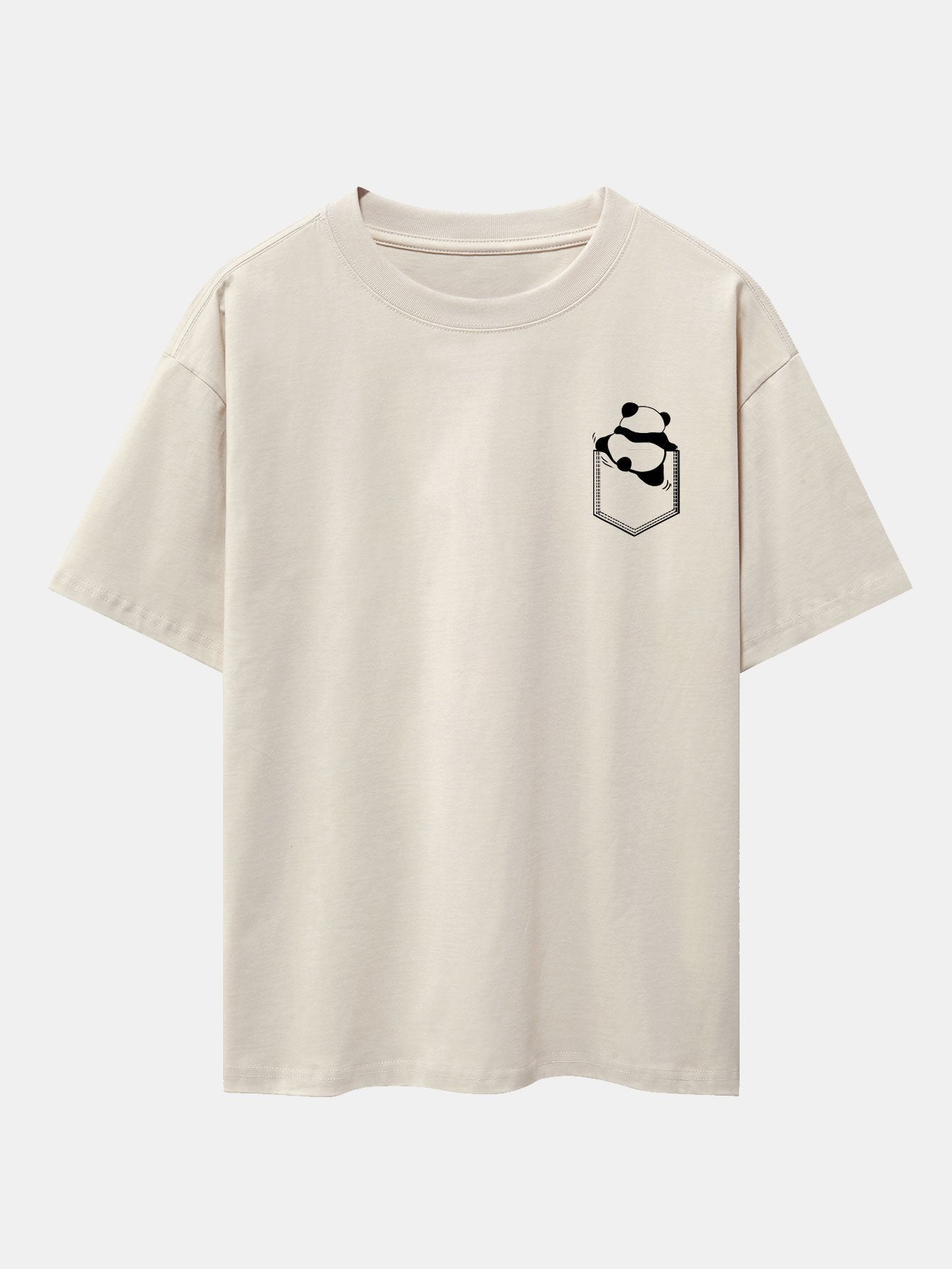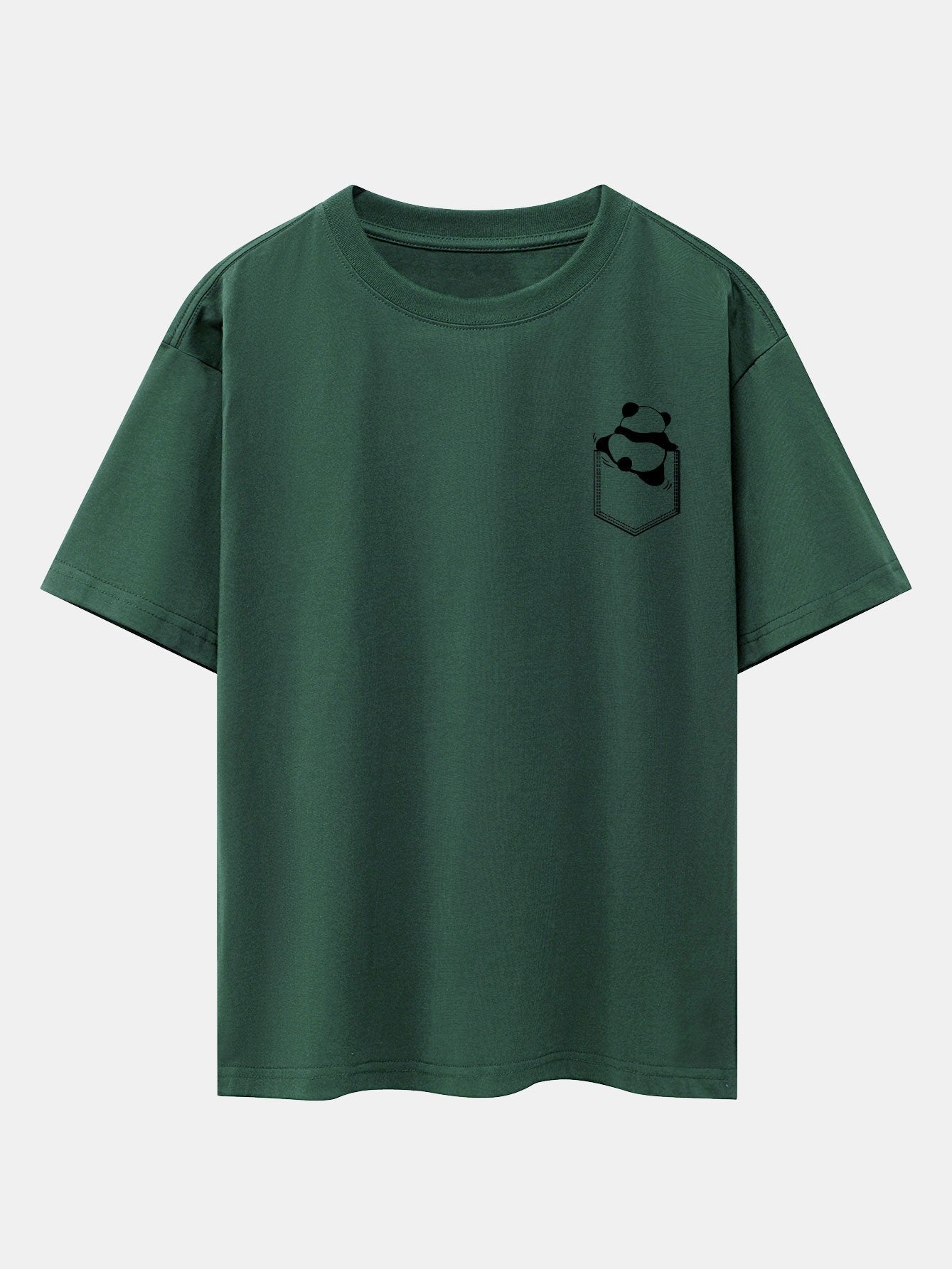Pocket Panda Print Drop Shoulder Oversize T-Shirt