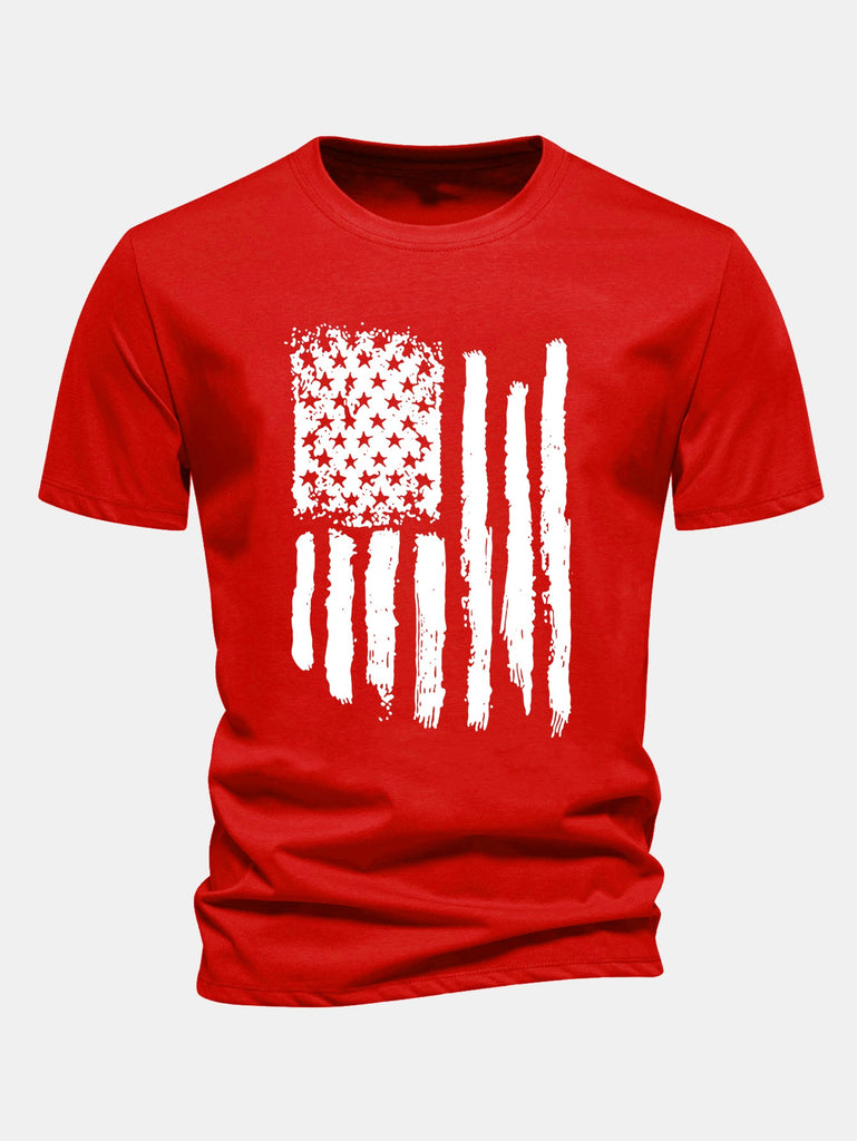 Regular Fit American Flag Print Cotton T-Shirt