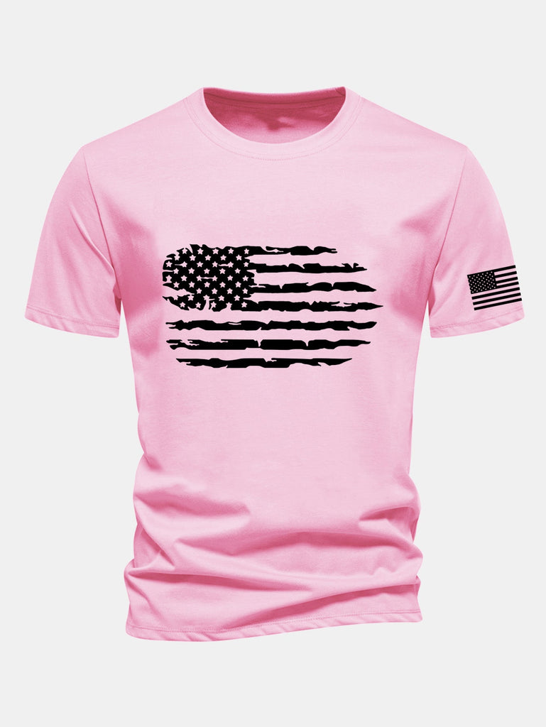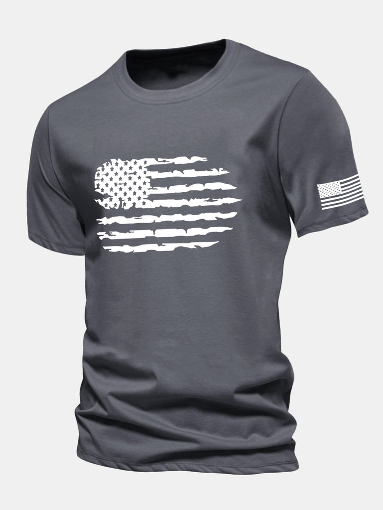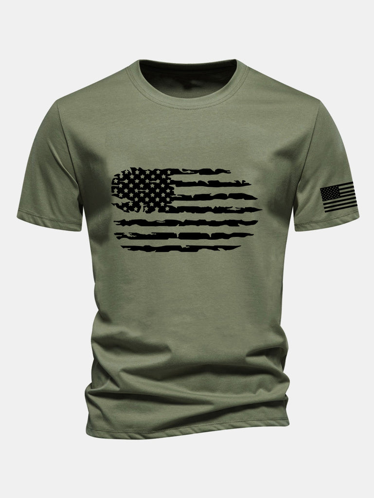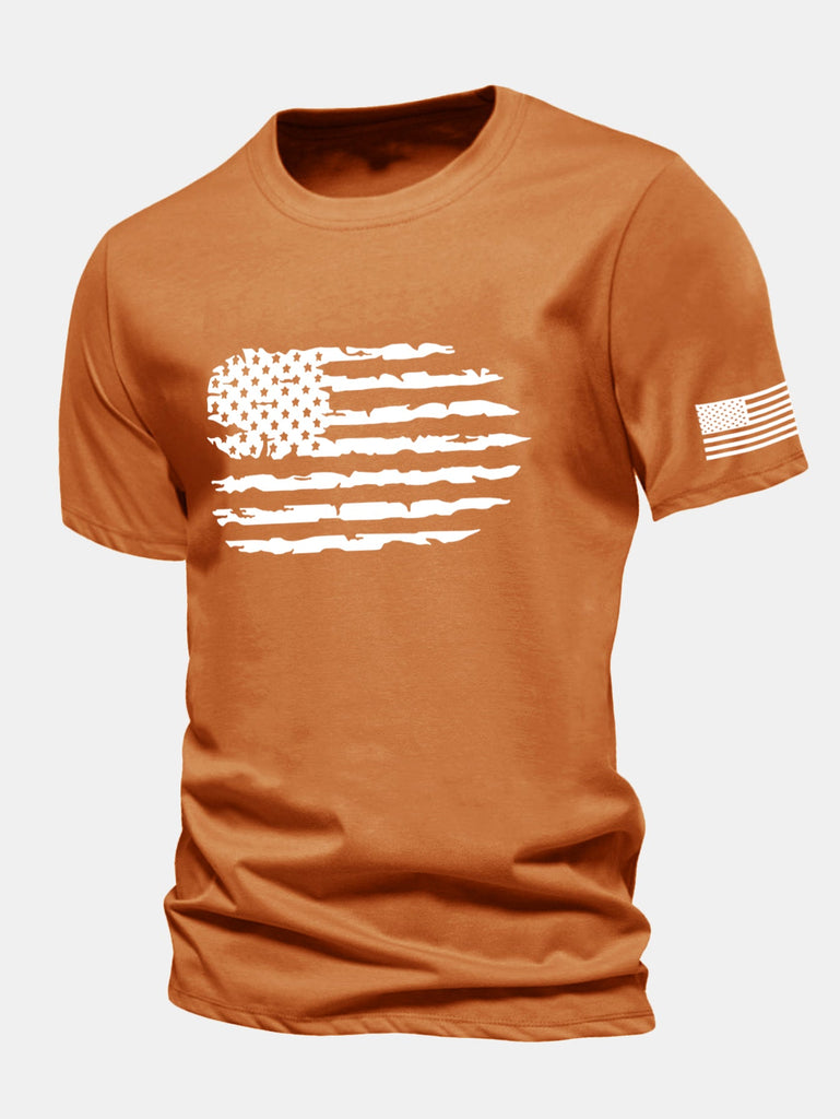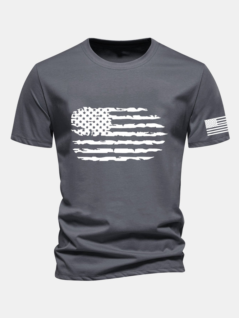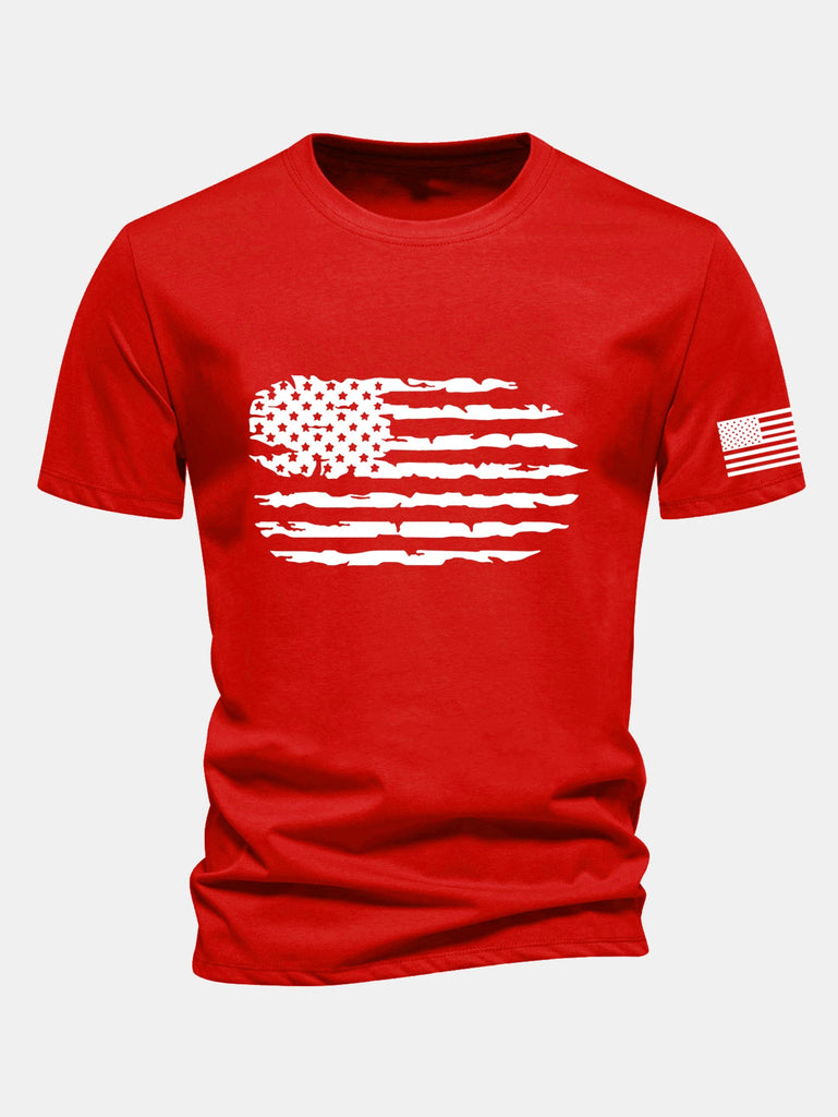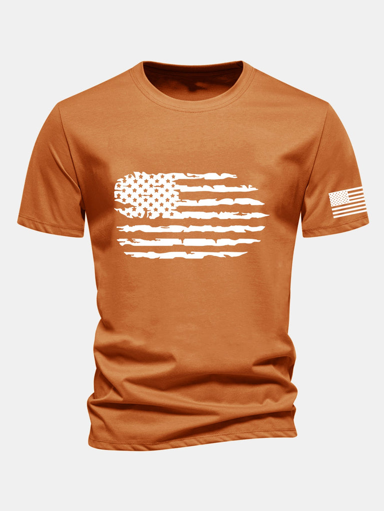 Regular Fit American Flag Print Cotton T-Shirt
